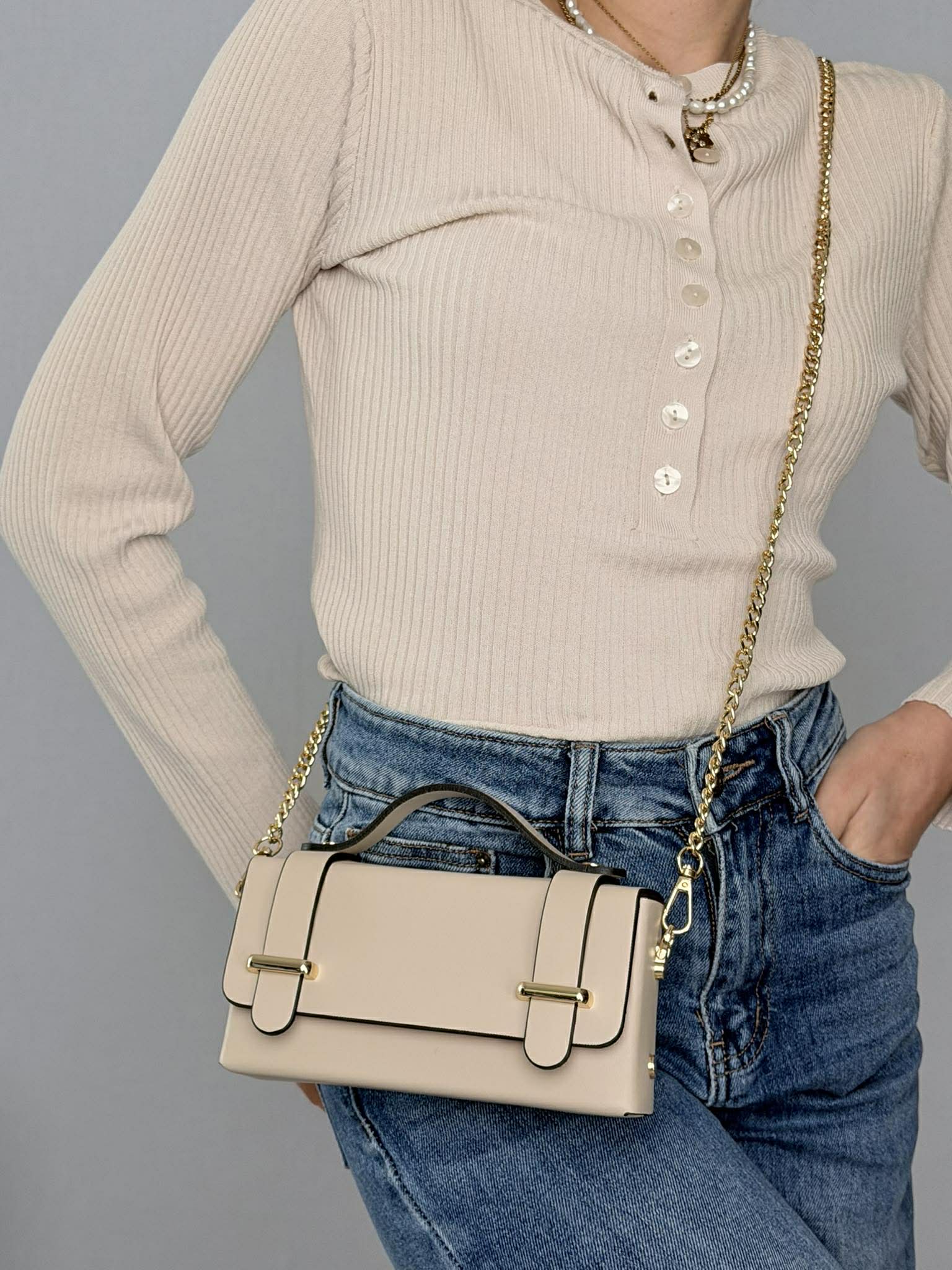 Borsa in pelle Ruga liscia mod. Baggy color beige.