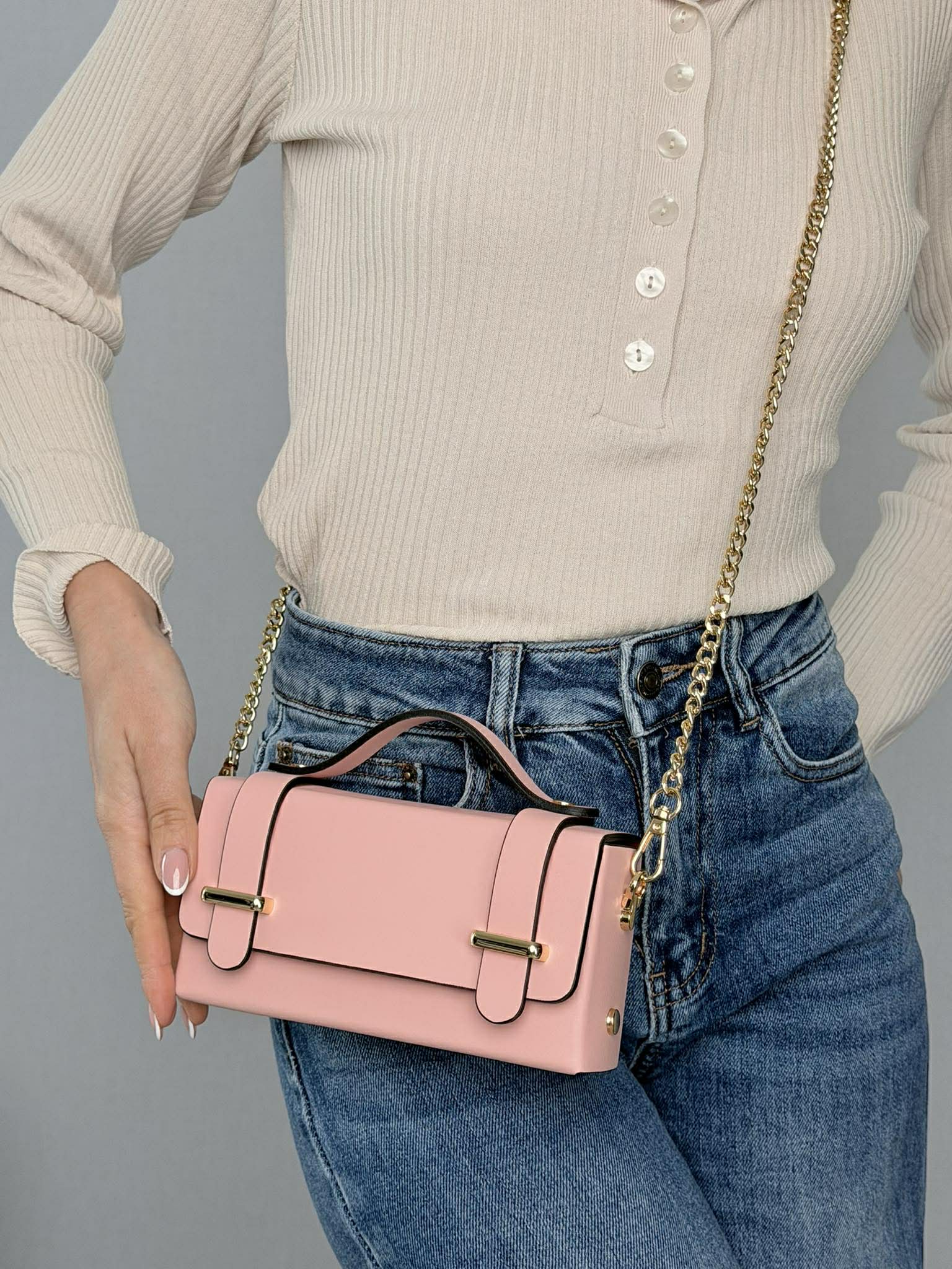 Accessori metallici color oro.