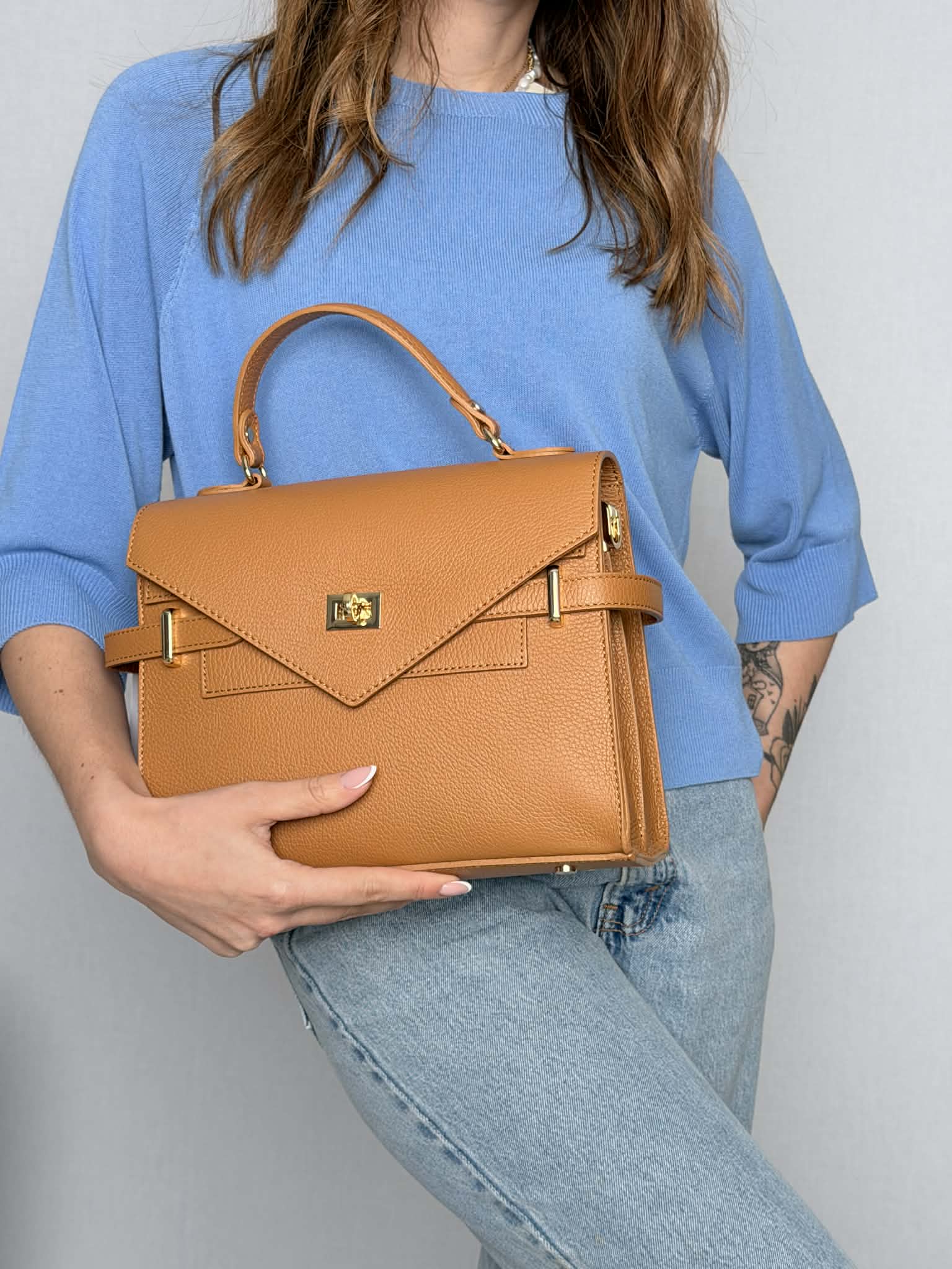 Borsa in pelle martellata mod. Sabrina color cuoio.