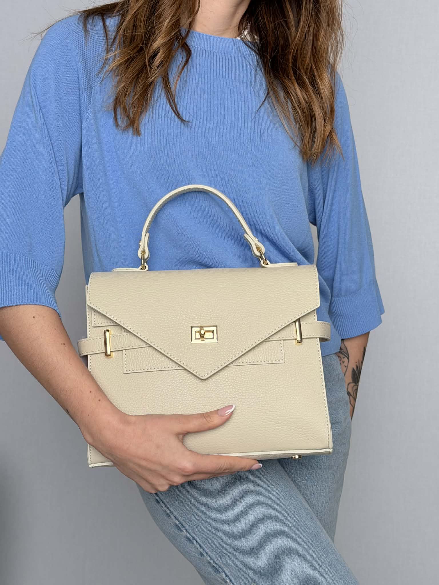 Borsa in pelle martellata mod. Sabrina color beige.