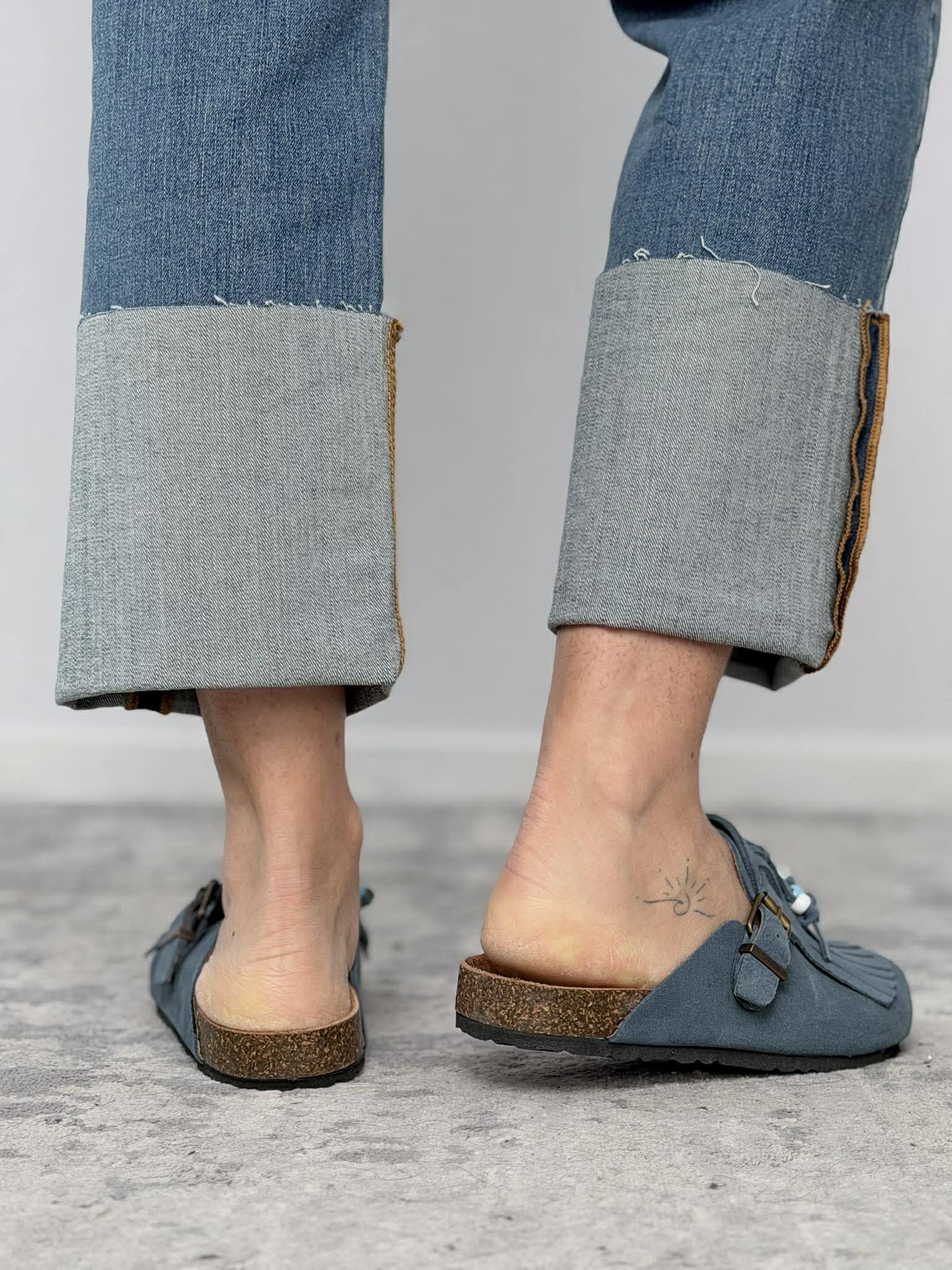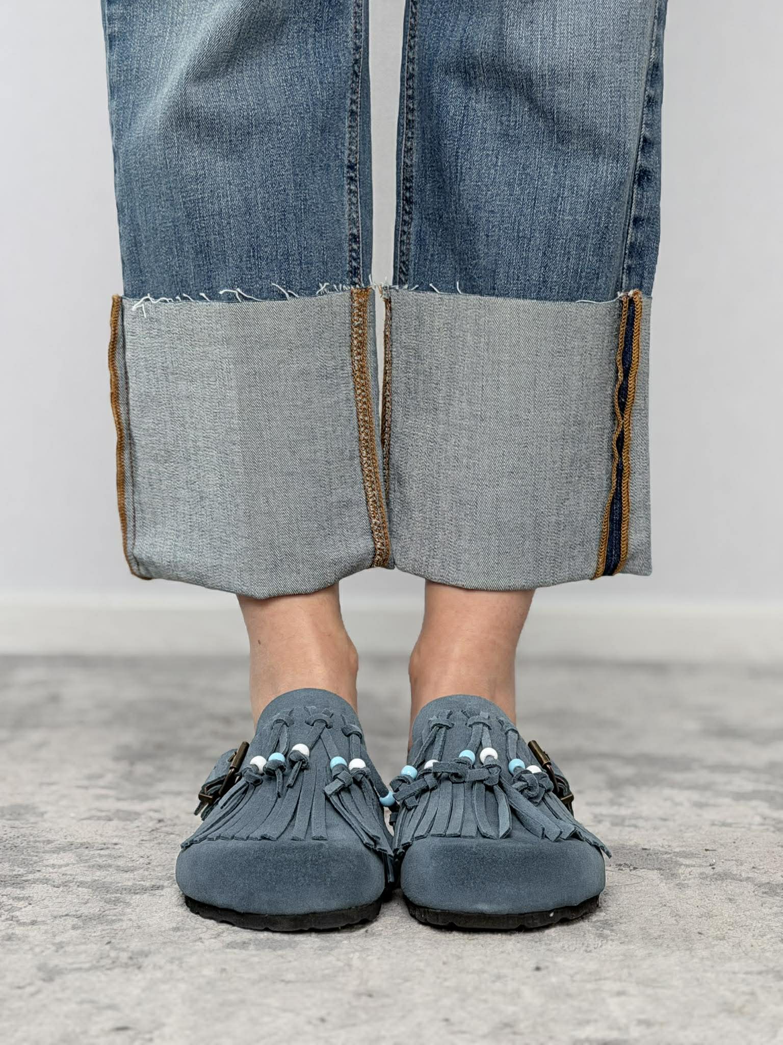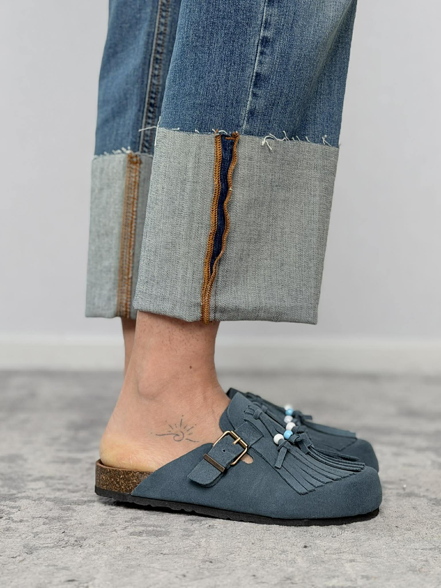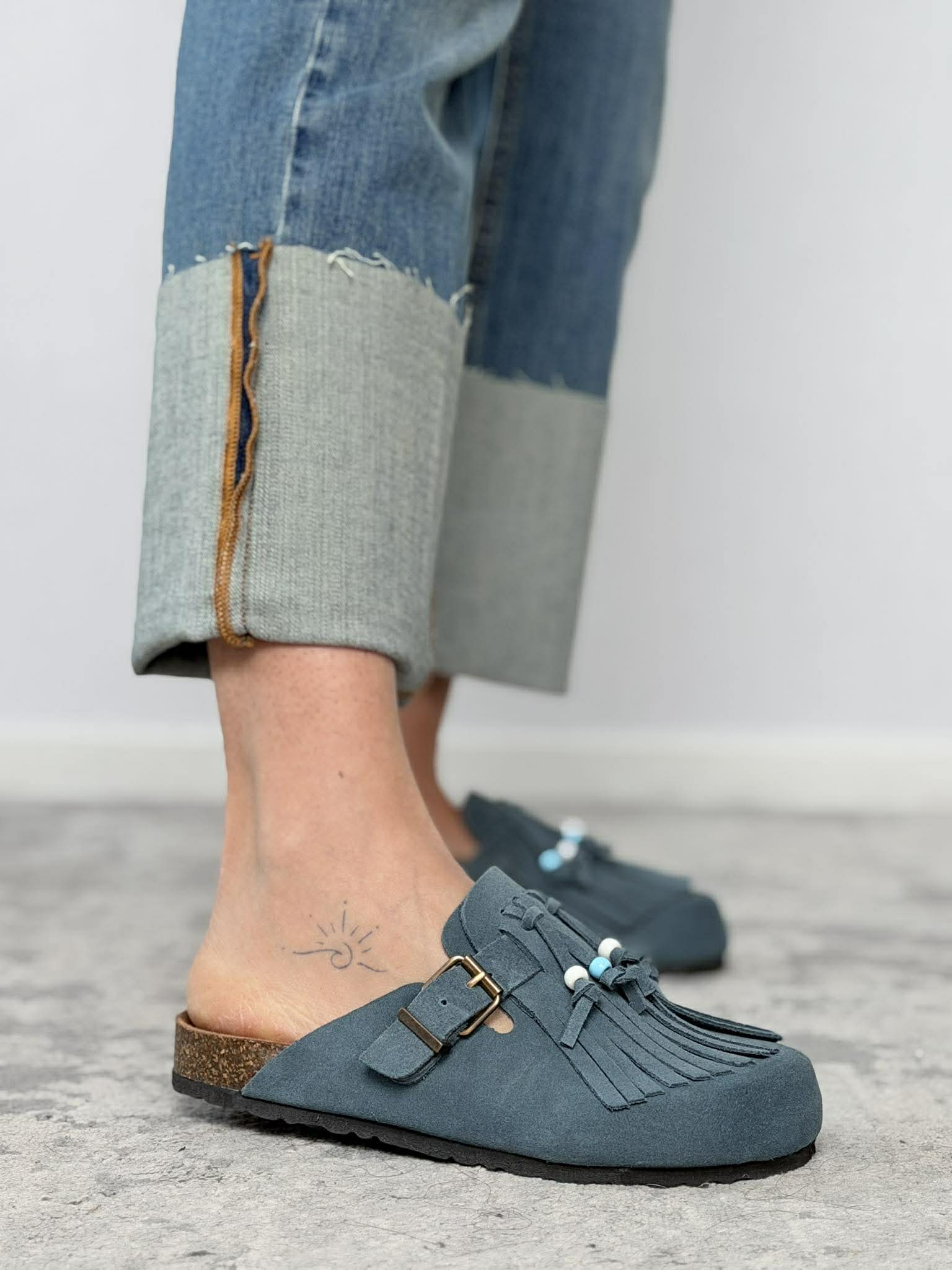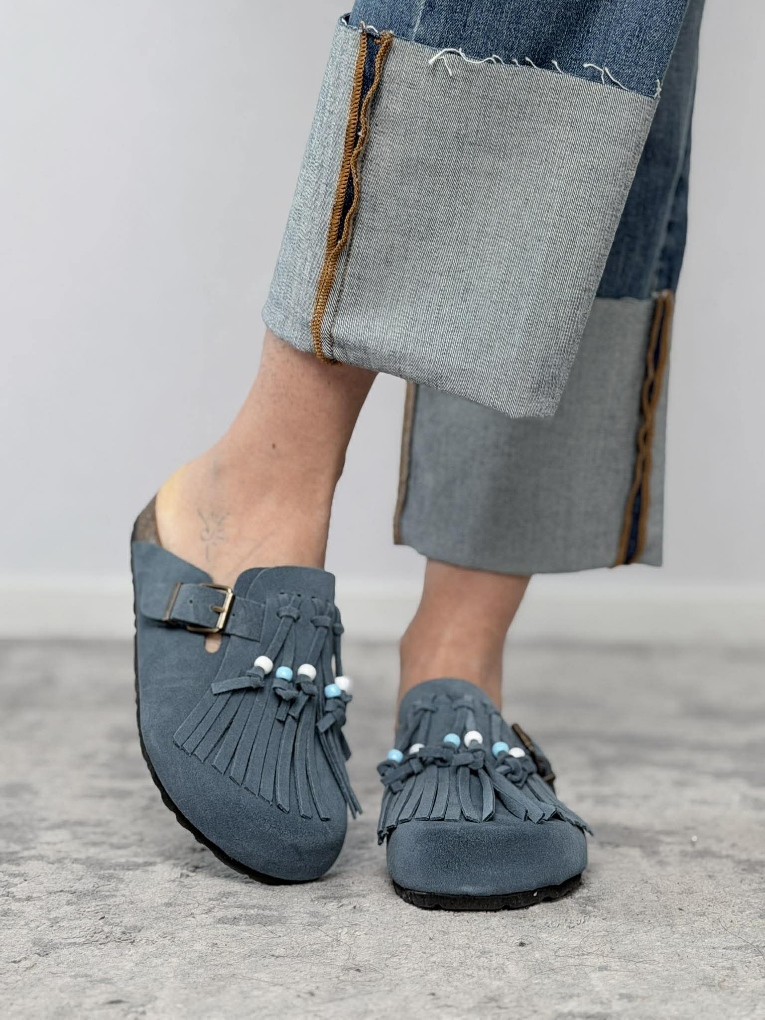 Mules con frange in crosta Ovyè mod. Shakira color navy.