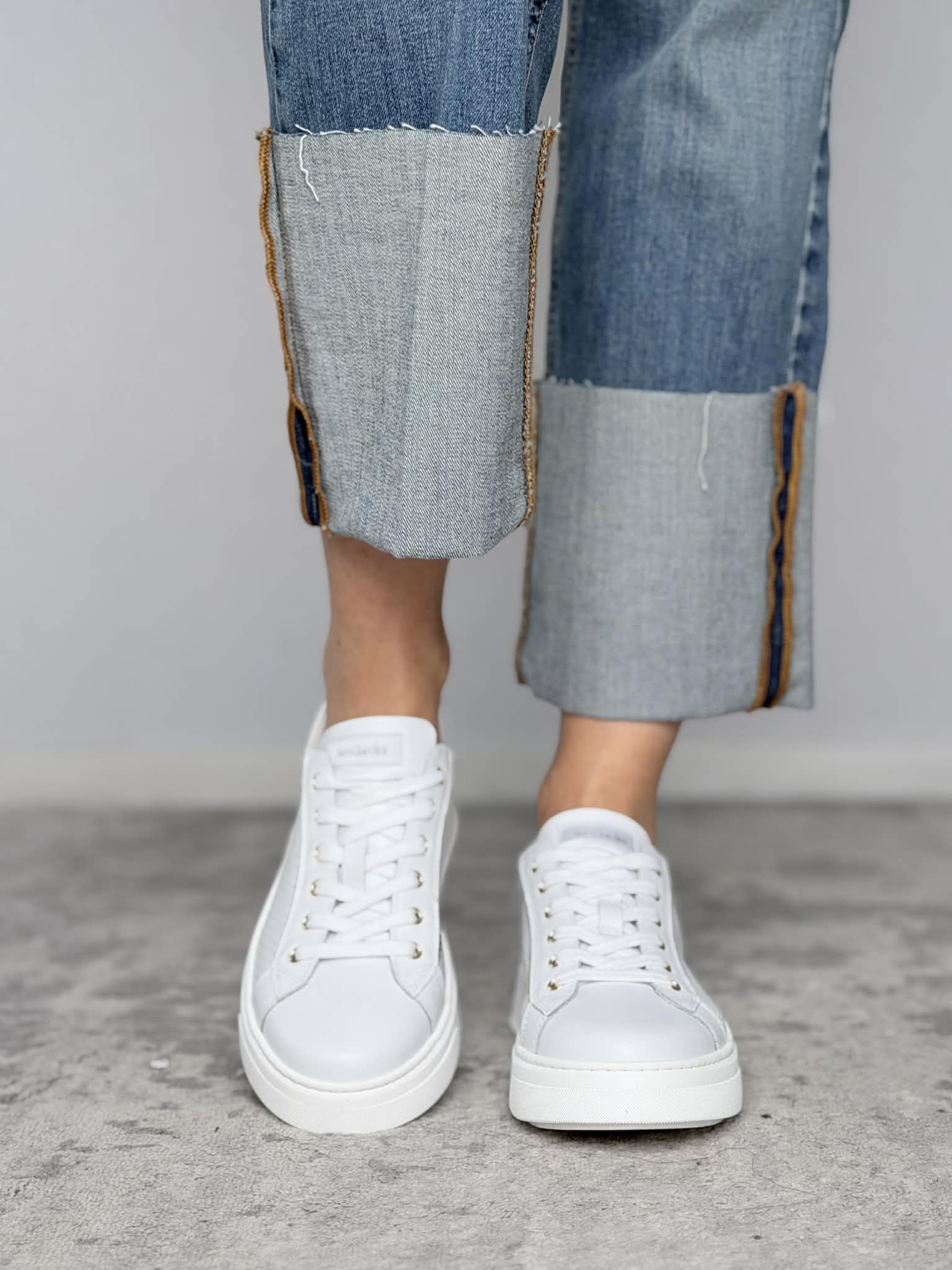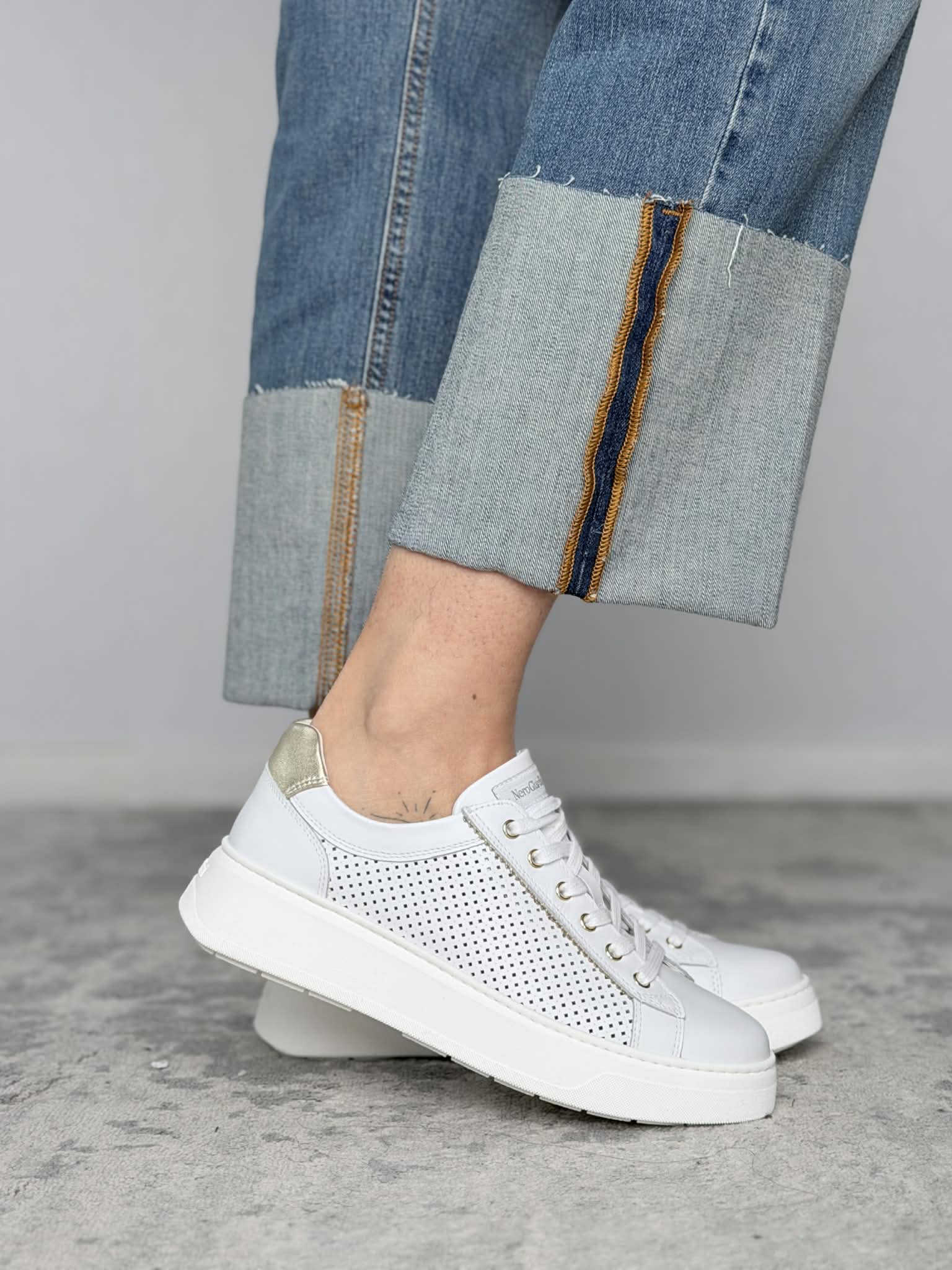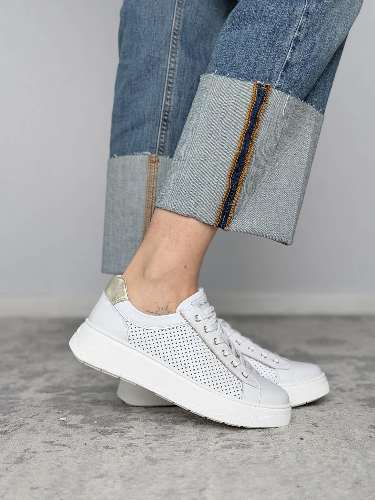 Sneakers Nero Giardini in pelle skipper bianco con finiture pelle platino.