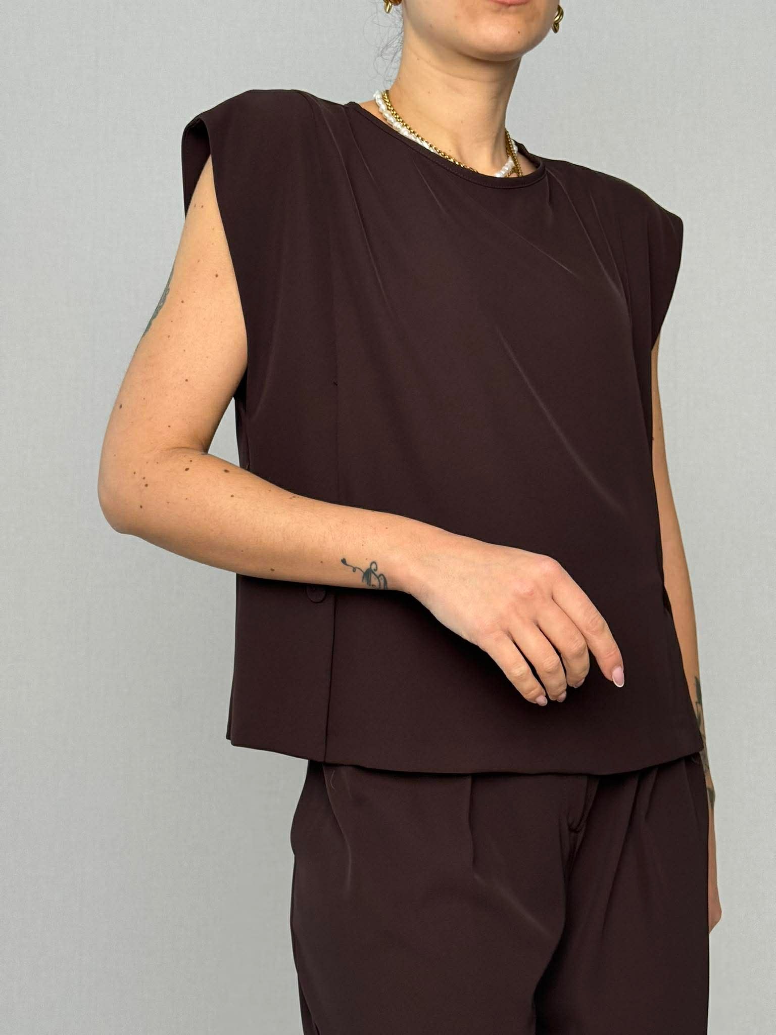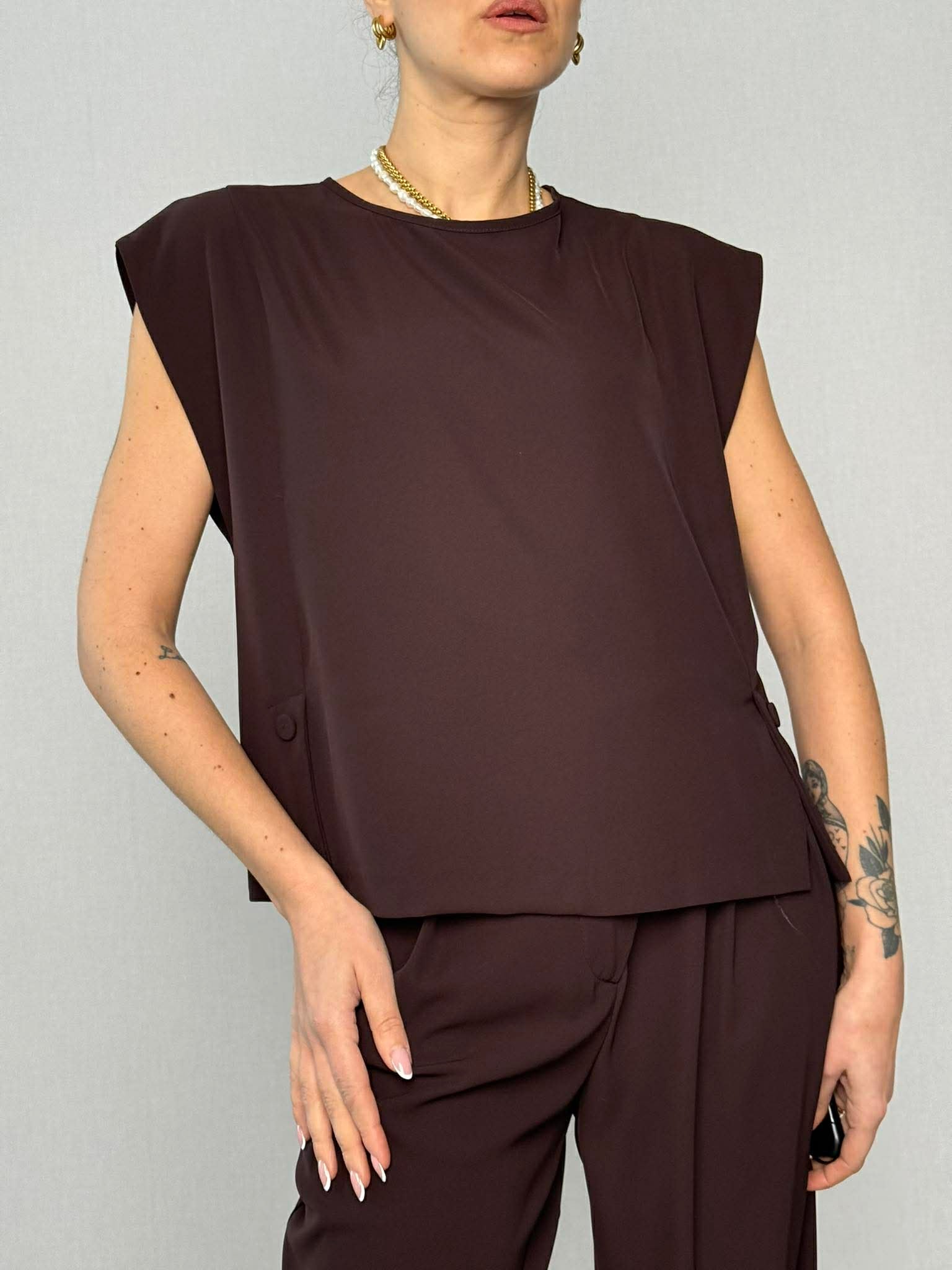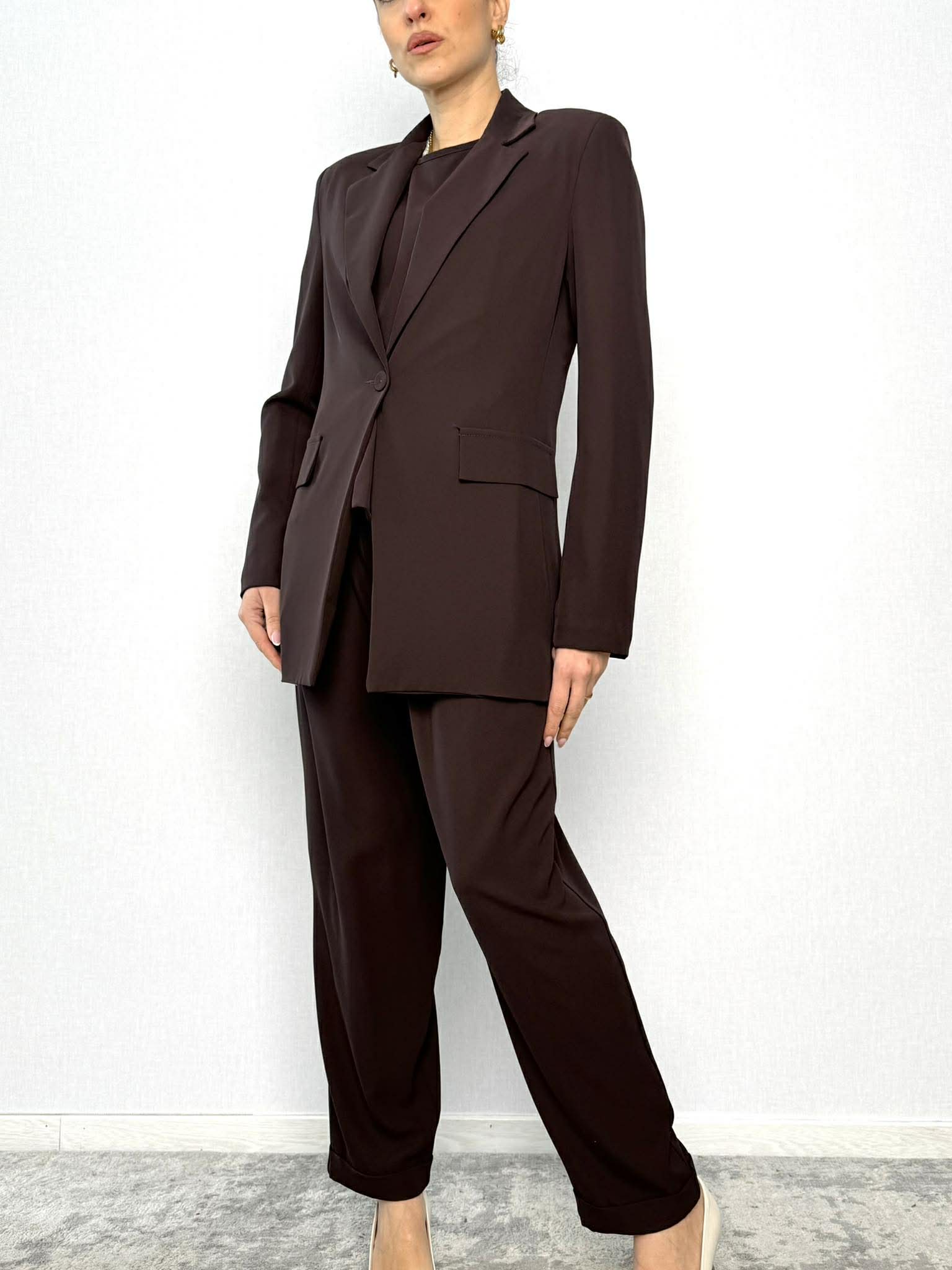 Completo giacca-pantalone-blusa Tensione In mod. 26101CAMP color moro.