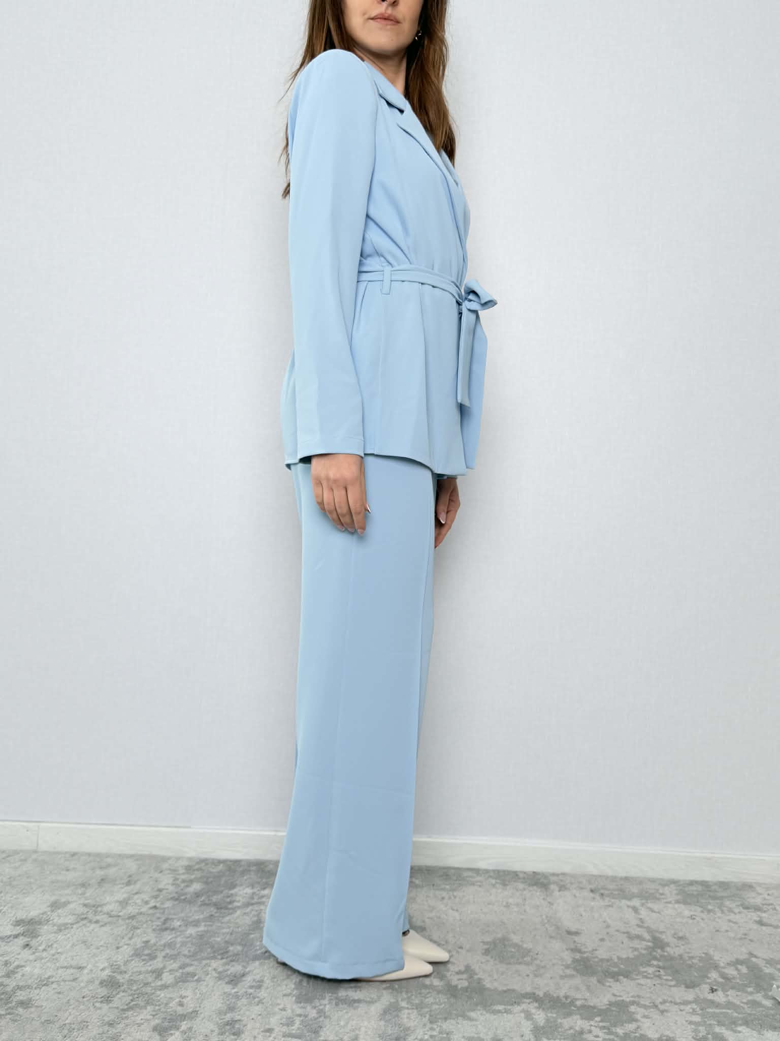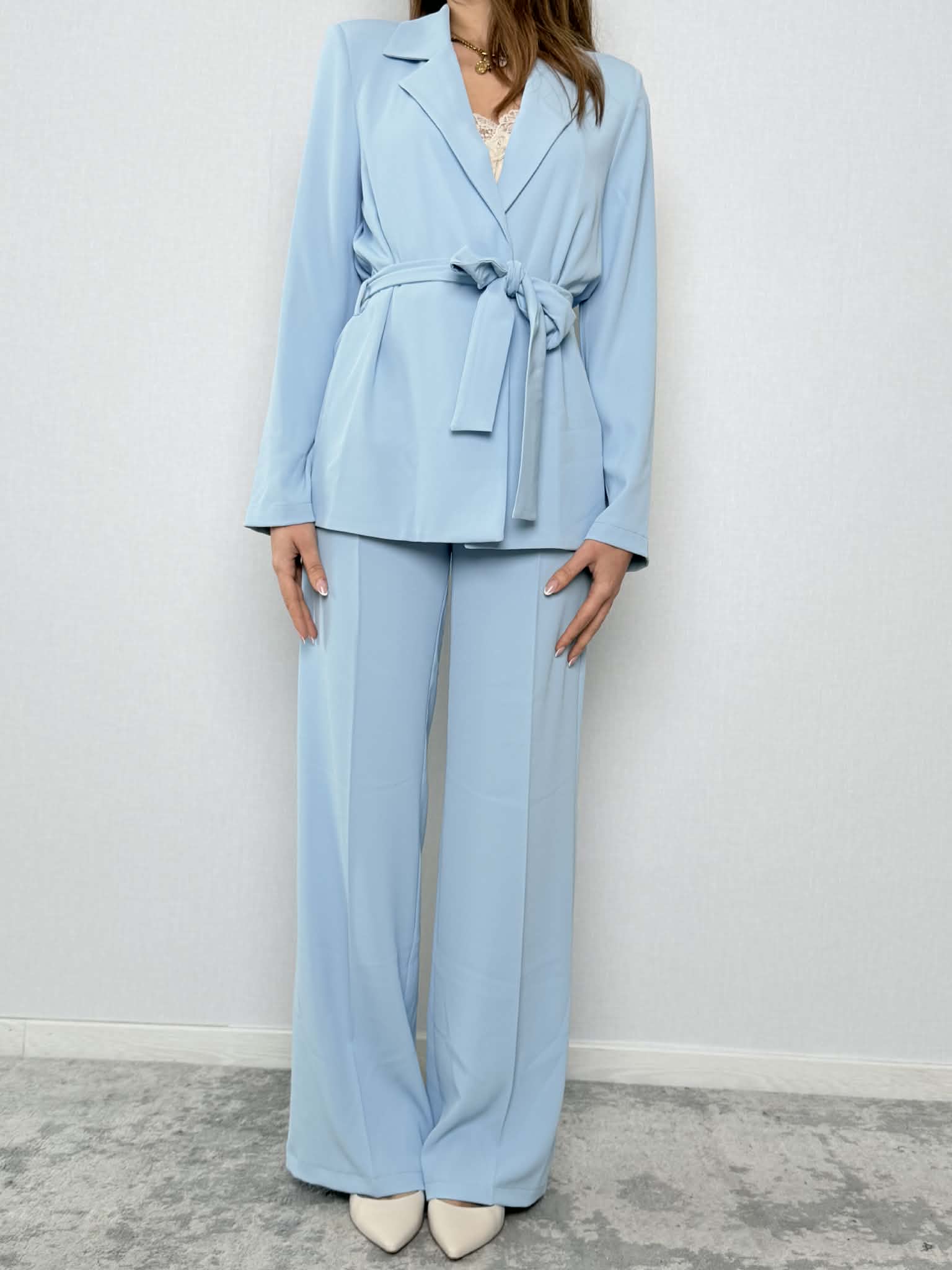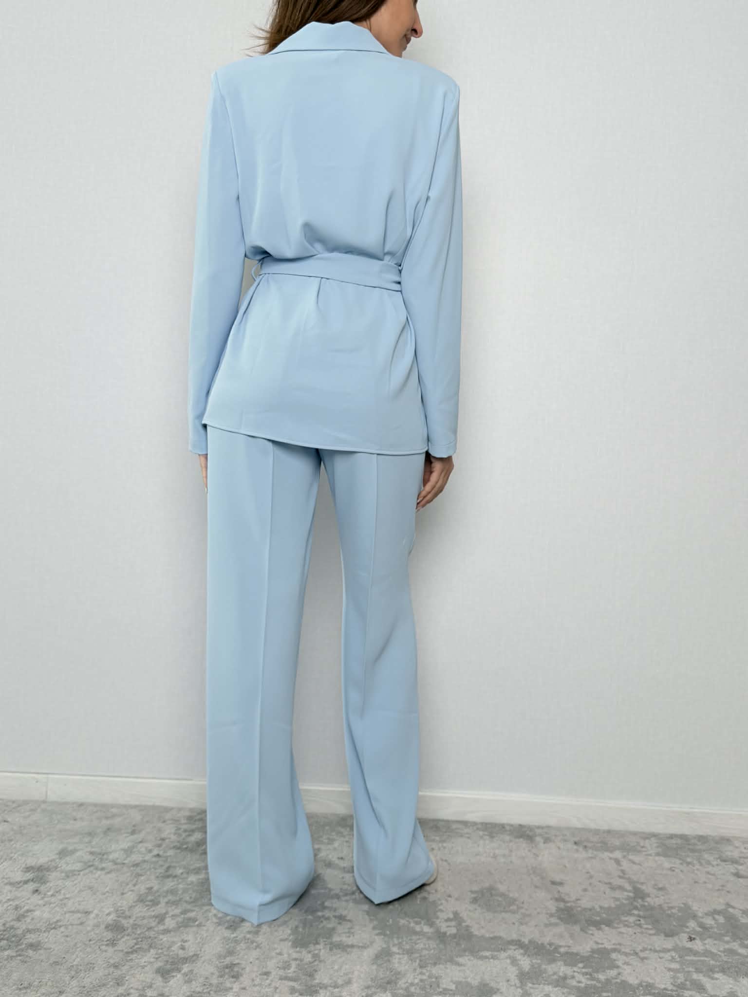 Completo fiocco SuSy Mix mod. 303211 composta da giacca e pantalone color celeste.