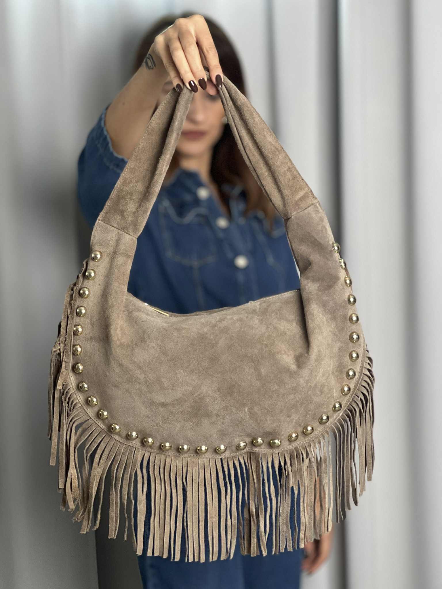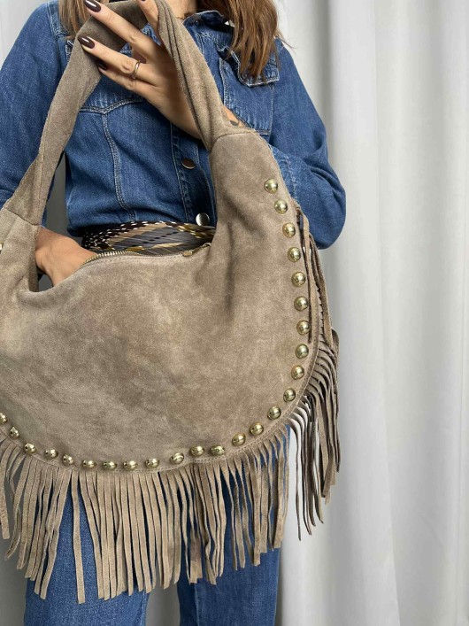Borsa in camoscio color Taupe.