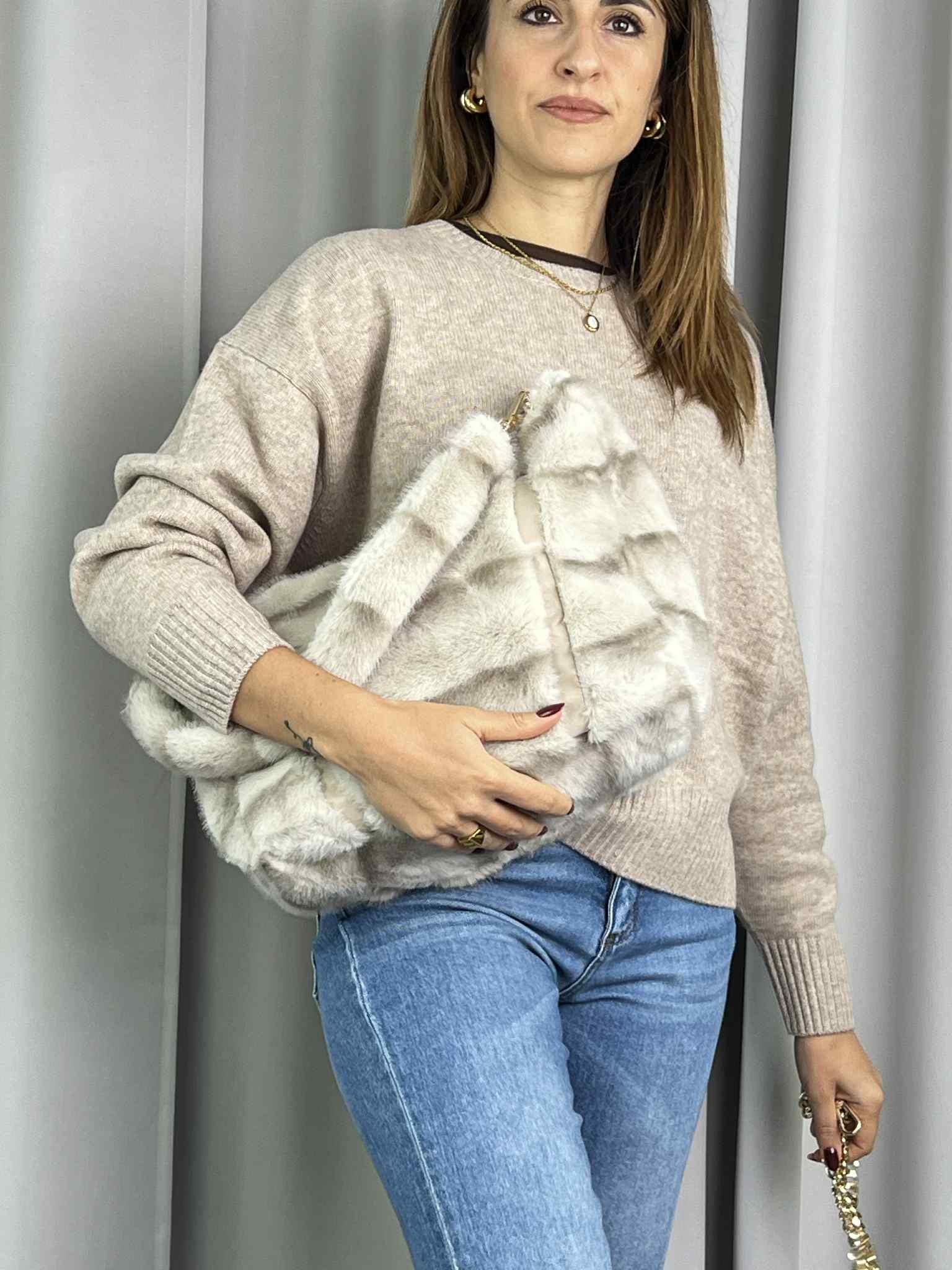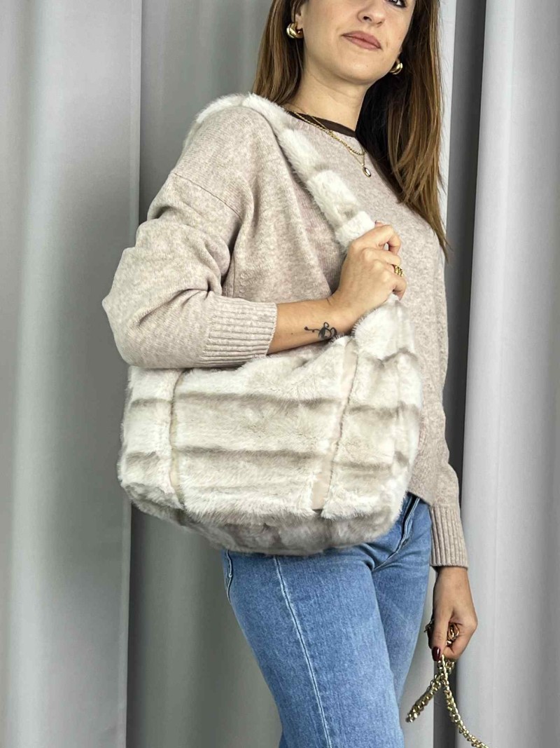 Borsa mod. Stefania in ecofur color beige.