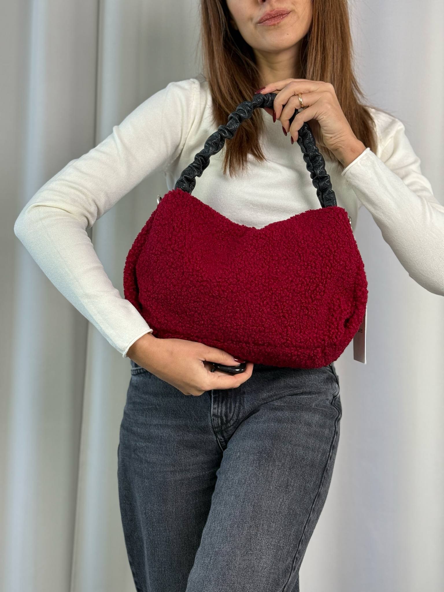 Borsa mod. Sally in teddy color bordeaux.