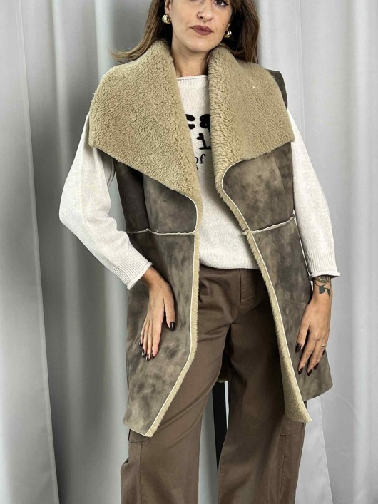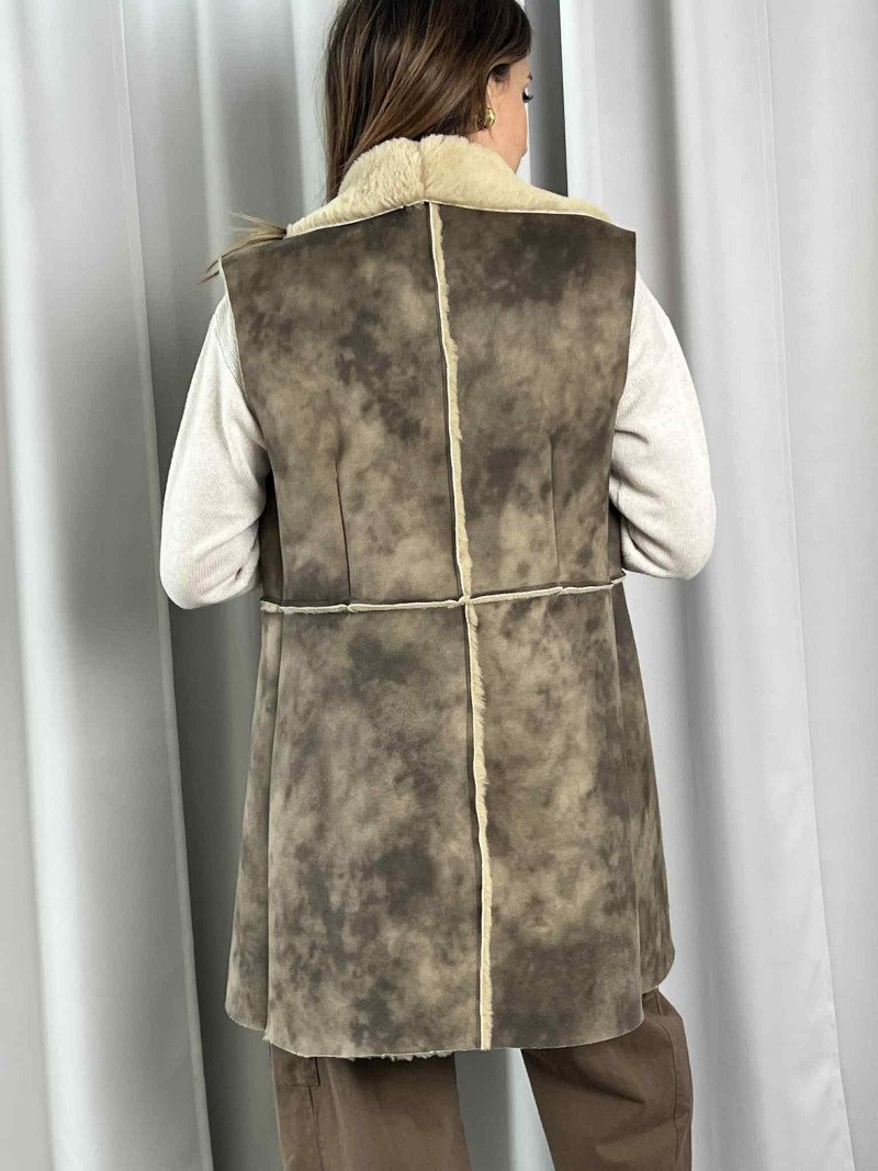 Gilet lungo ecomontone color fango.