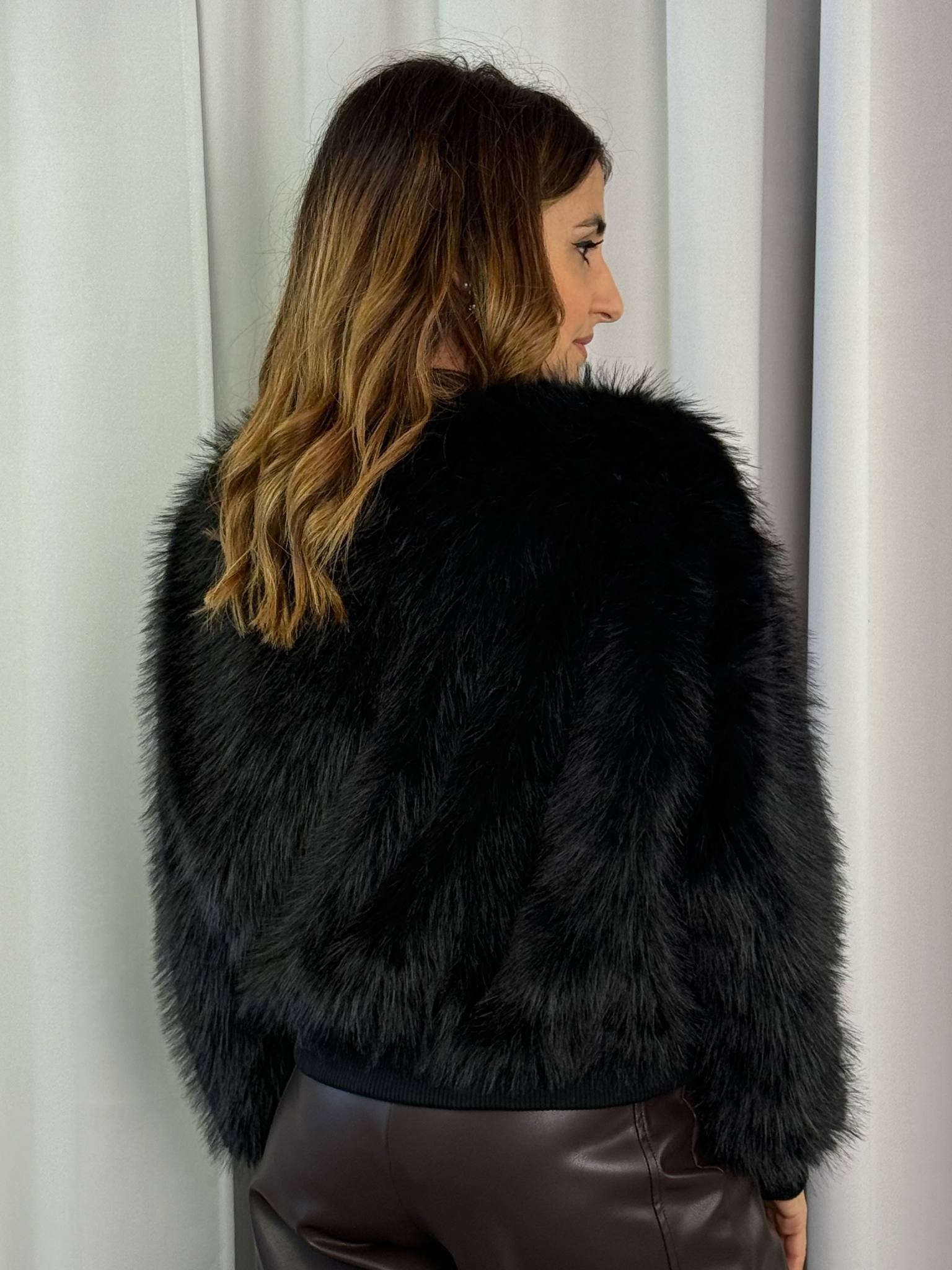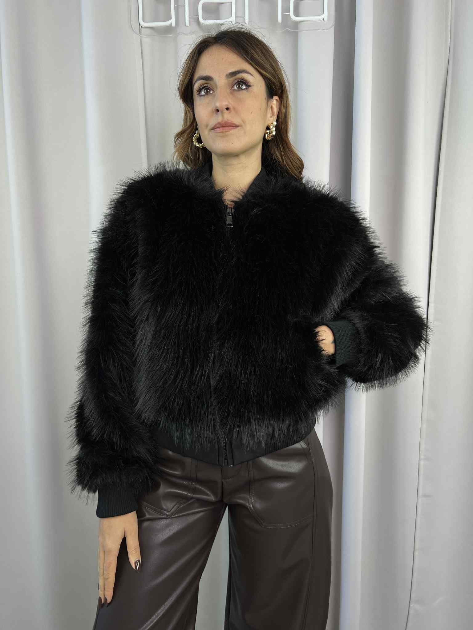 Bomber ecopelliccia Susy Mix color Nero.