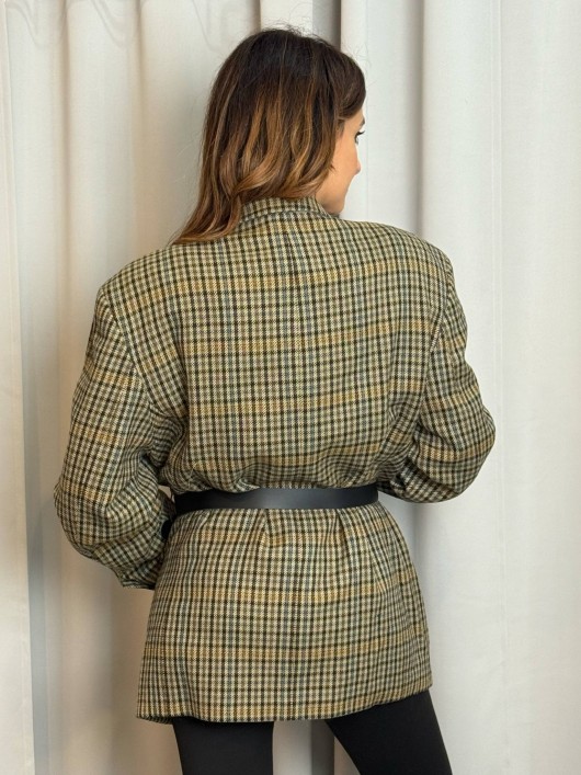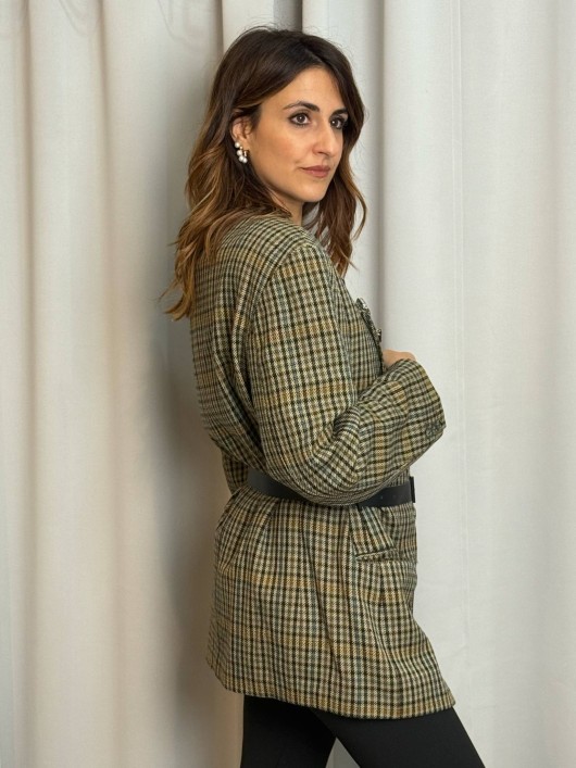 Giacca vintage con cintura Susy Mix color Marrone multicolor.