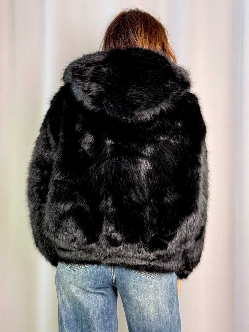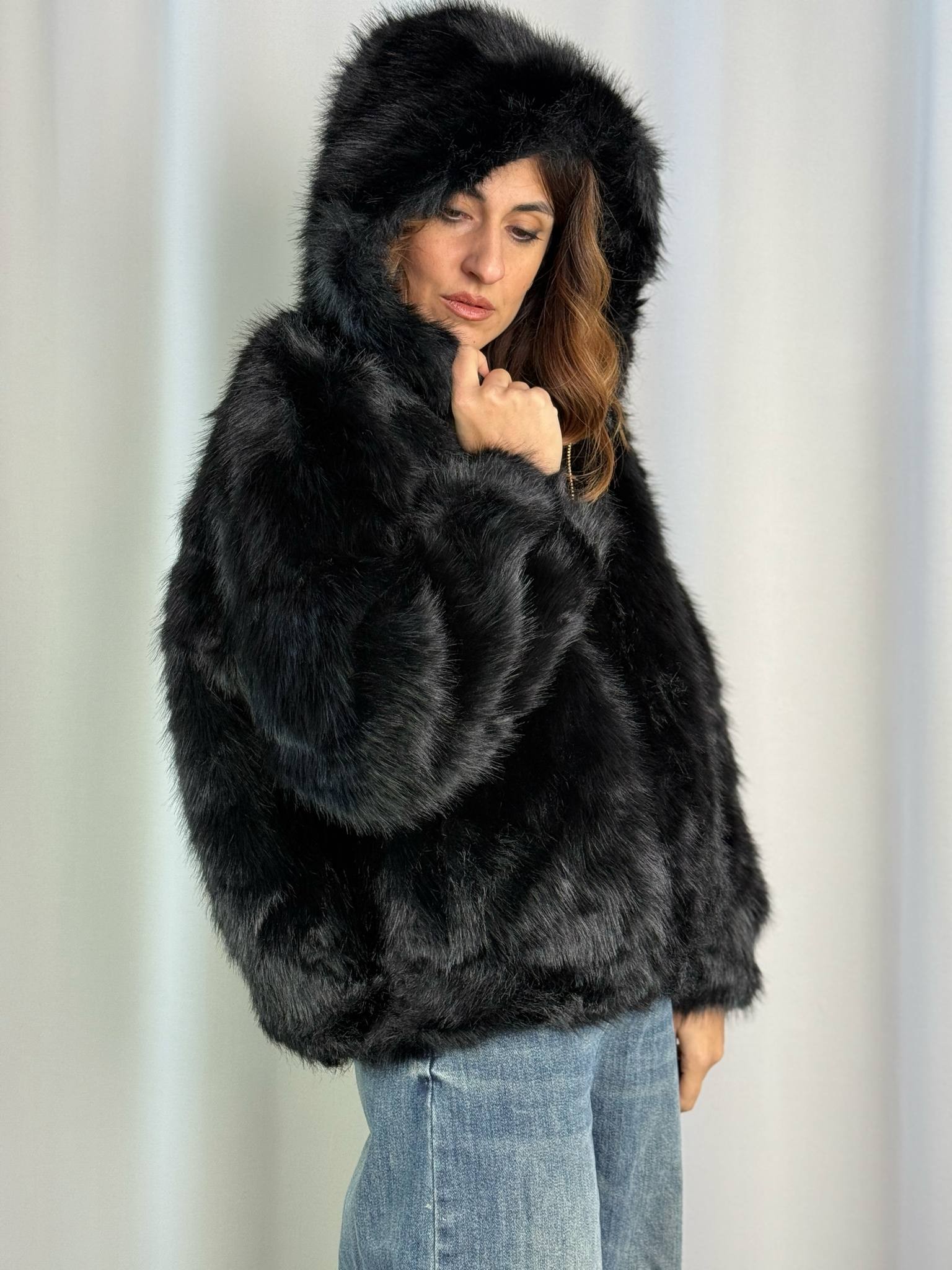 Giubbino ecopelliccia con cappuccio mod. Sirio color Nero.