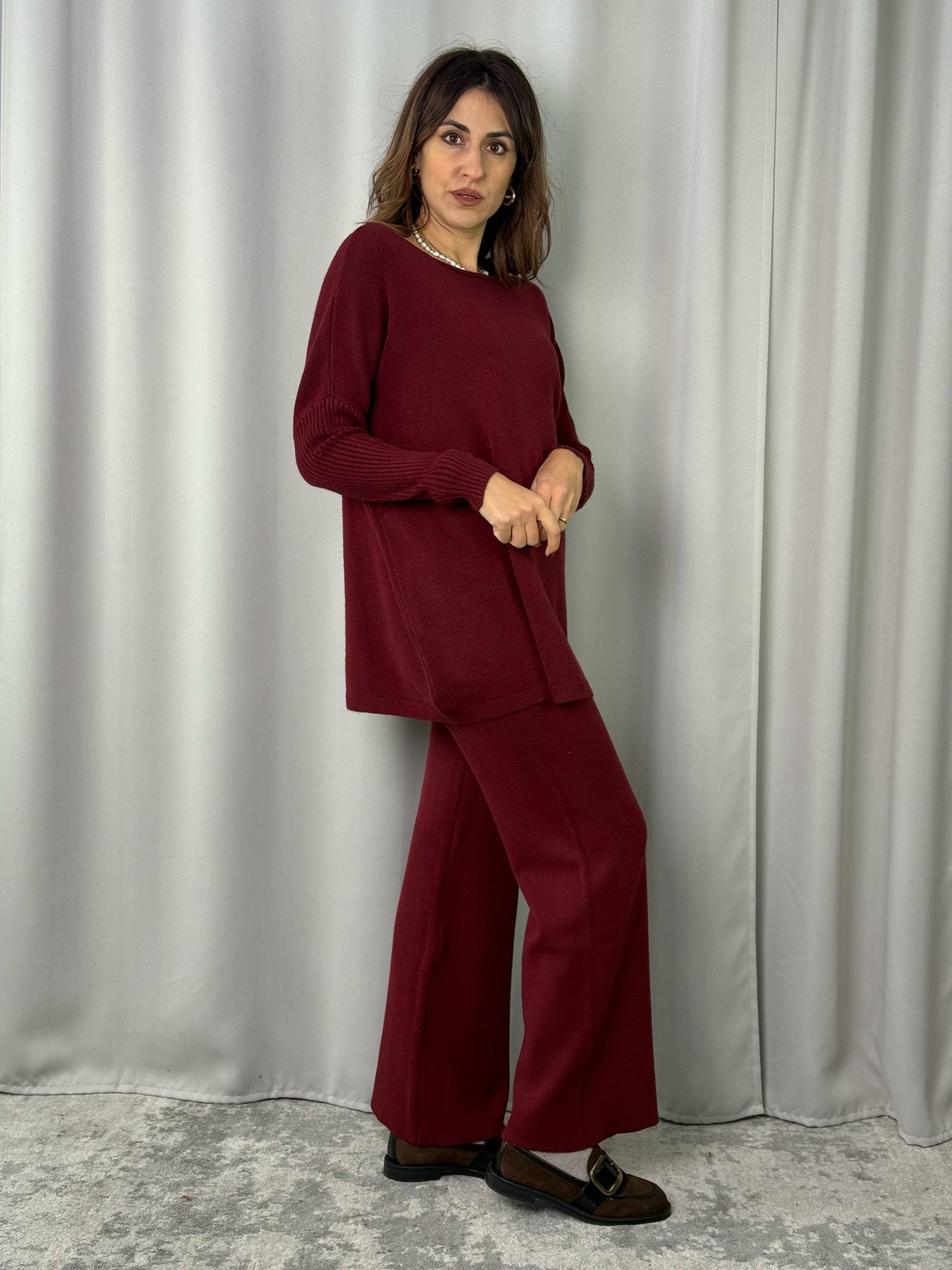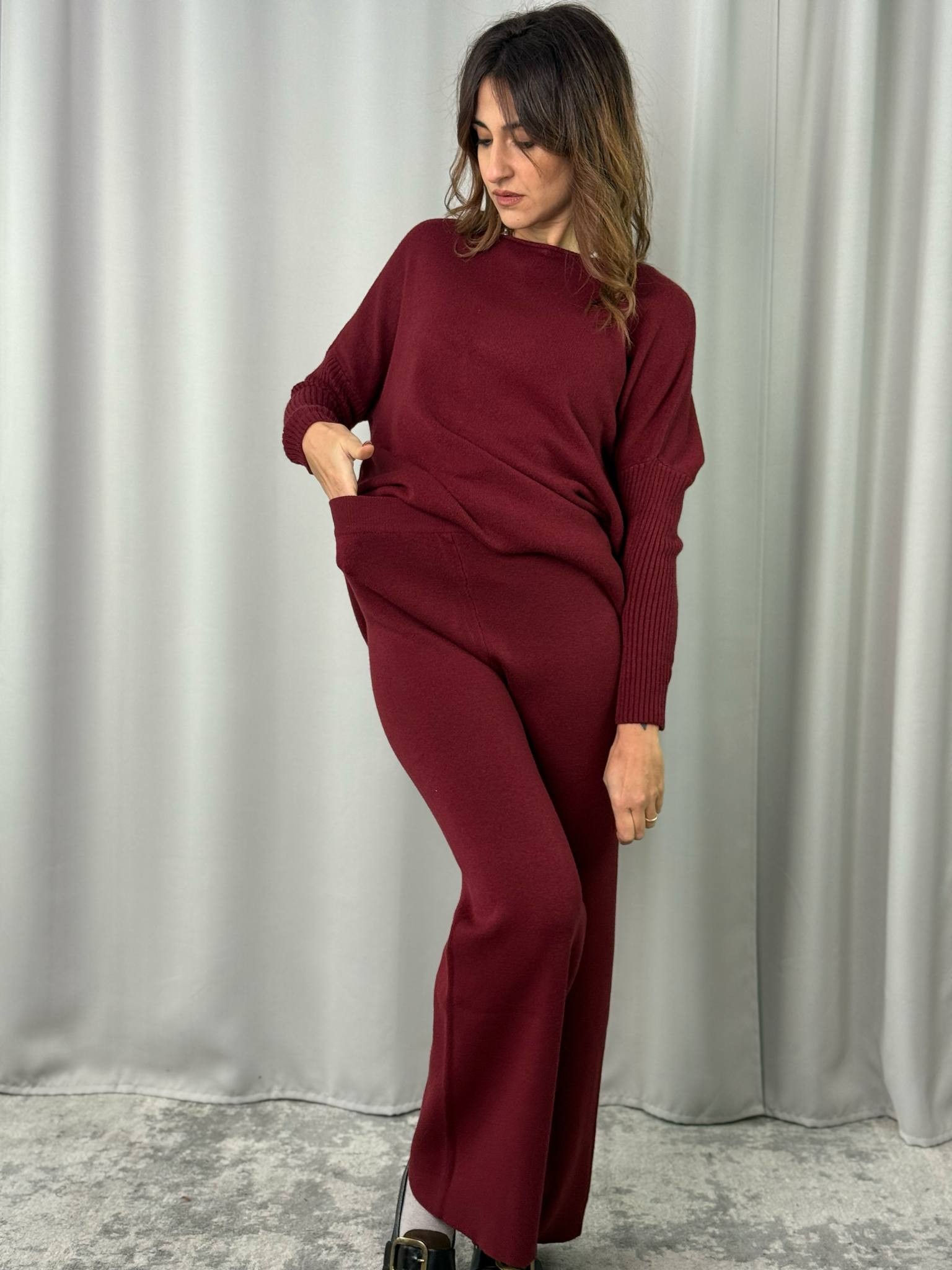 Completo 2 pezzi HaveOne composto da maglia e pantalone color bordeaux.