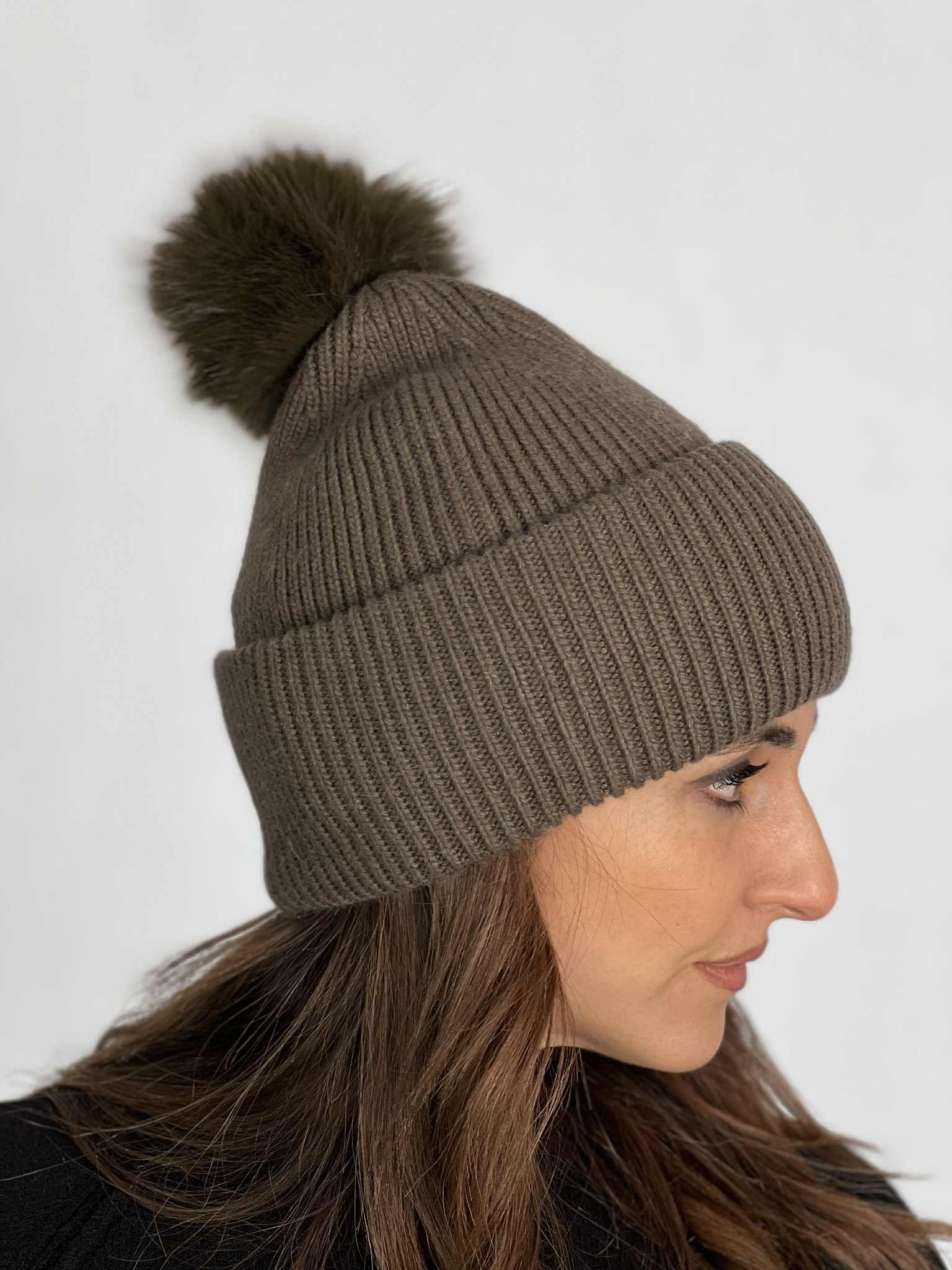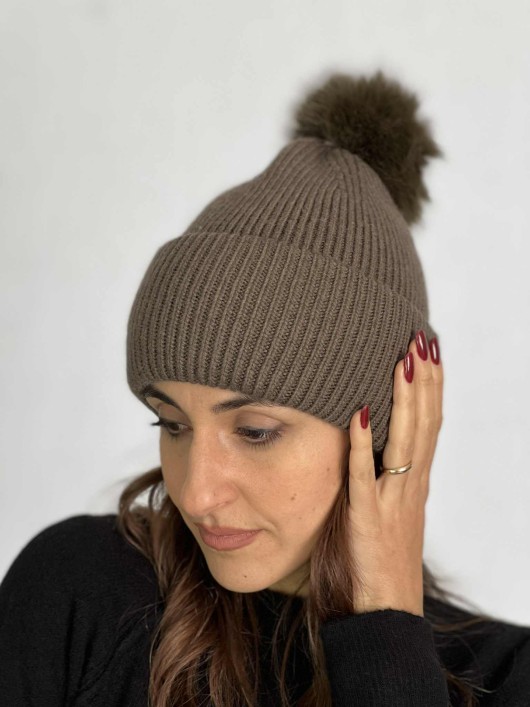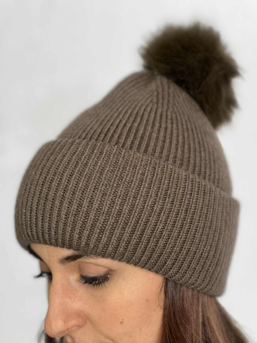 Cuffia con pon pon staccabile color Verdone.