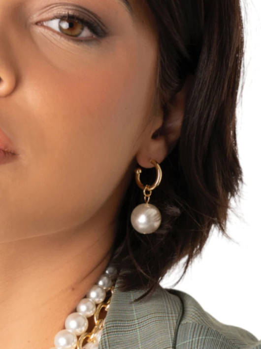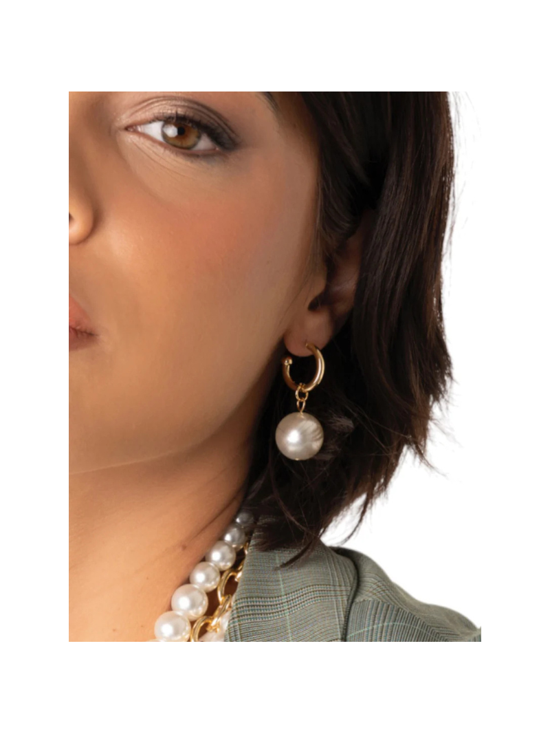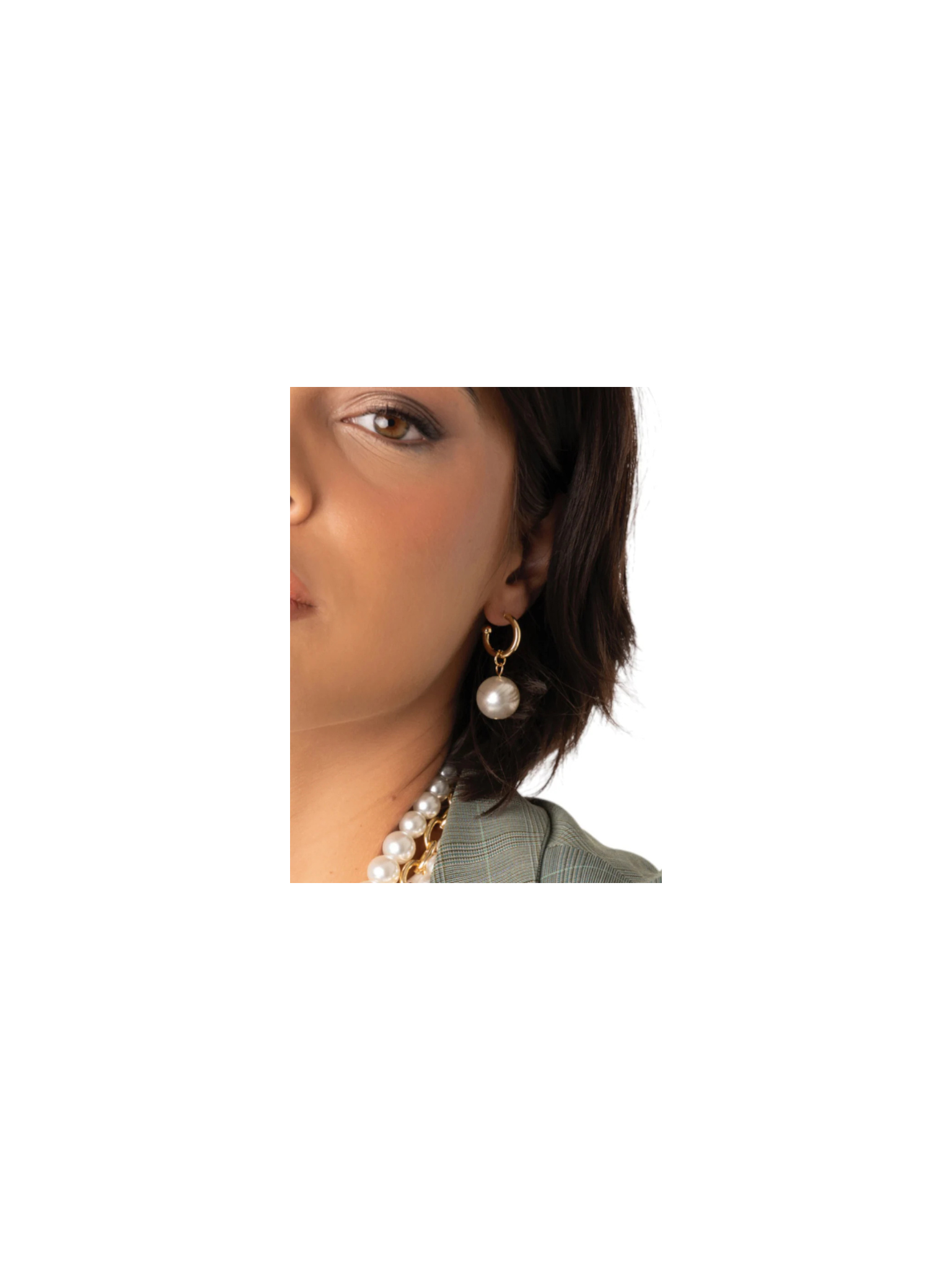 Orecchino a cerchietto con sfera 14mm in acrilico perlato.
