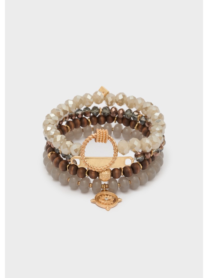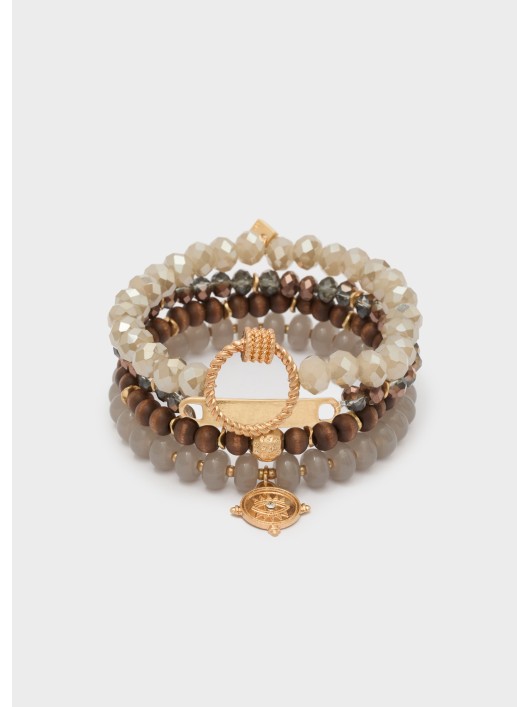 Bracciale set elastico beads grigio.