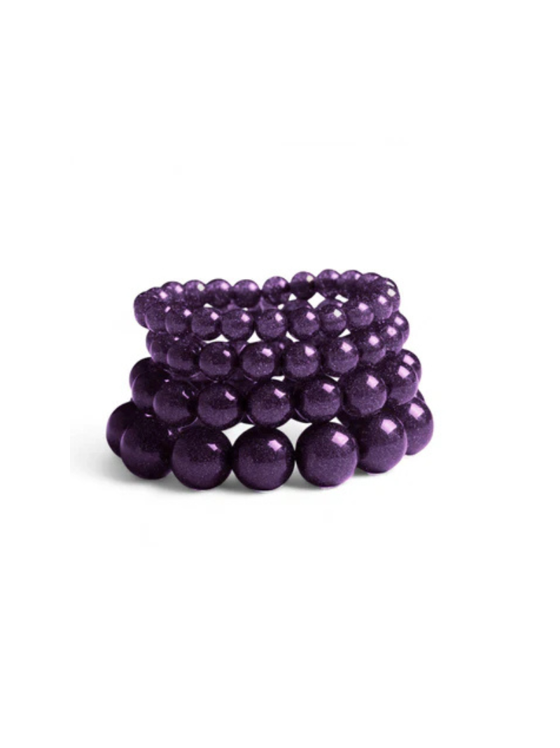 Bracciale elastico a 3 fili con pietre in resina viola.