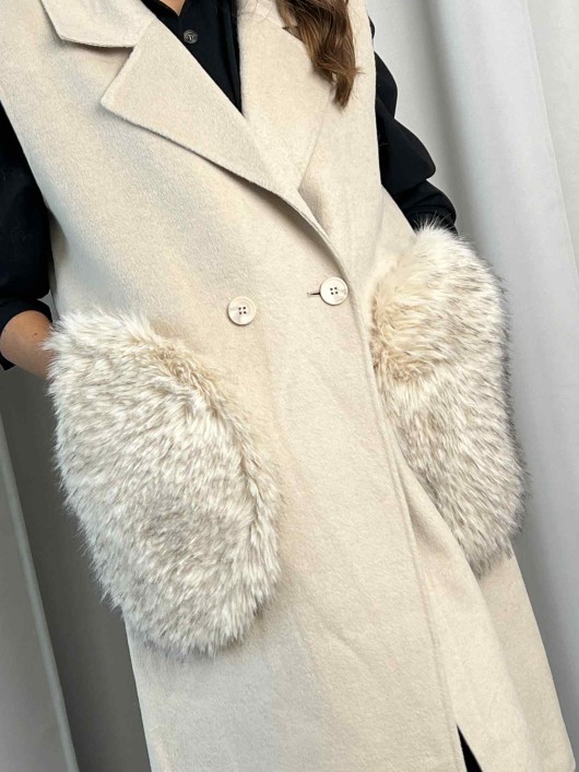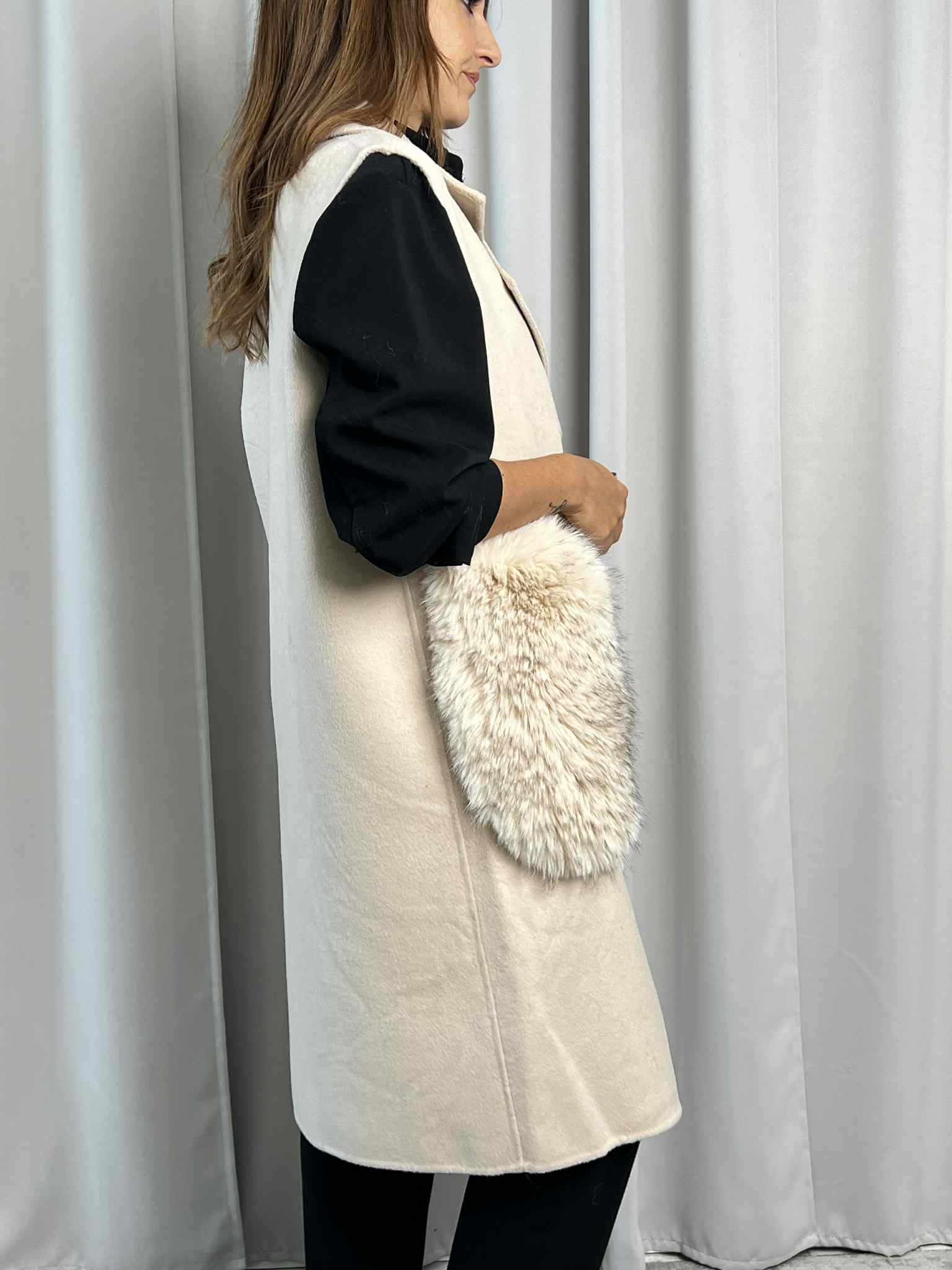 Gilet lungo misto lana color beige.
