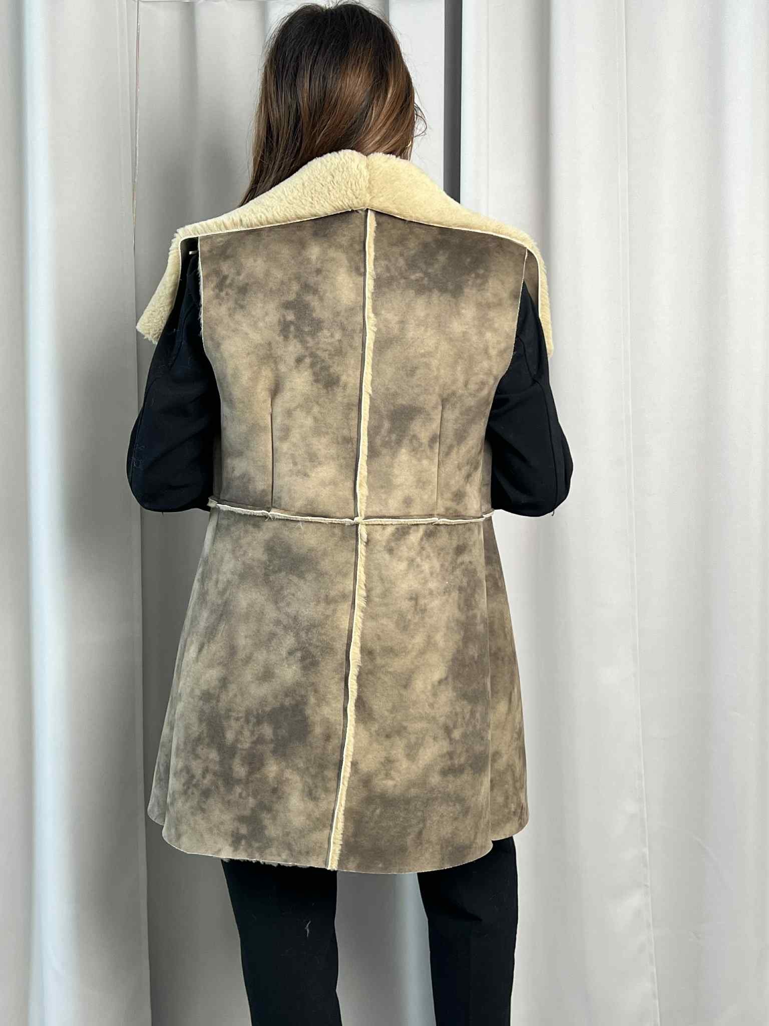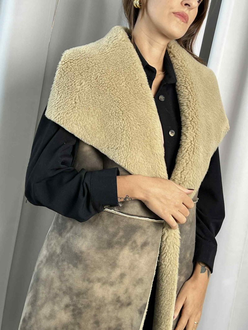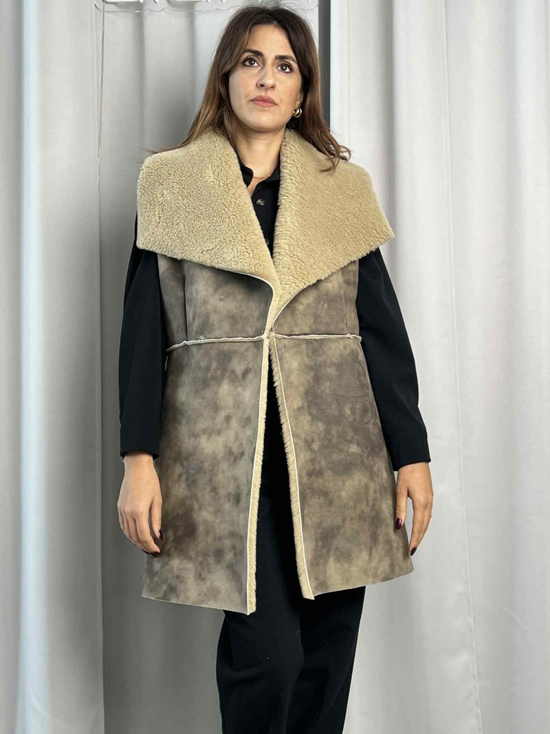 Gilet lungo ecomontone color fango.