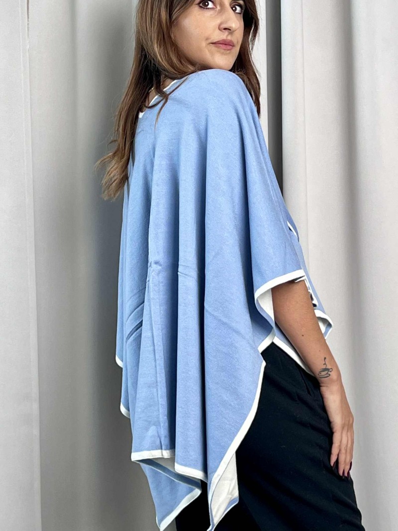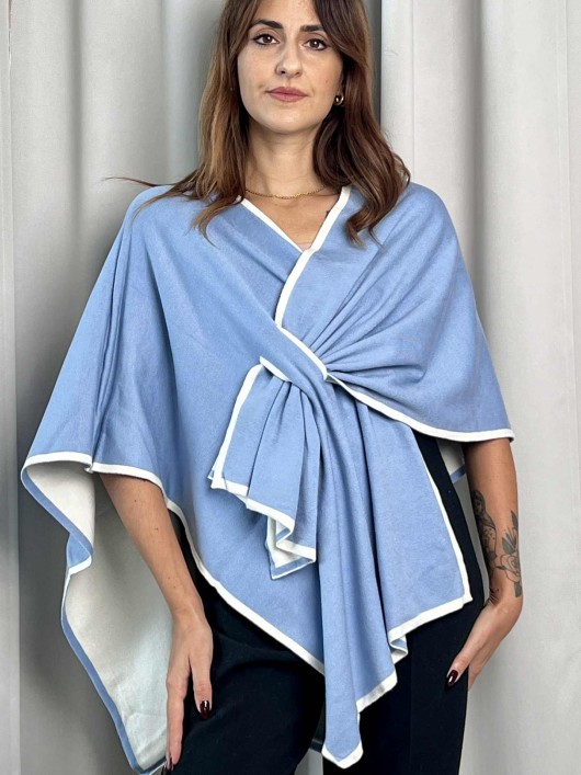 Cappa reversibile color celeste e beige.
