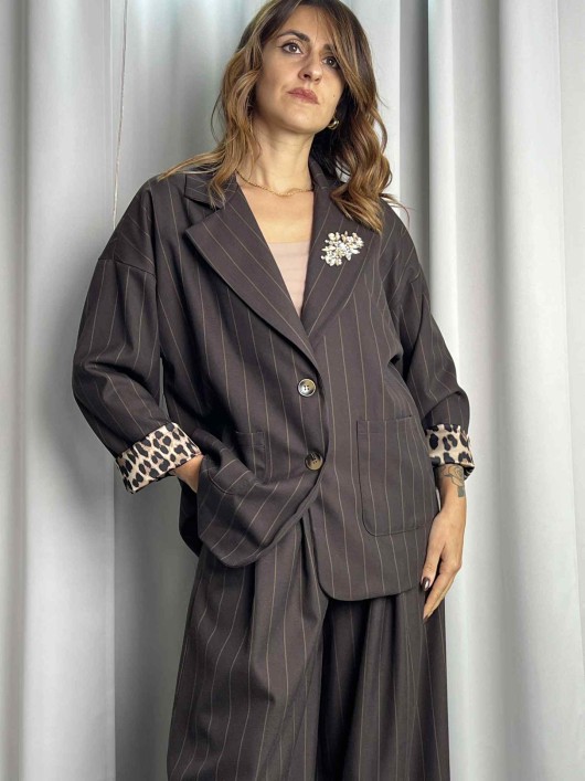 Giacca gessata Susy Mix color moro.