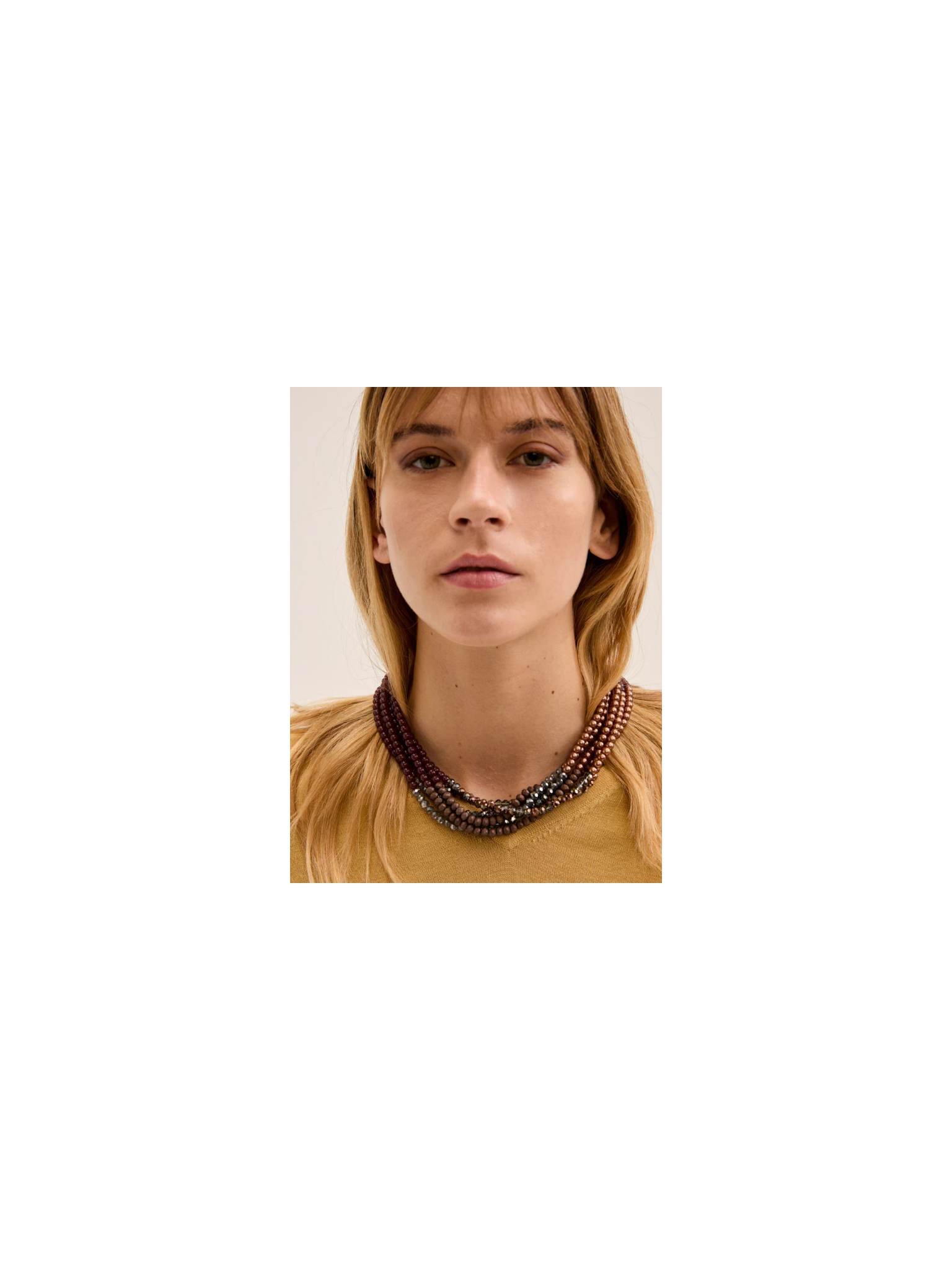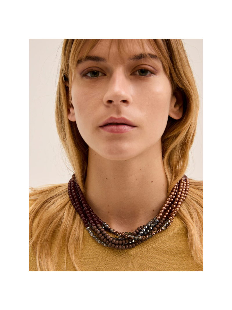 Collana multifilo perline marrone/bronzo.