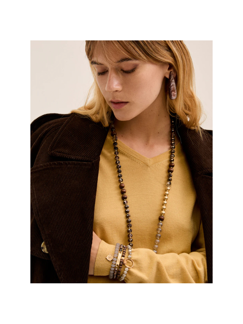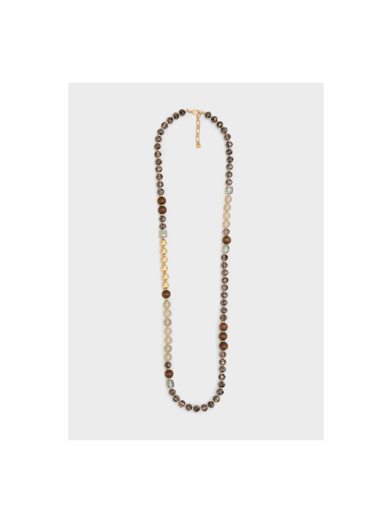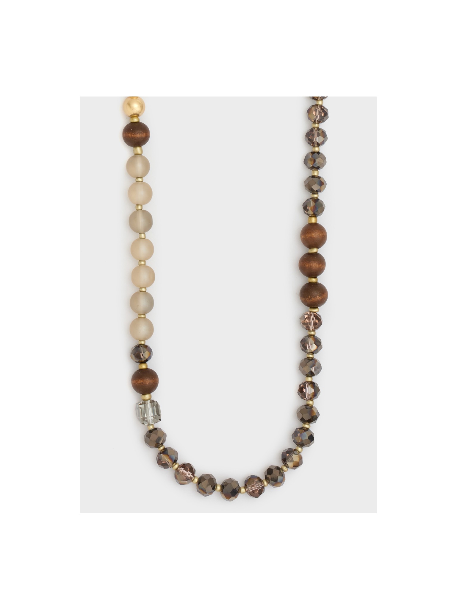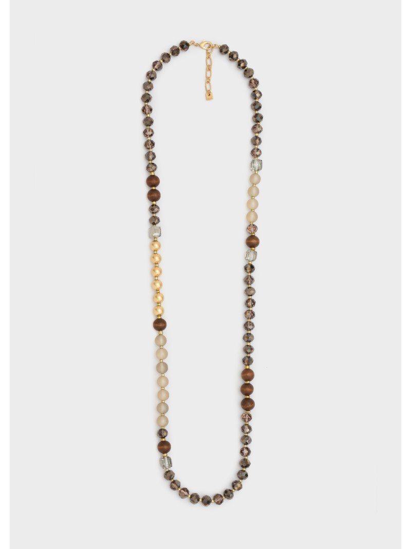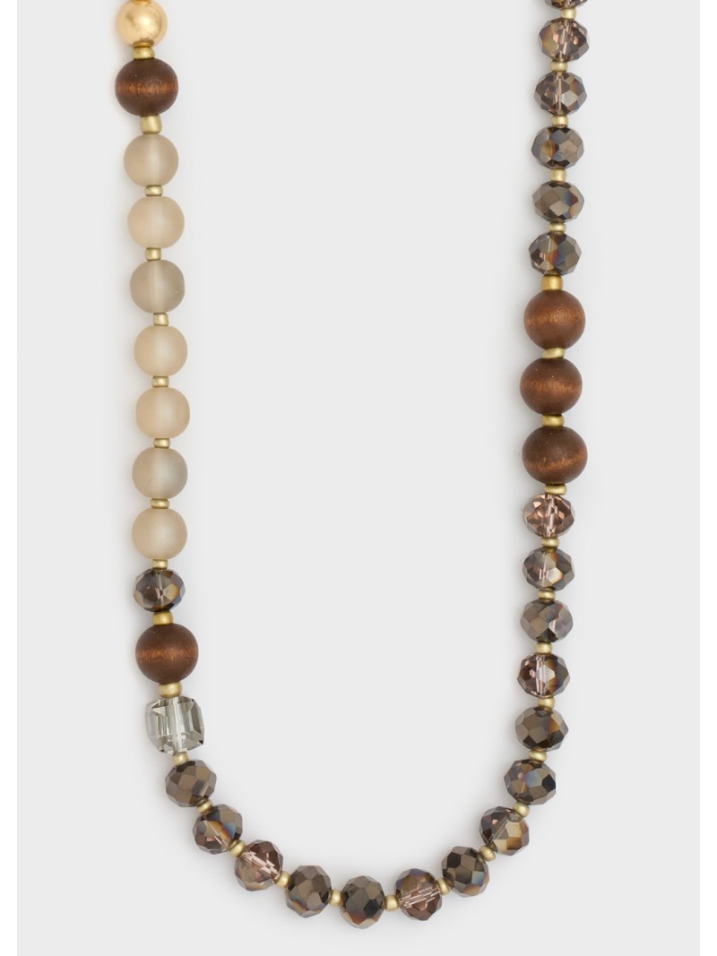 Collana lunga perline legno/grigio mix