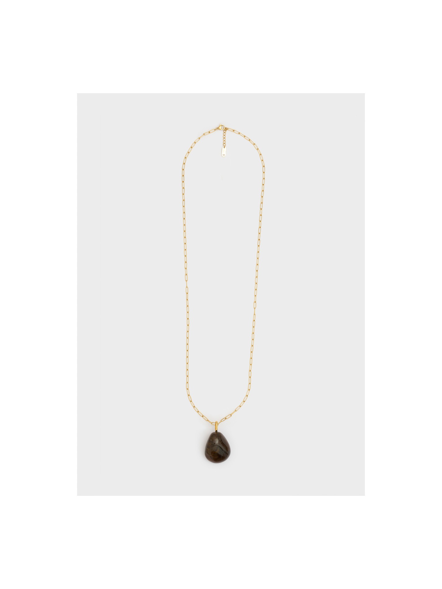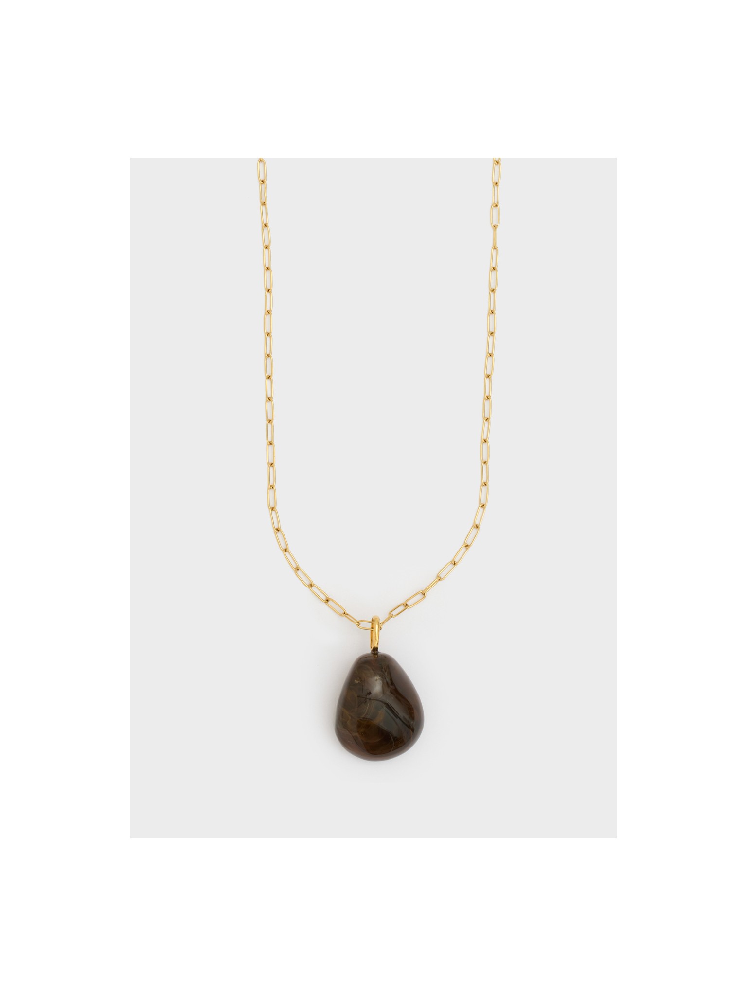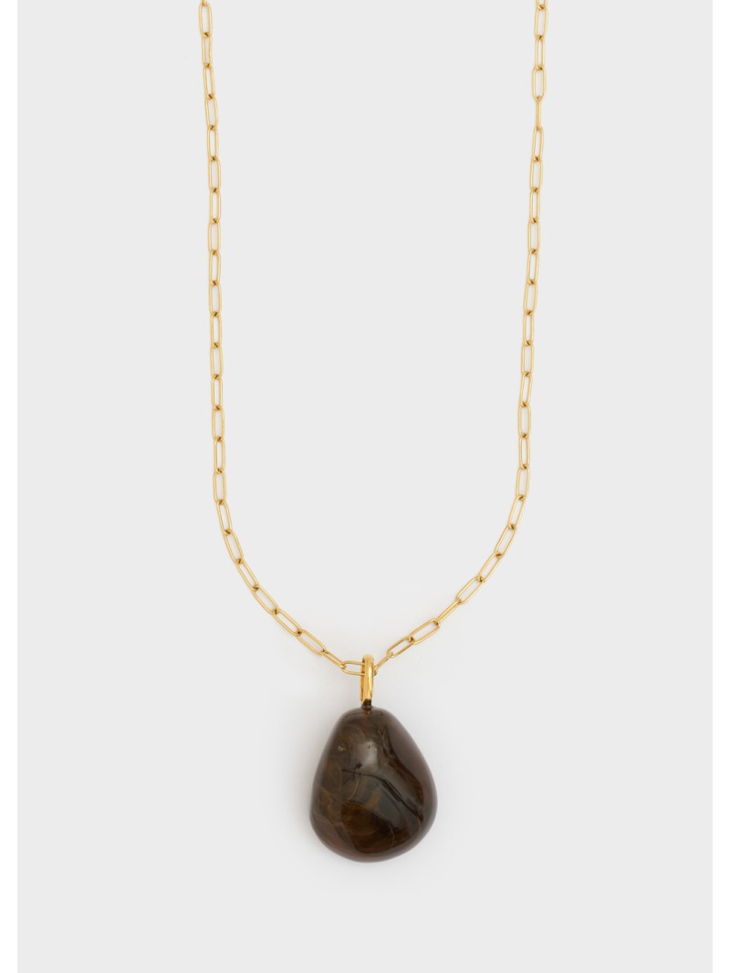 Collana ZOE pendente resina acciaio inoss. marrone.