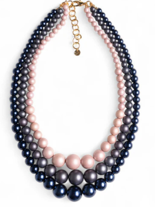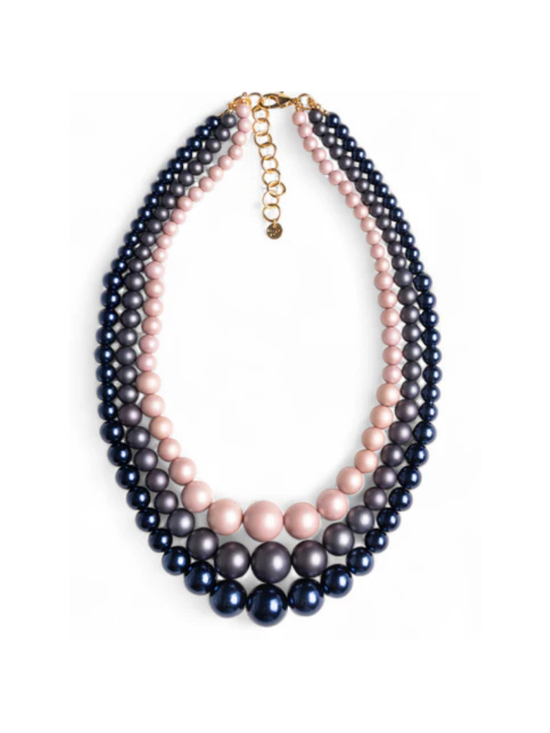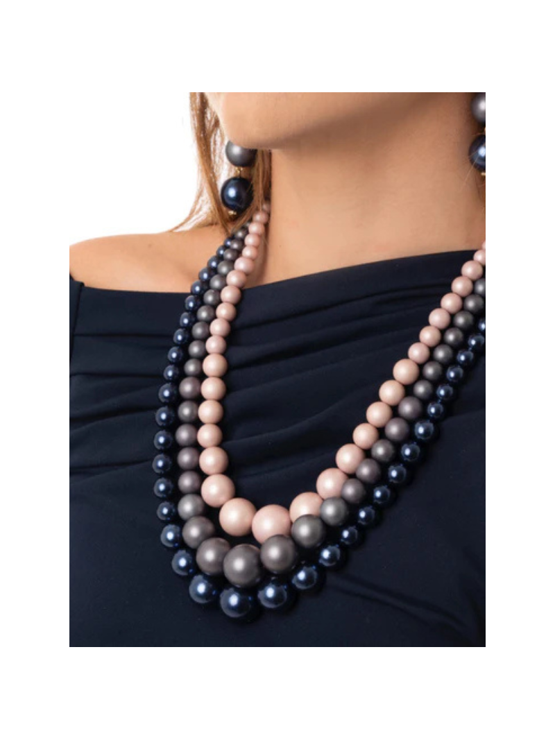 Collana 3 fili boules tono blu.