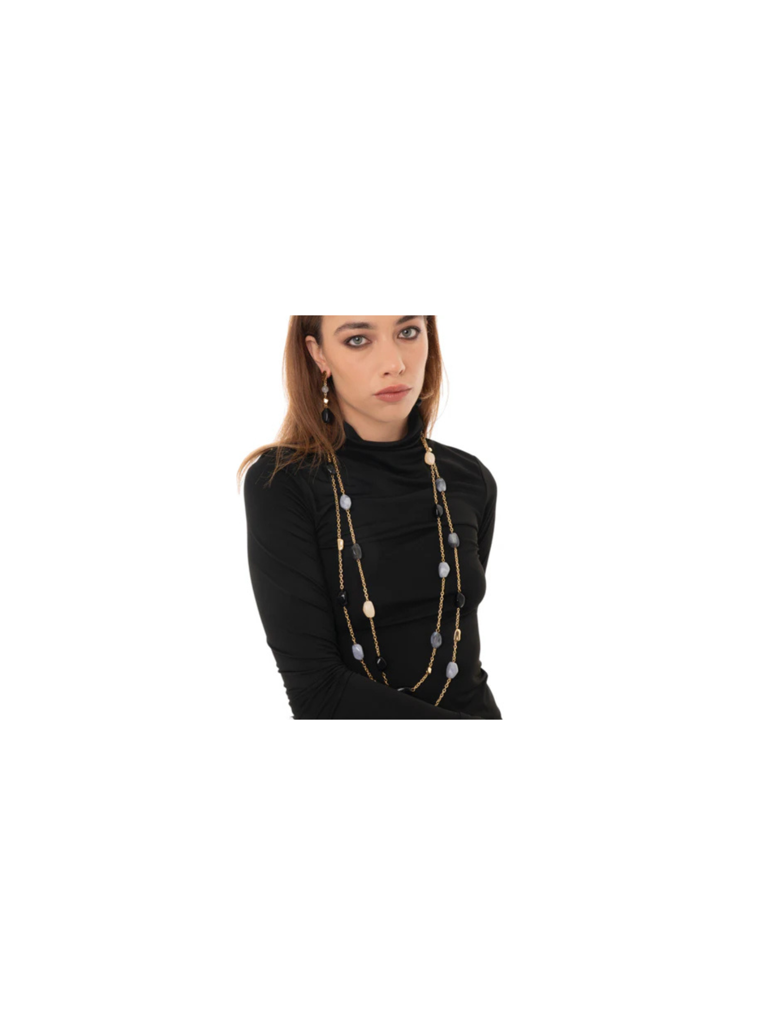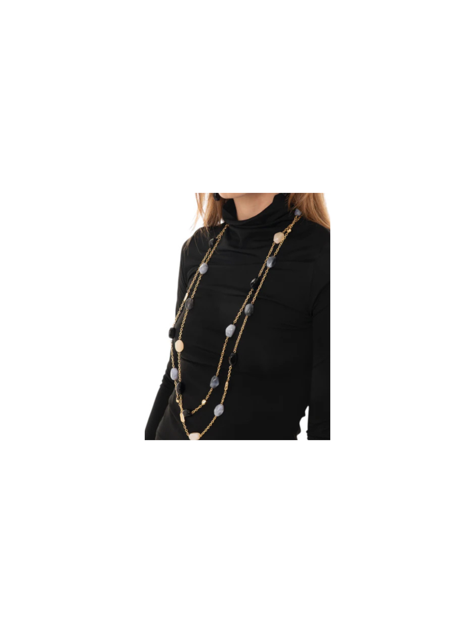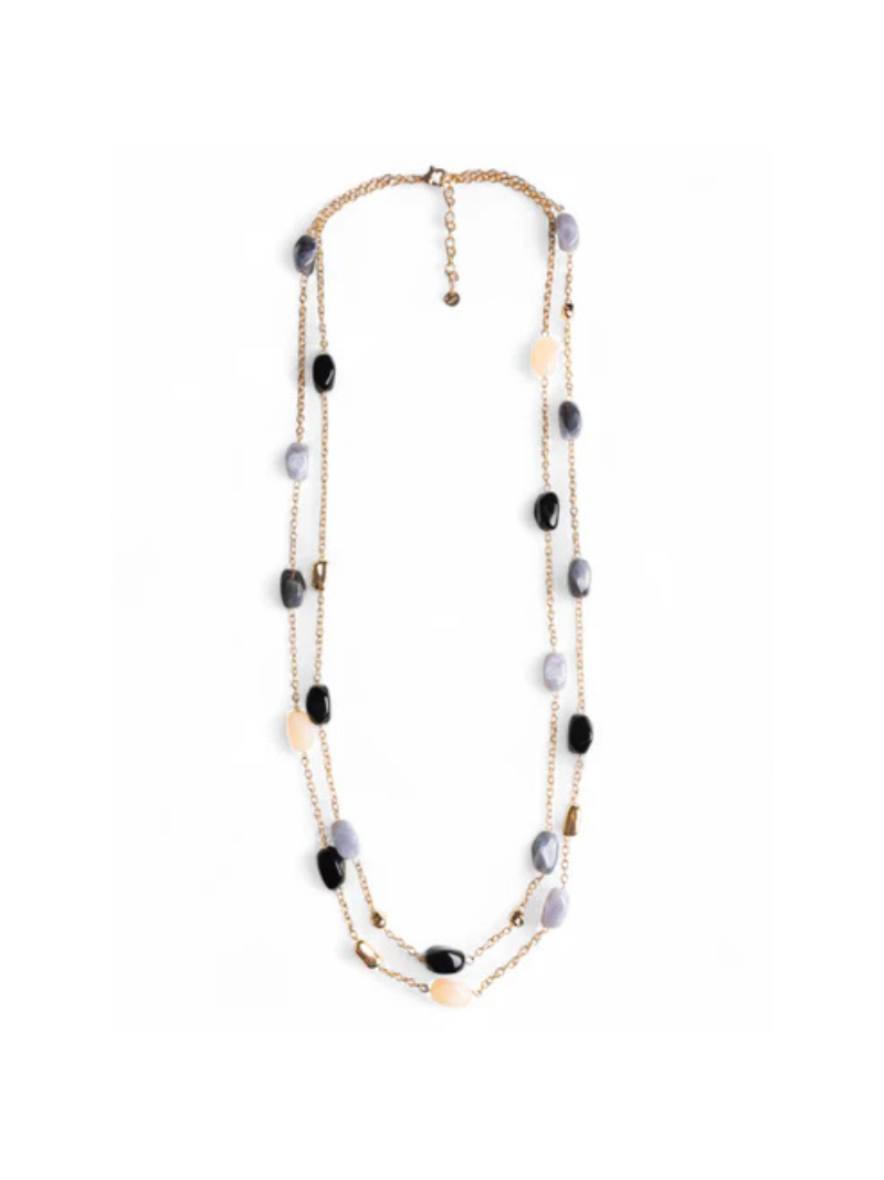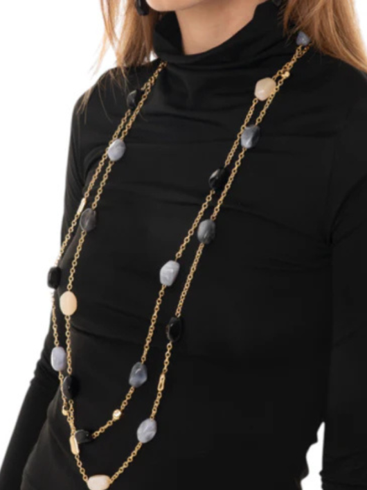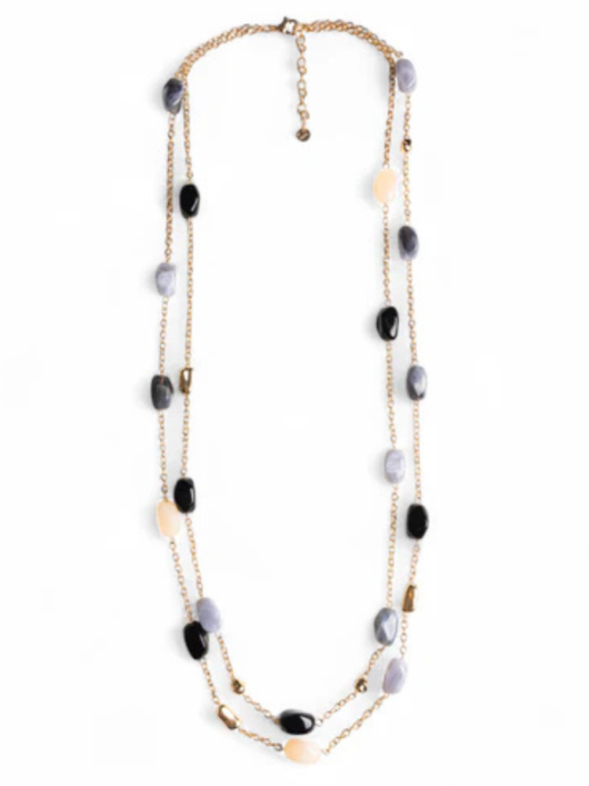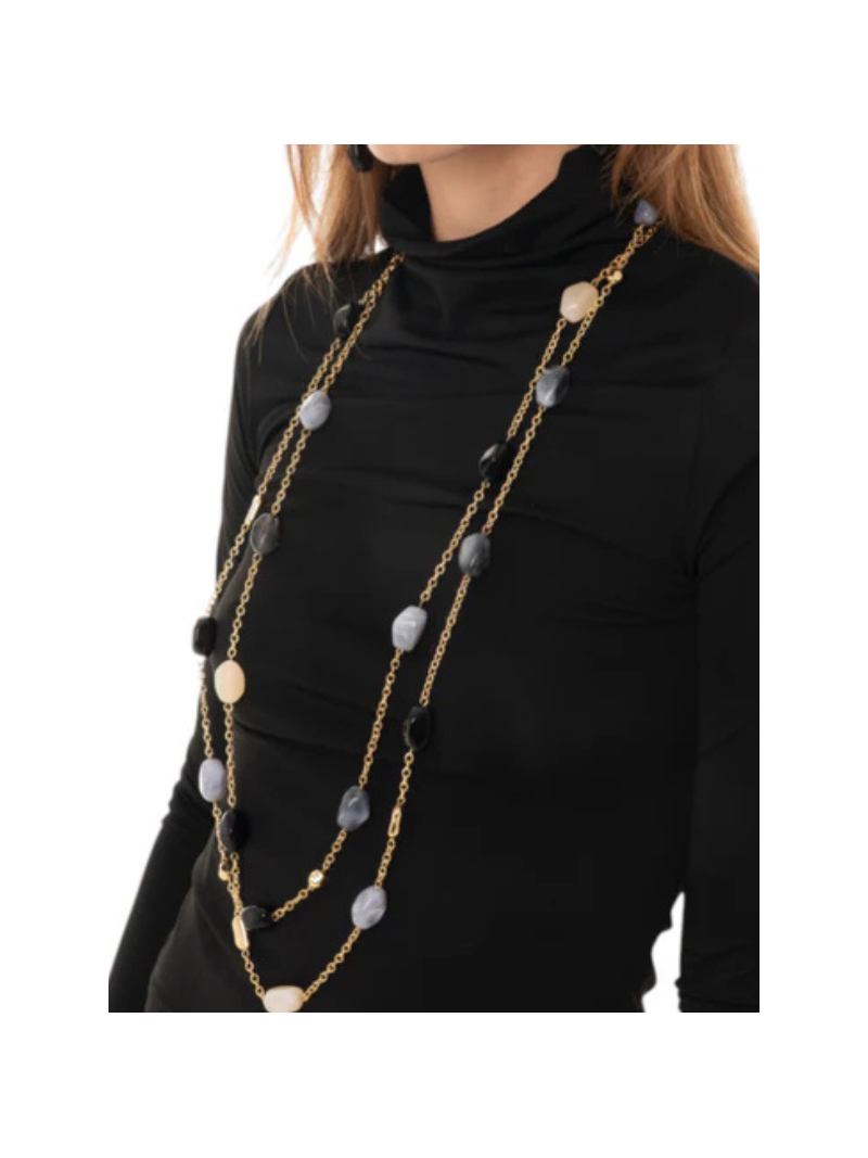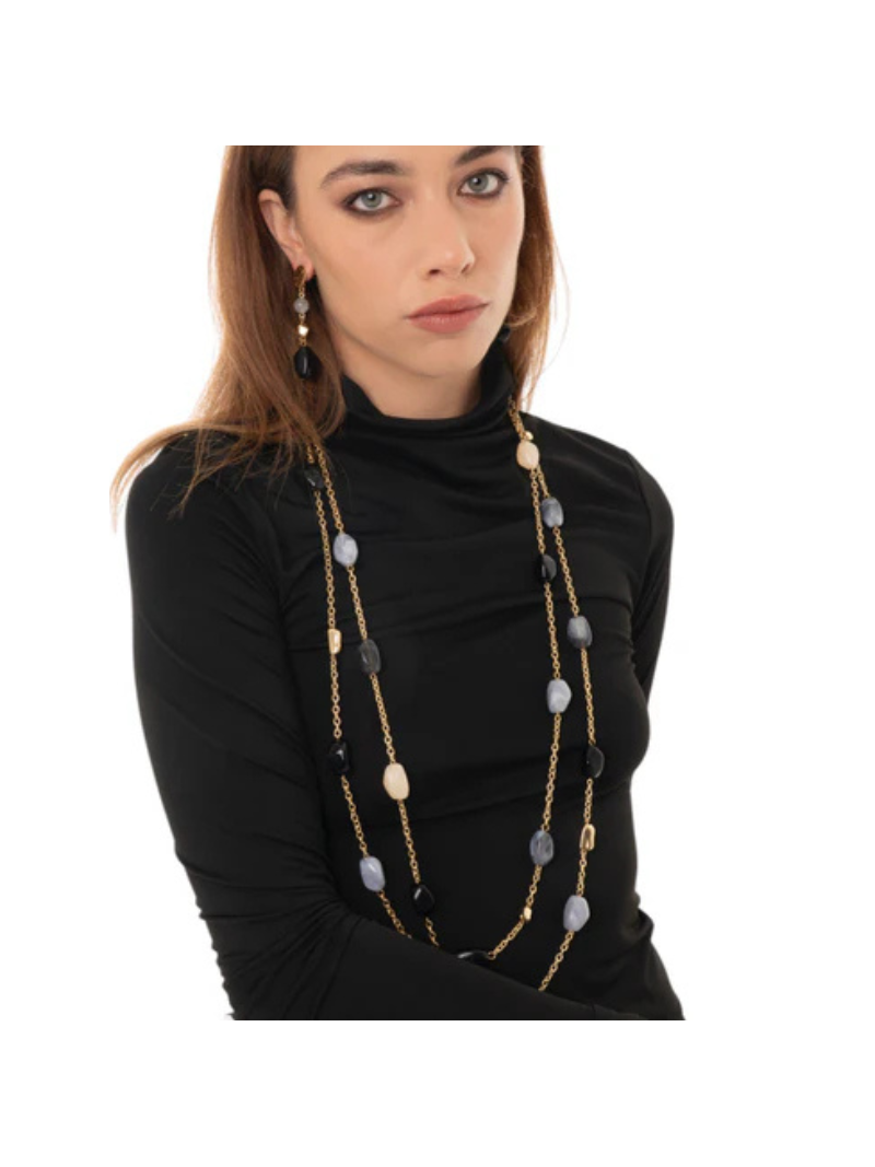 Collana multifilo a catena con pietre acrilico nero.