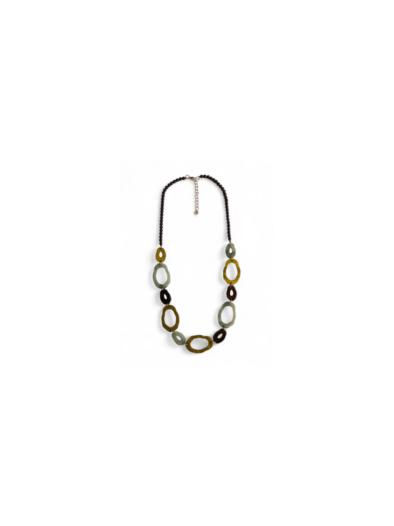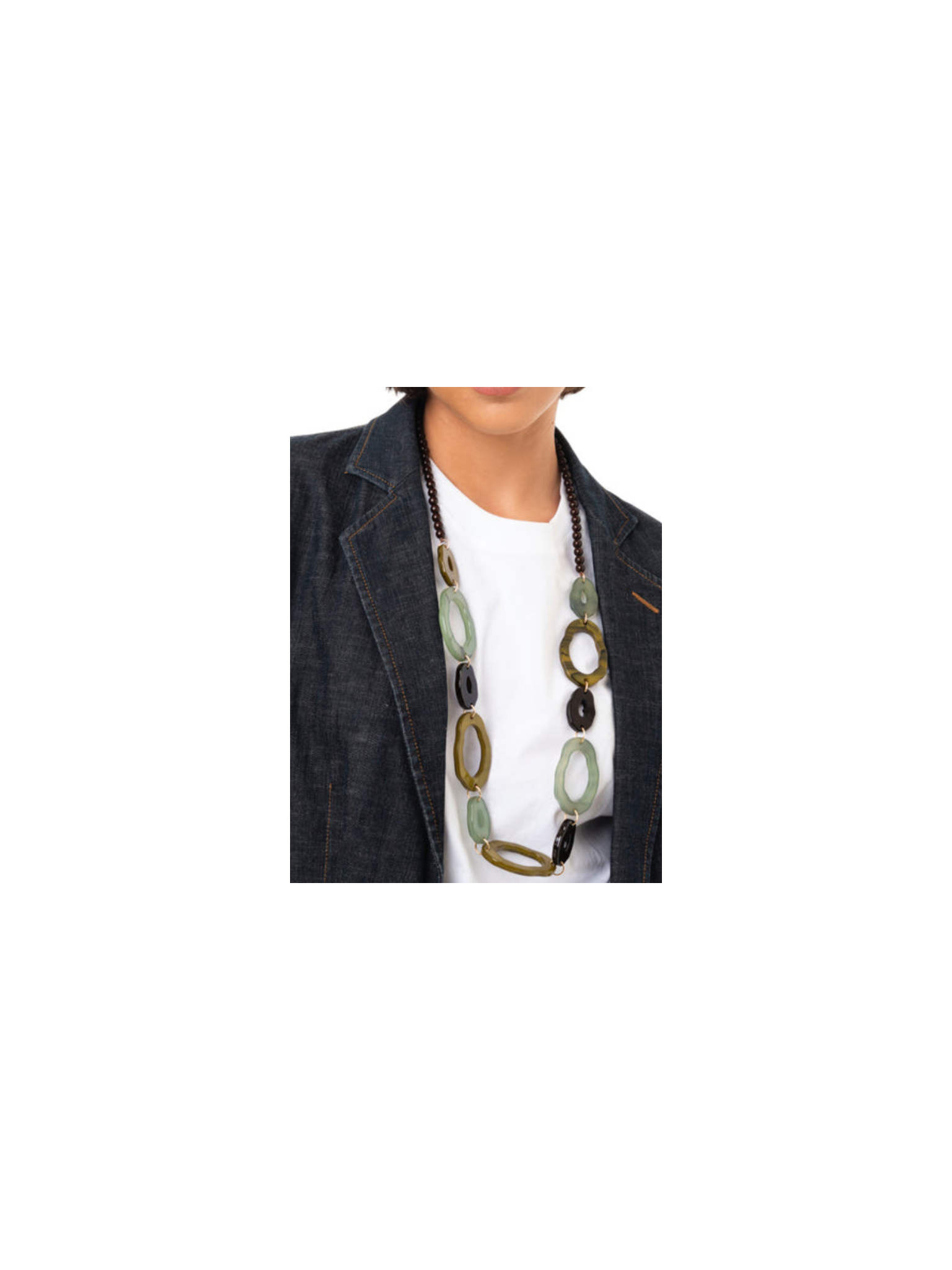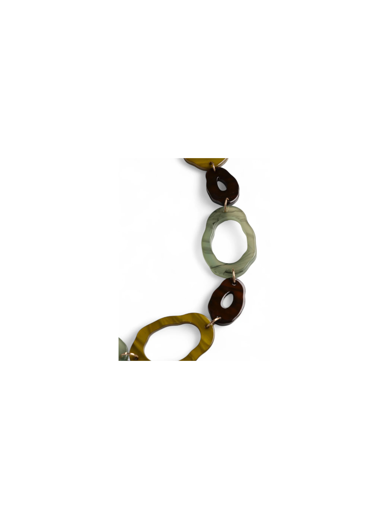 Collana lunga in acrilico con inserti tono verde.