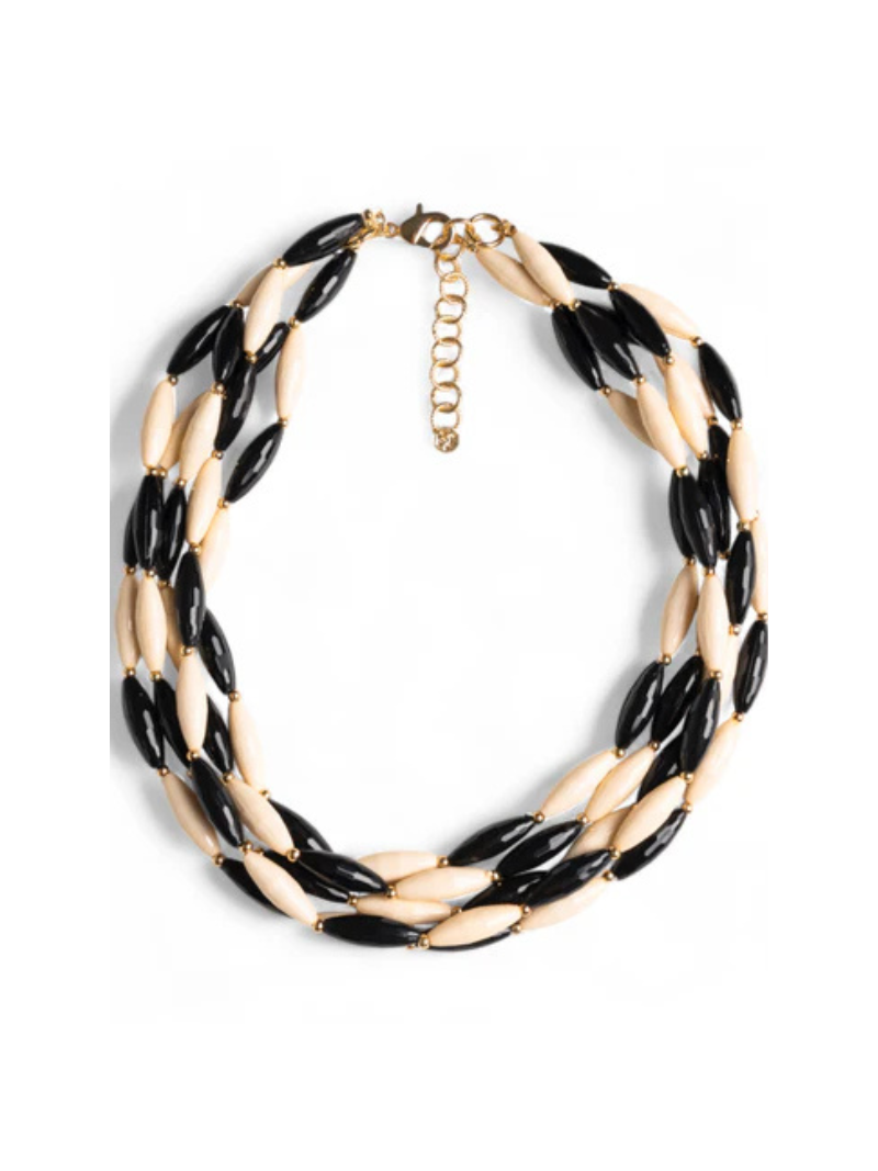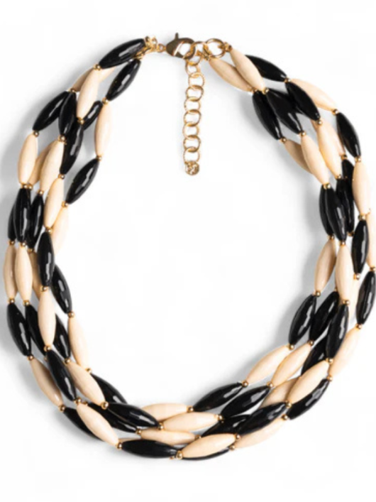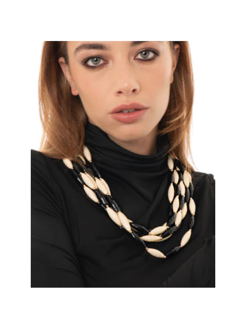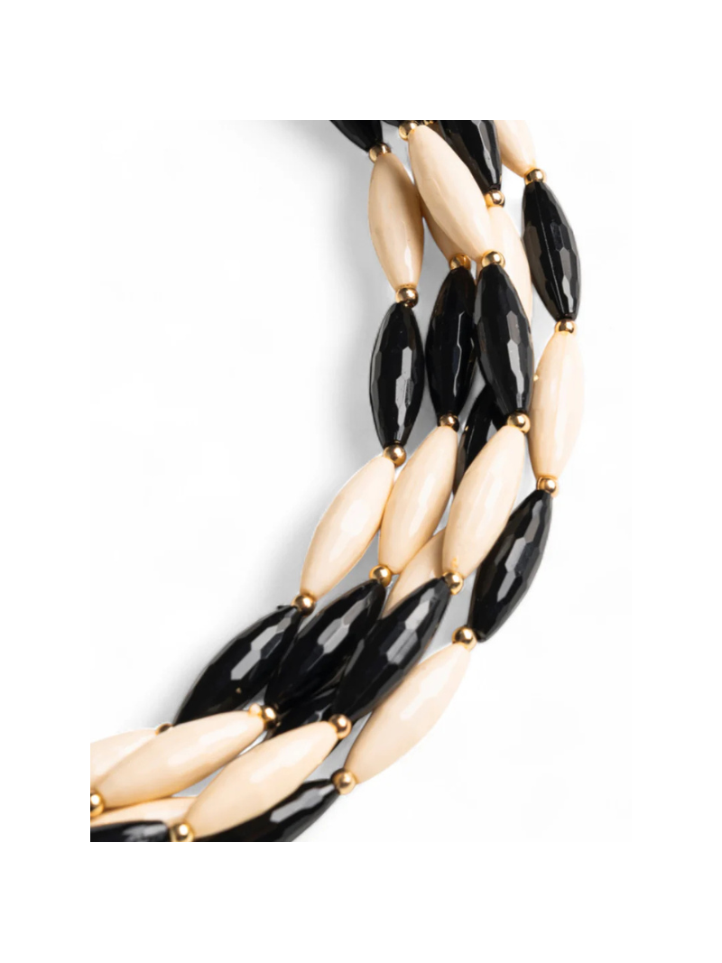 Collana girocollo multifilo con pietre in acrilico bianche e nere.