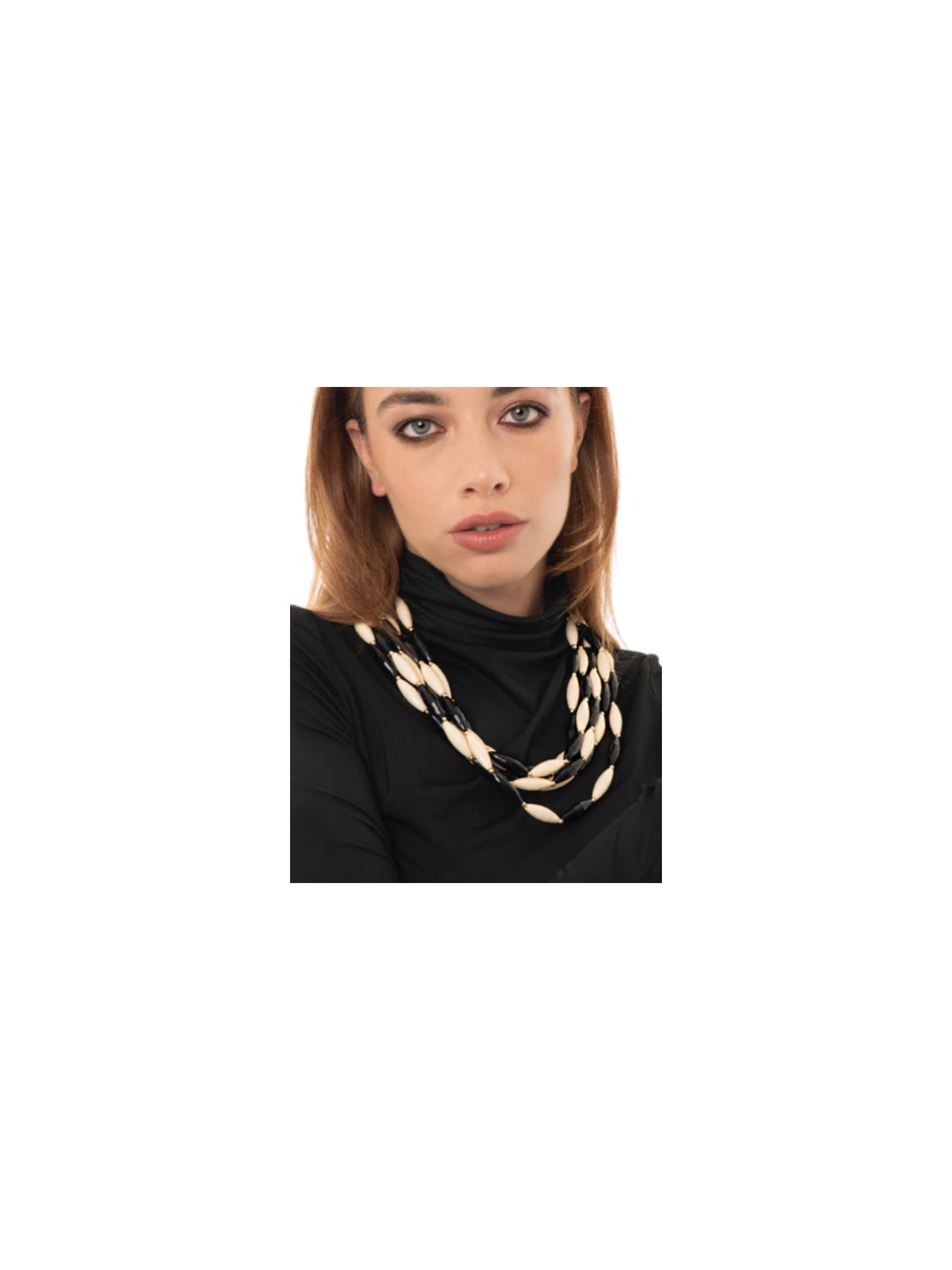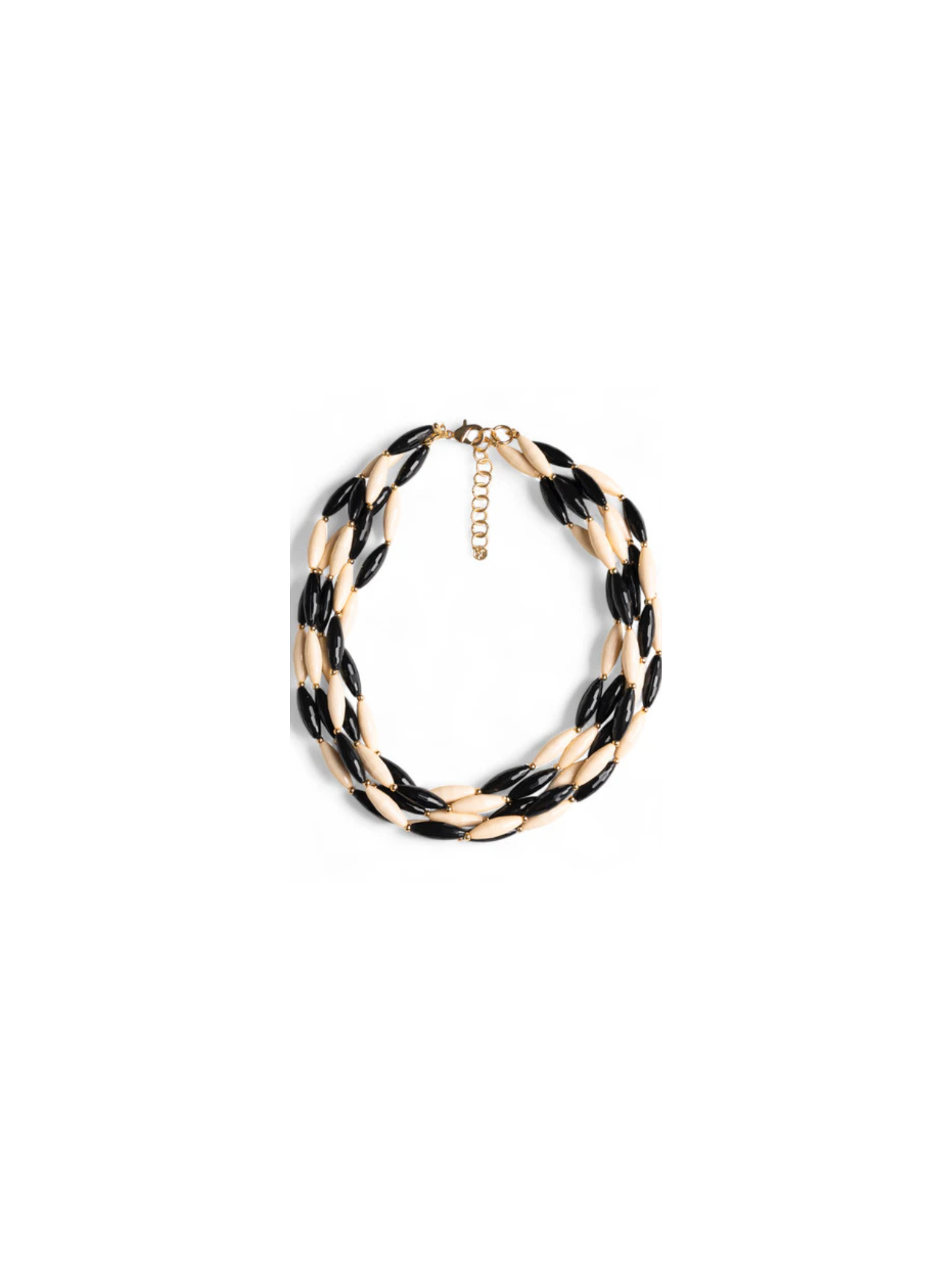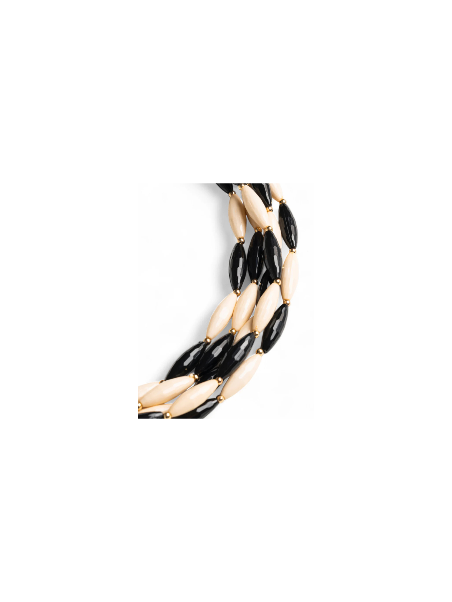 Collana girocollo multifilo con pietre in acrilico bianche e nere.
