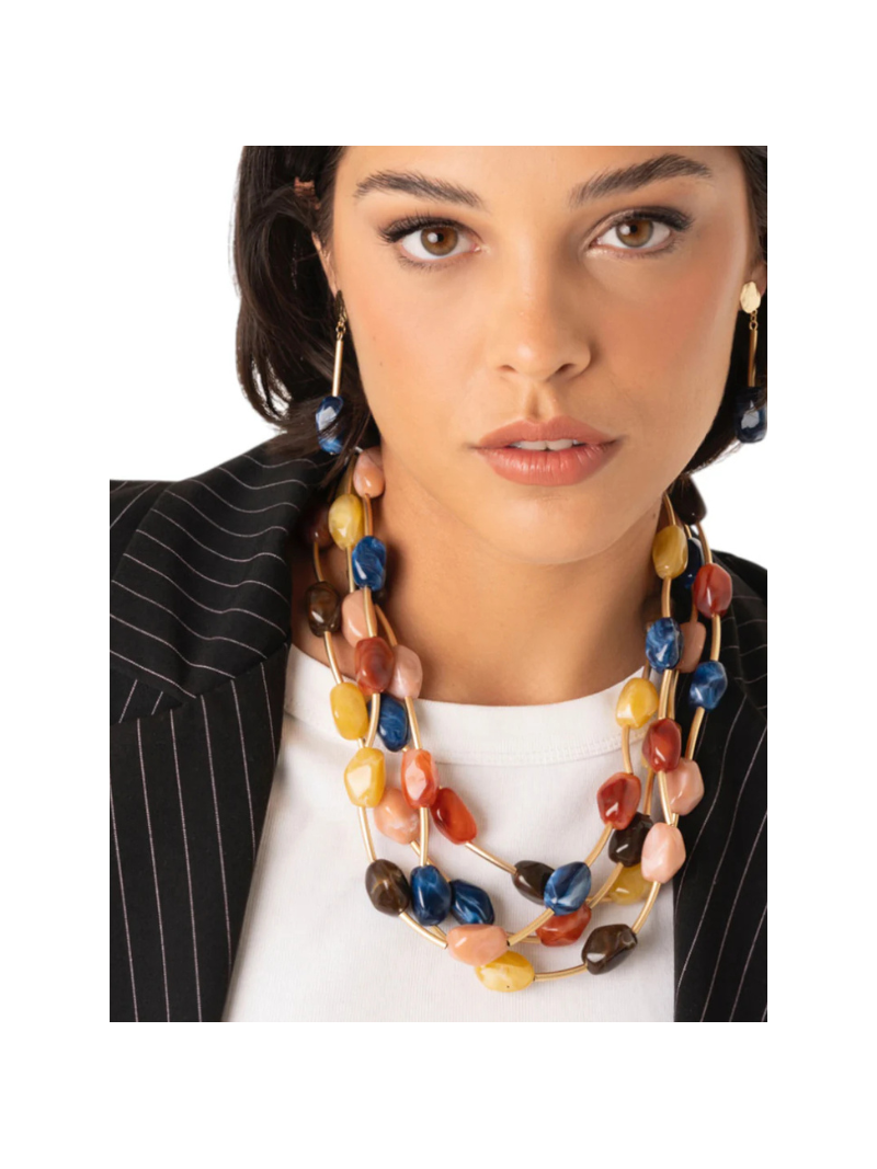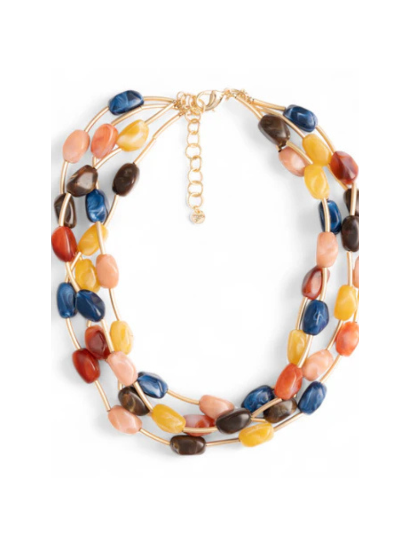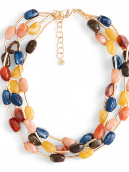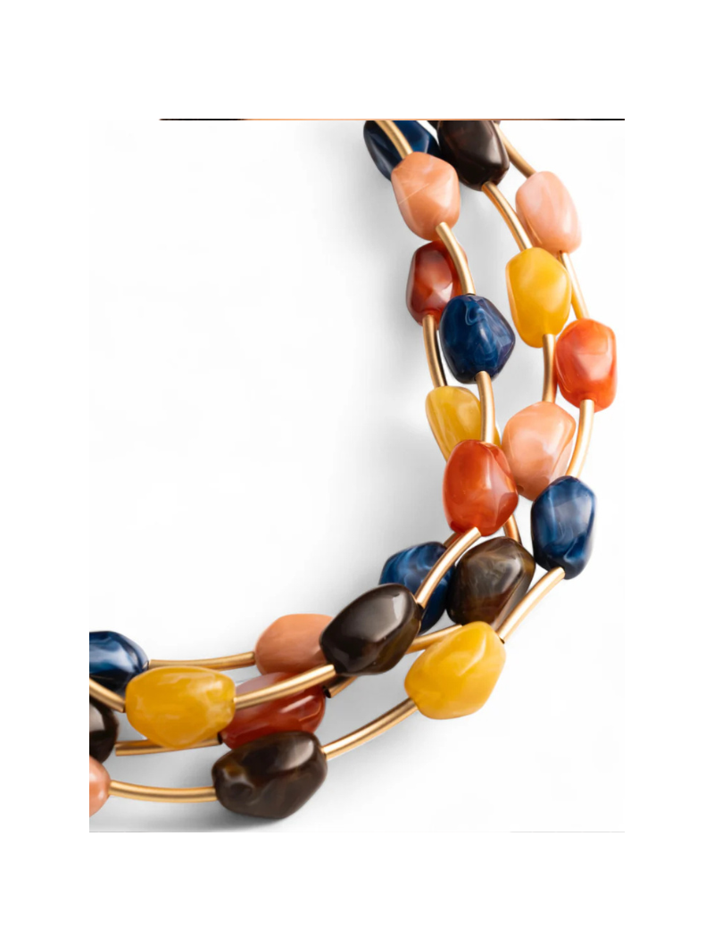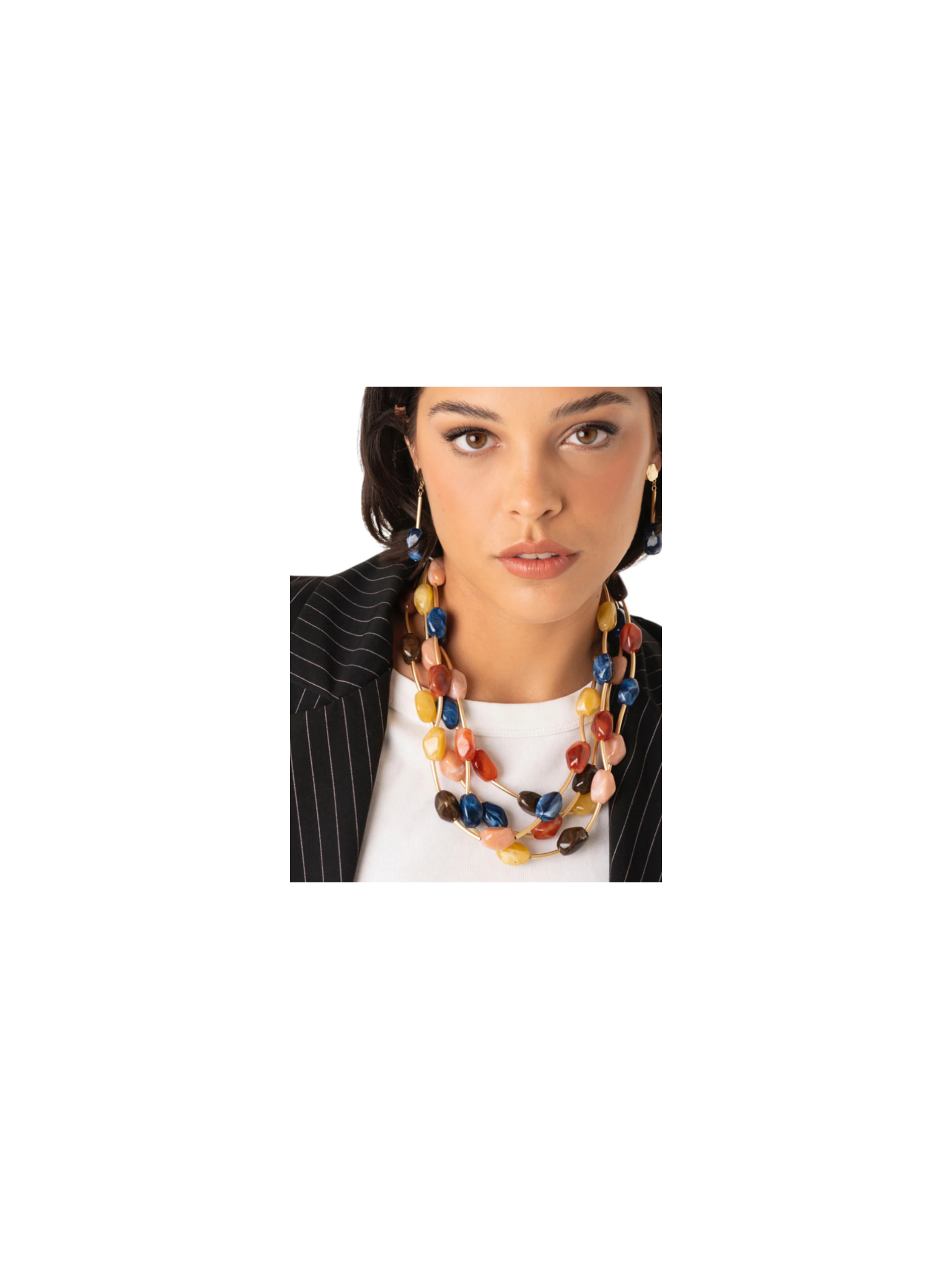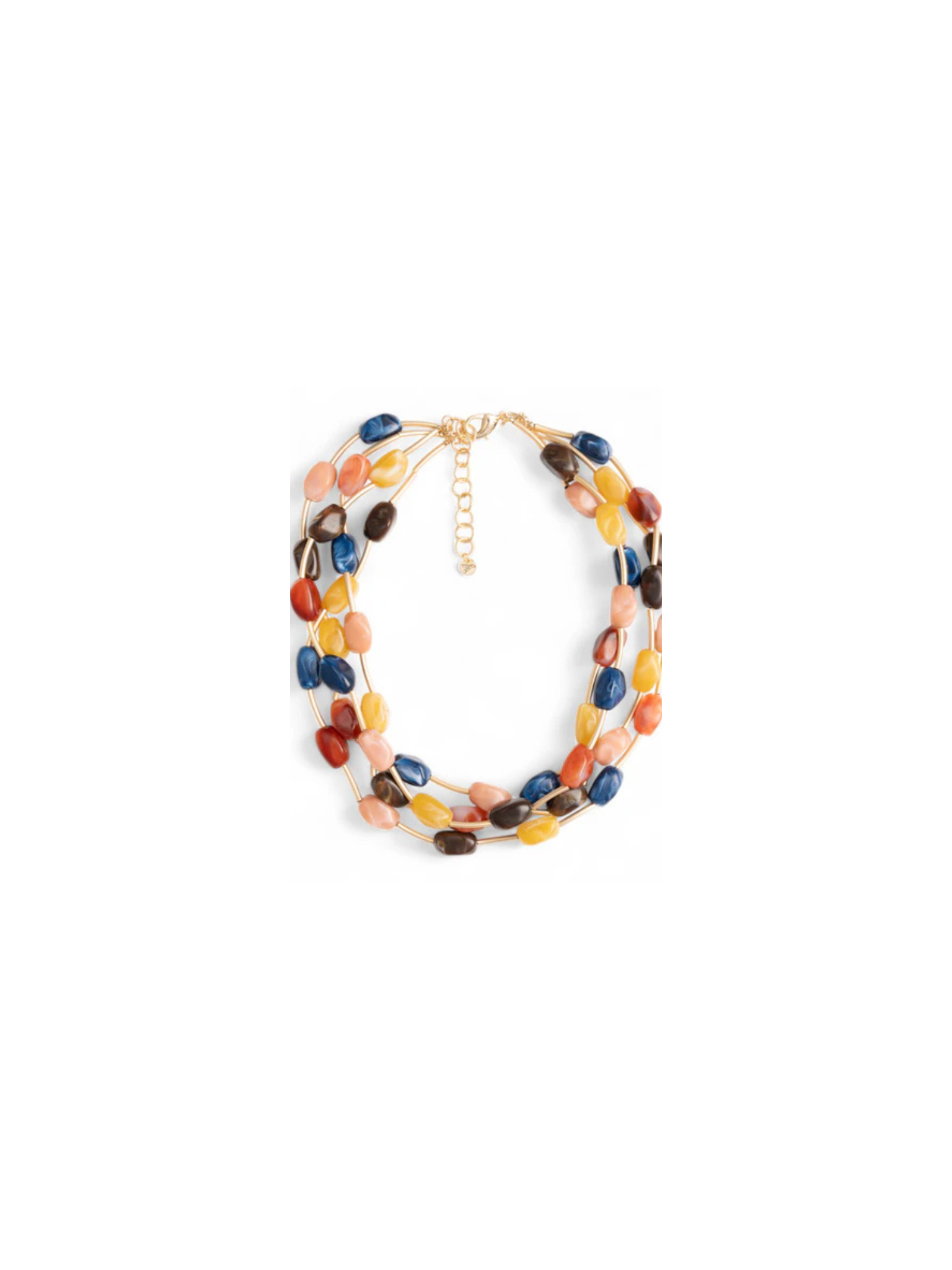 Collana girocollo multifilo con pietre in acrilico multicolore.
