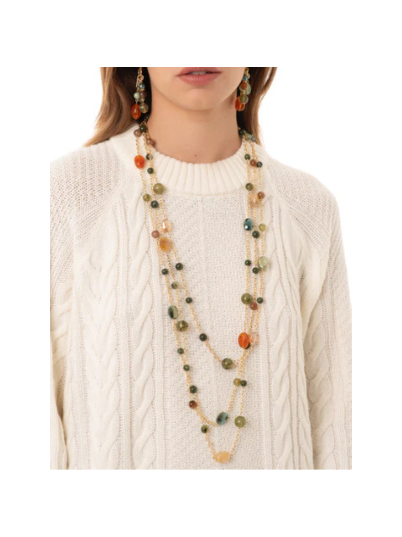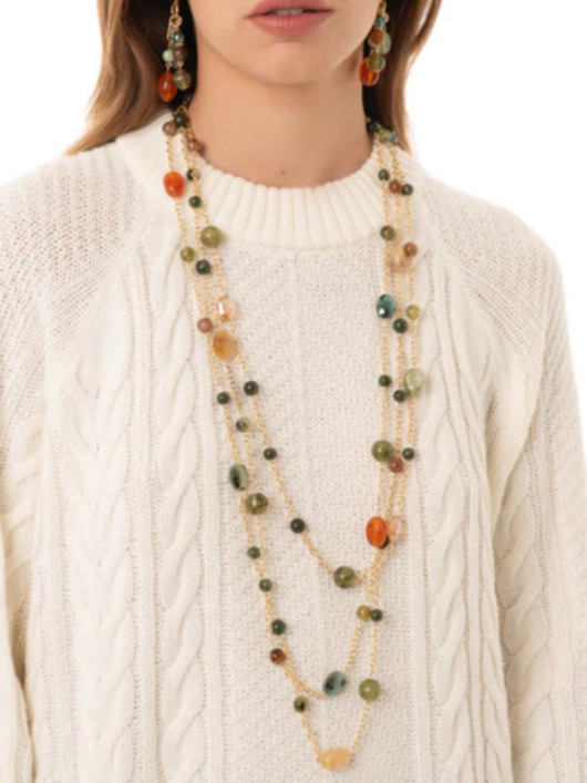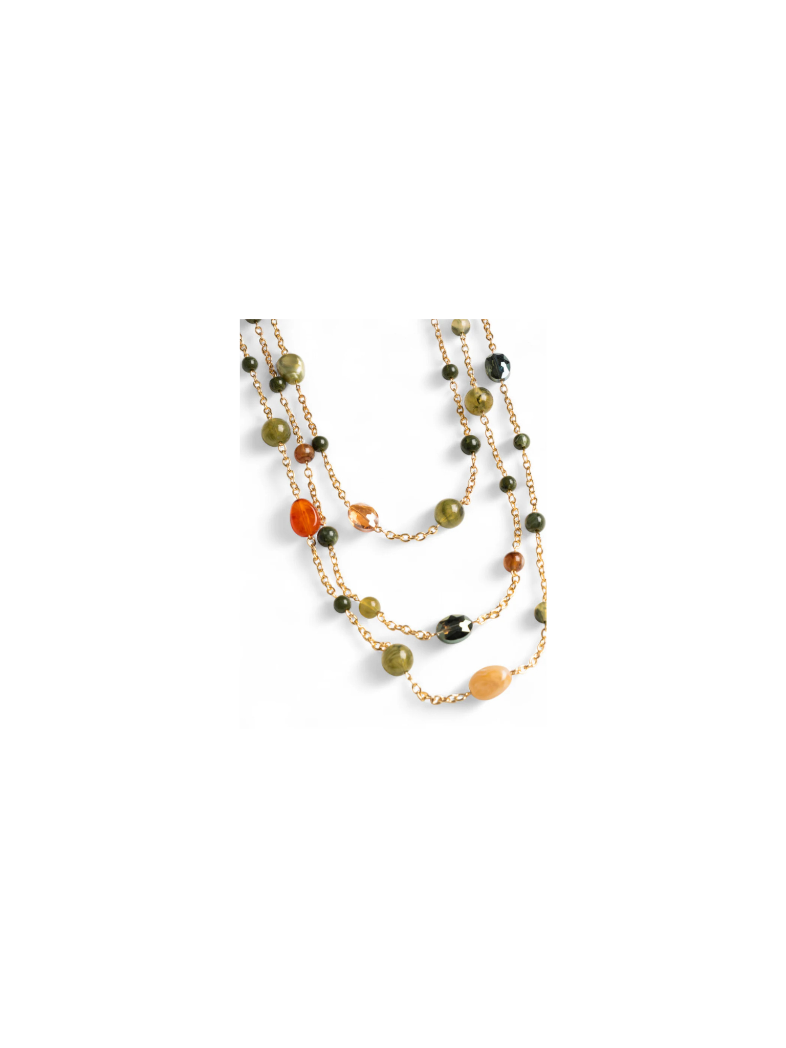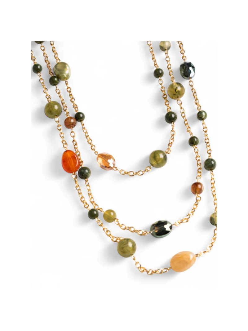 Collana lunga multifilo a catena con pietre in acrilico tono verde.