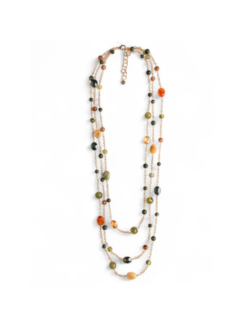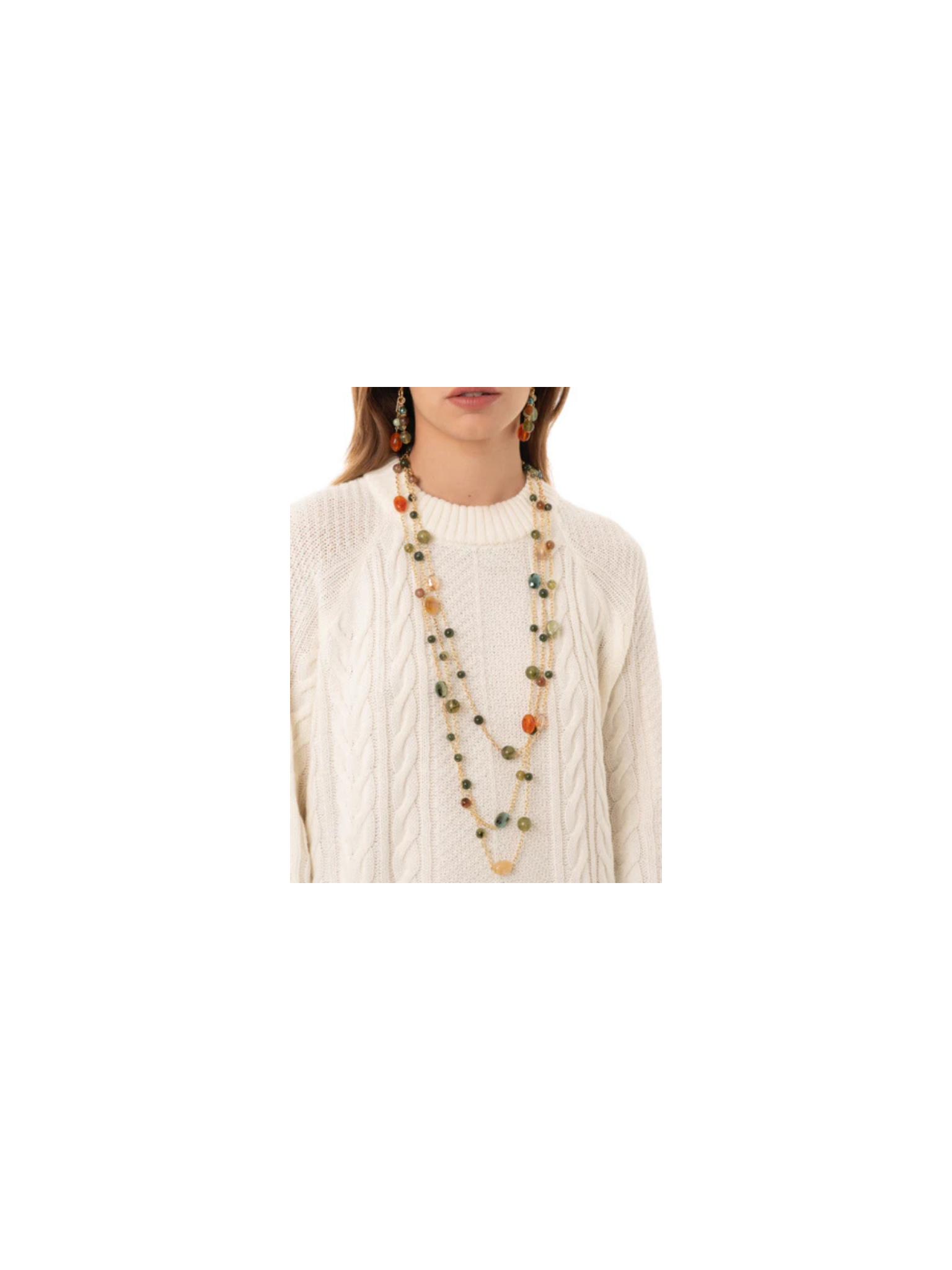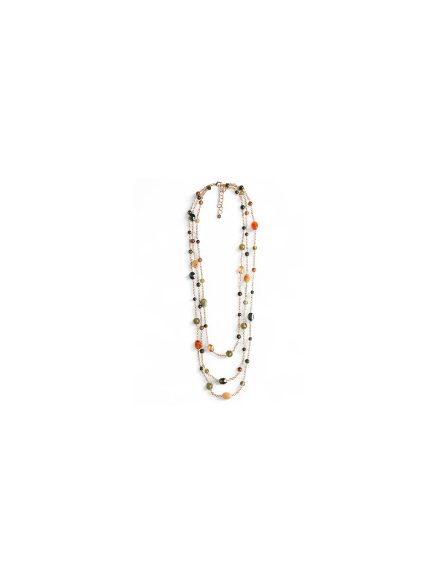 Collana lunga multifilo a catena con pietre in acrilico tono verde.