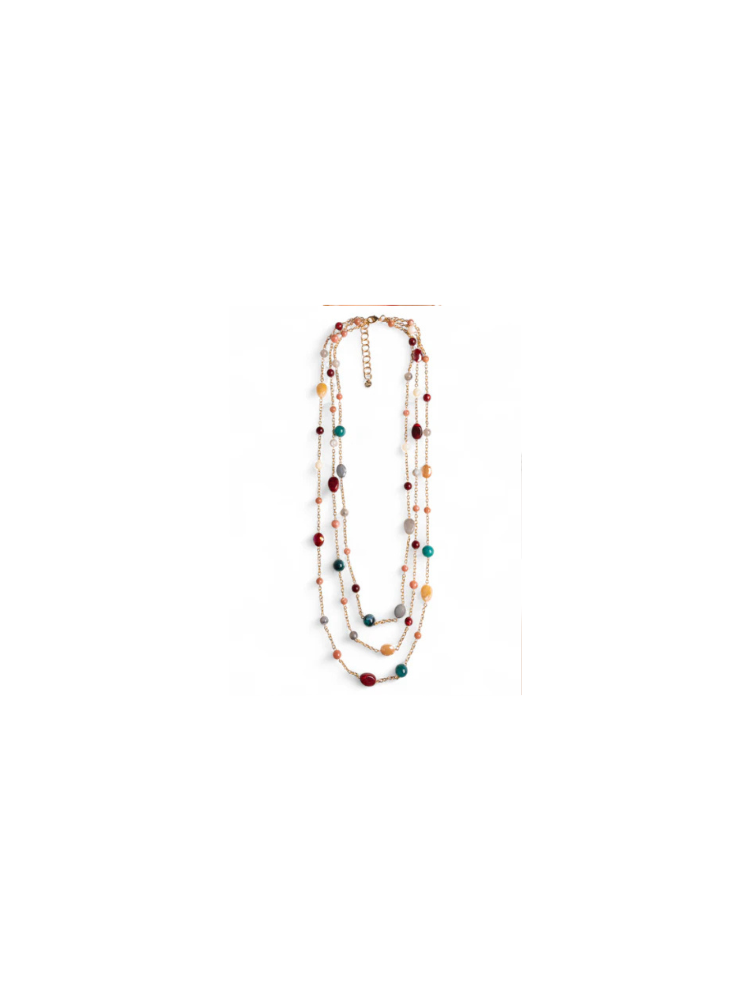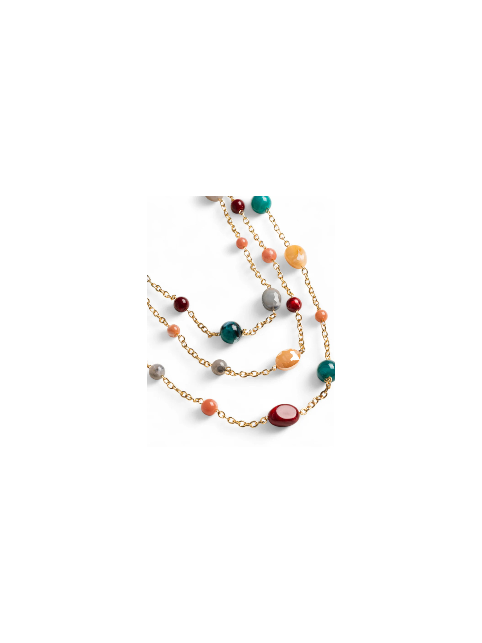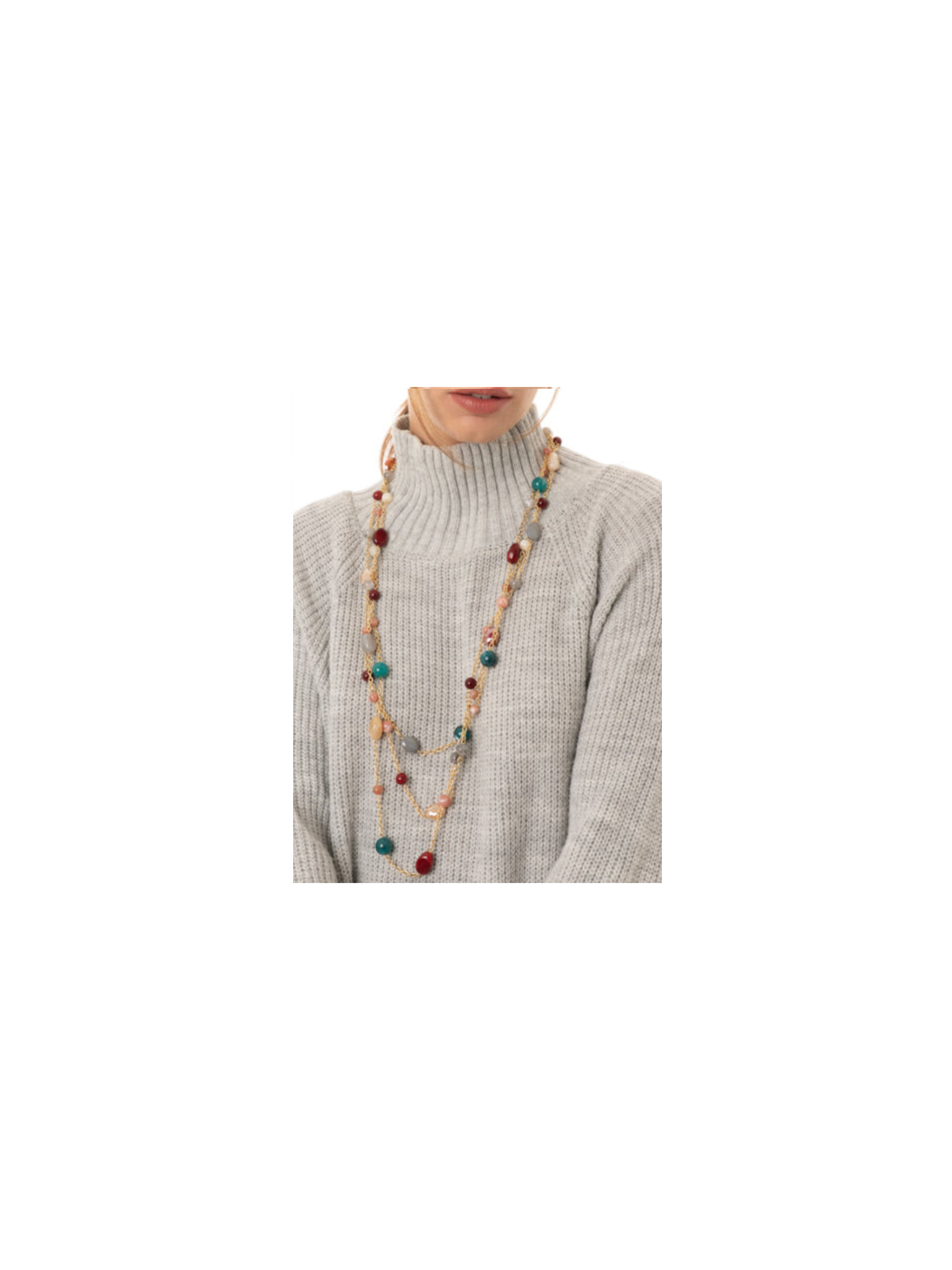 Collana lunga multifilo a catena con pietre in acrilico tono blu.