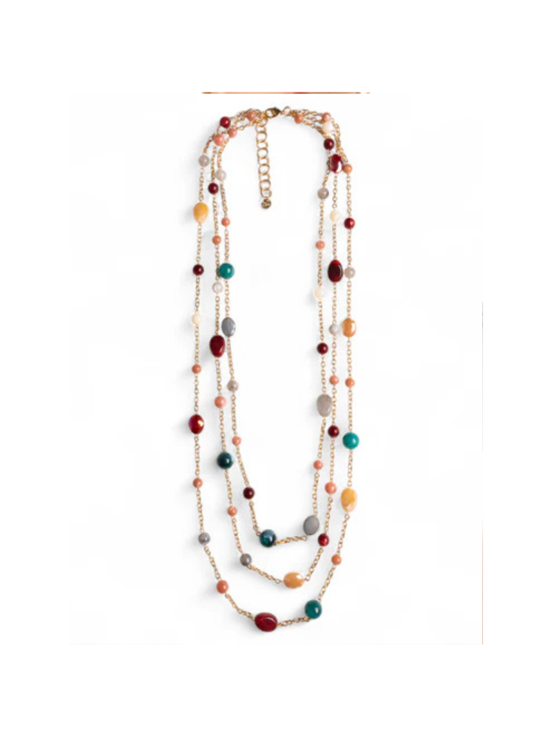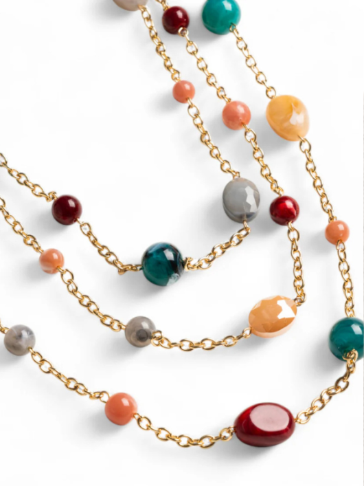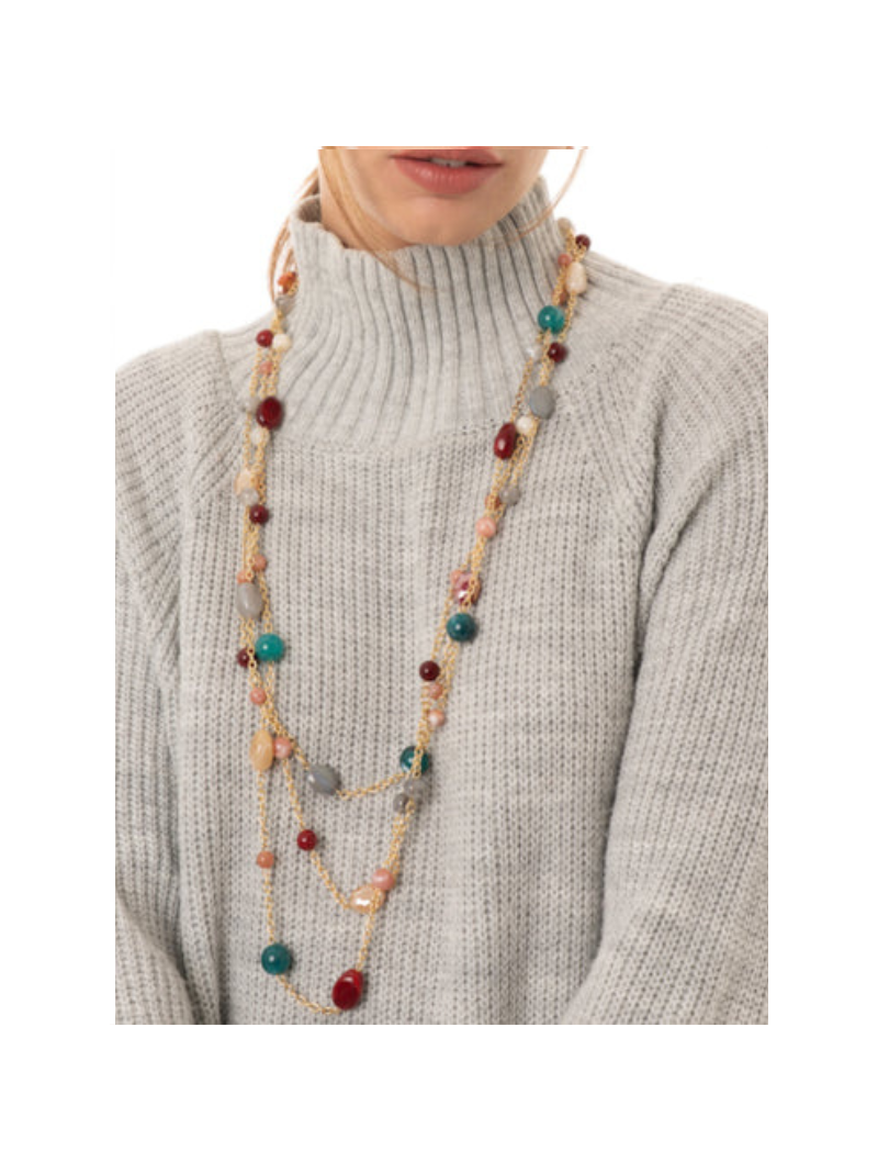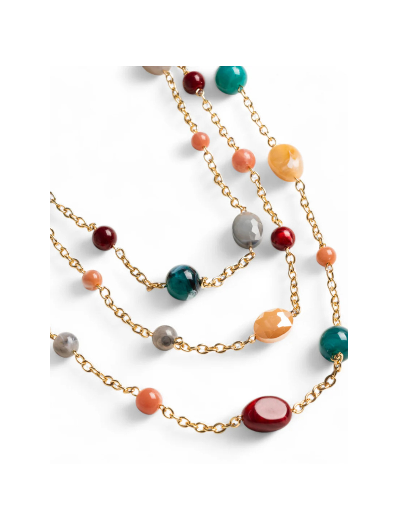 Collana lunga multifilo a catena con pietre in acrilico tono blu.