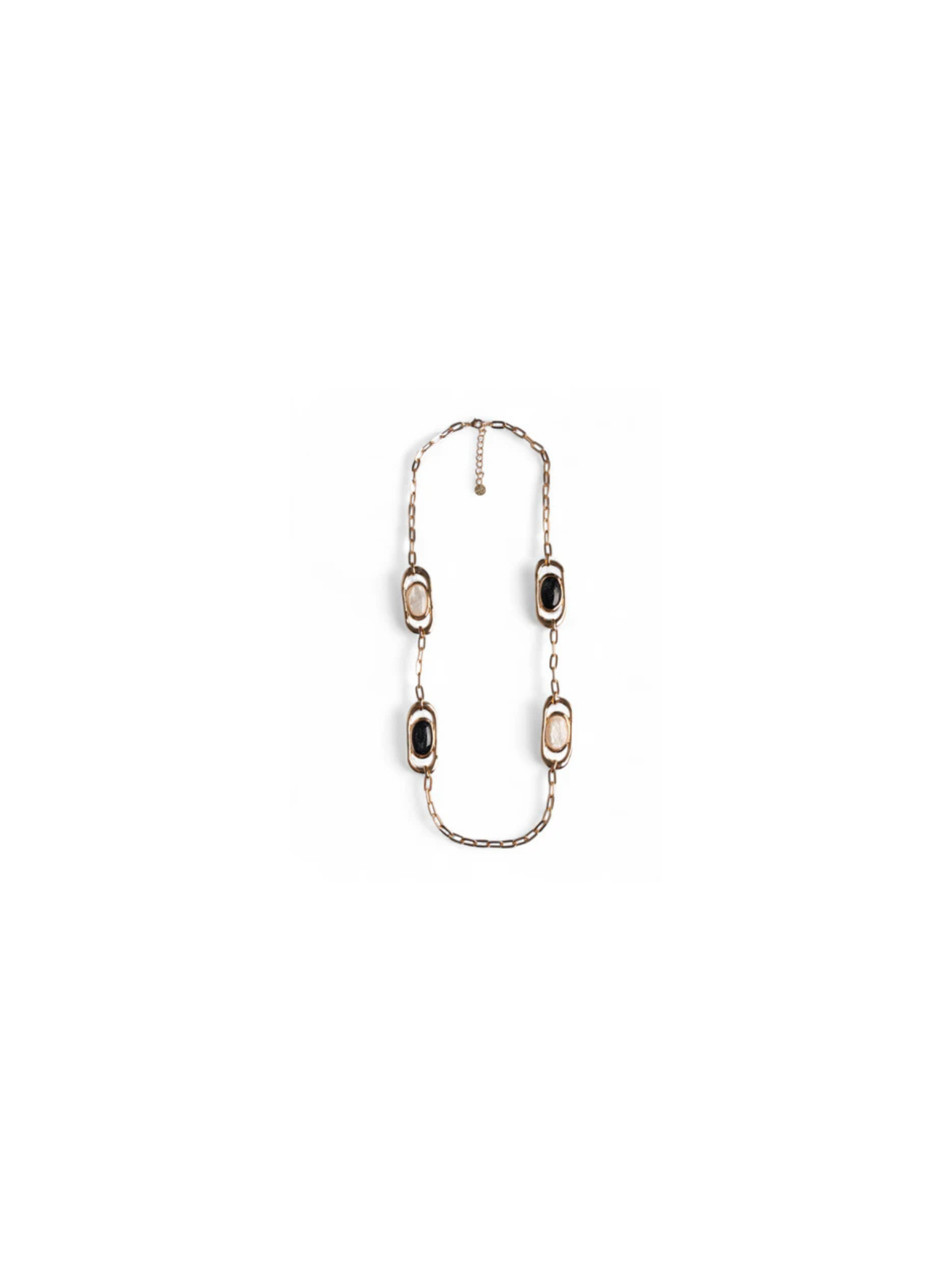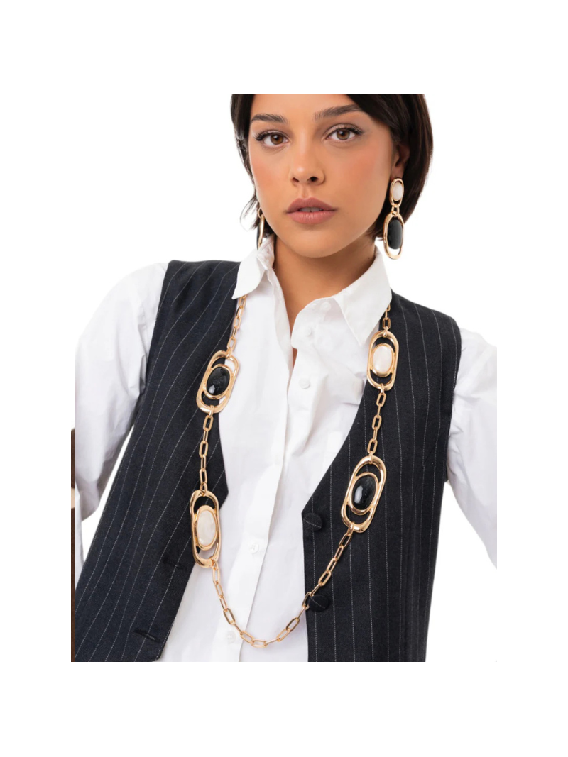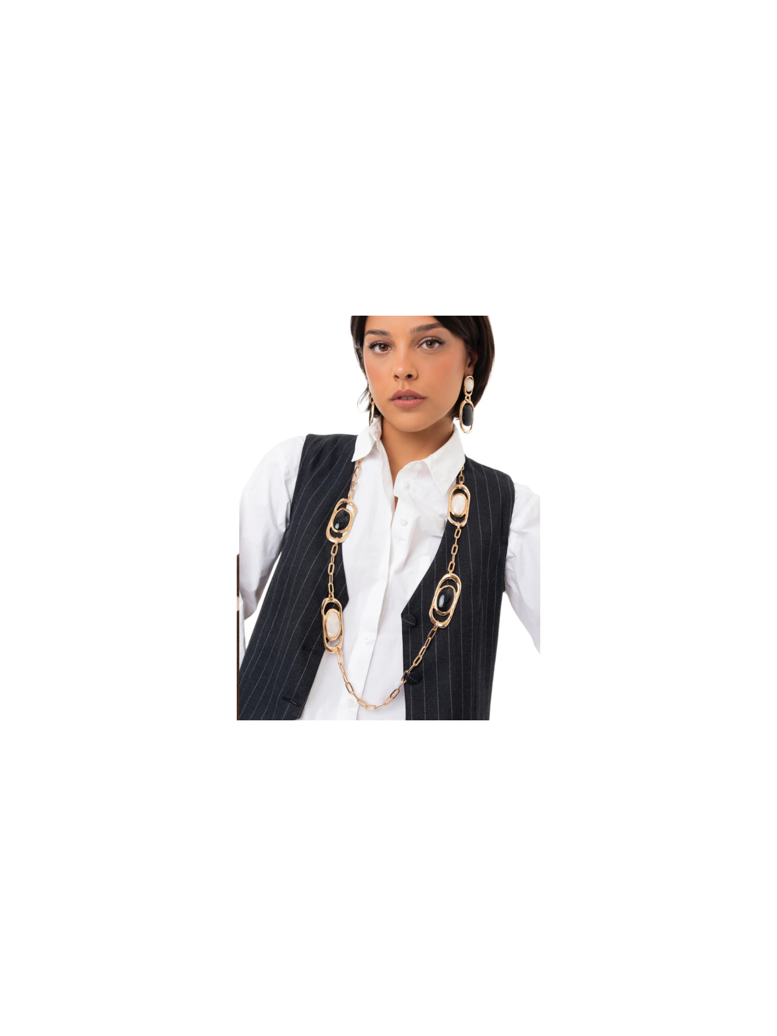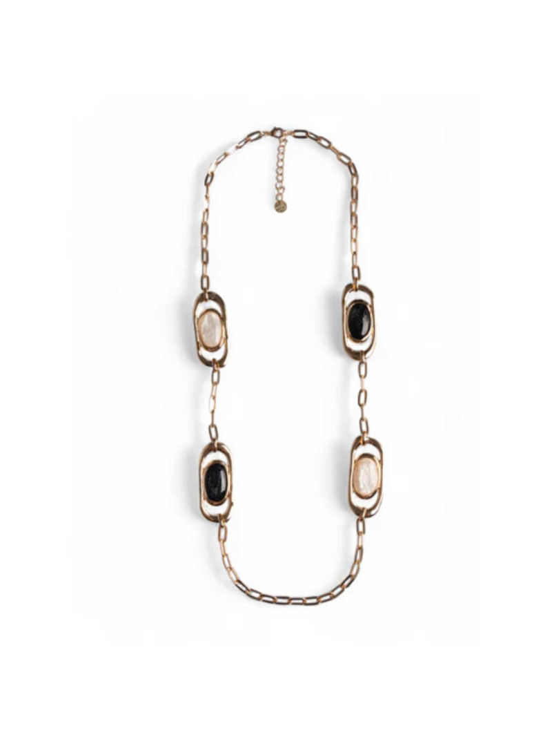 Collana lunga a catena con inserti ovali in acrilico bianco e nero.
