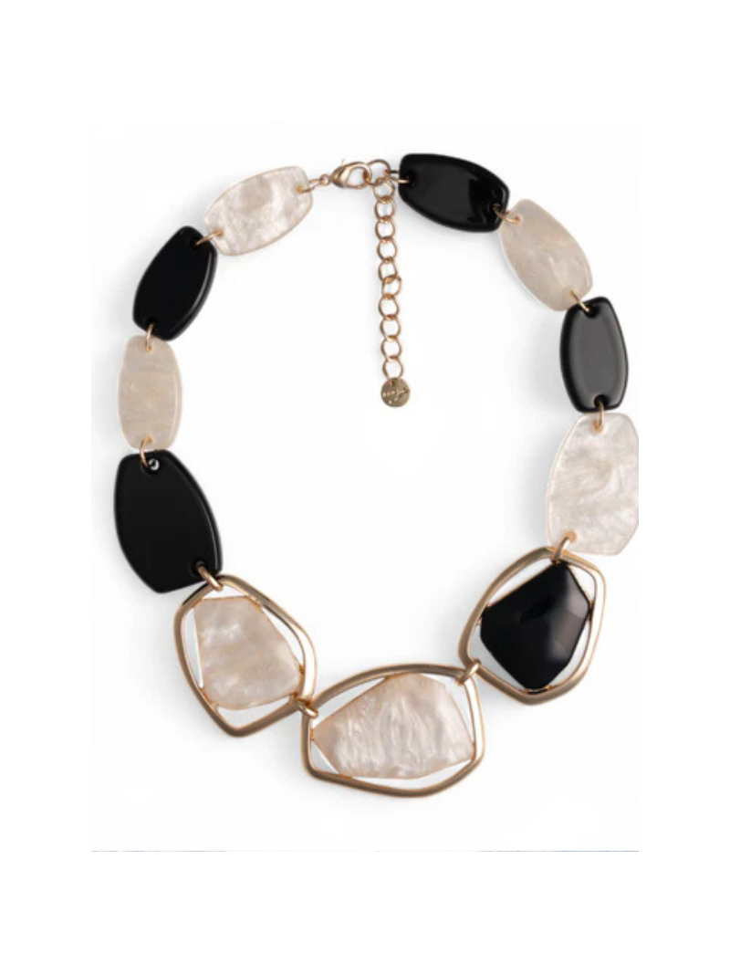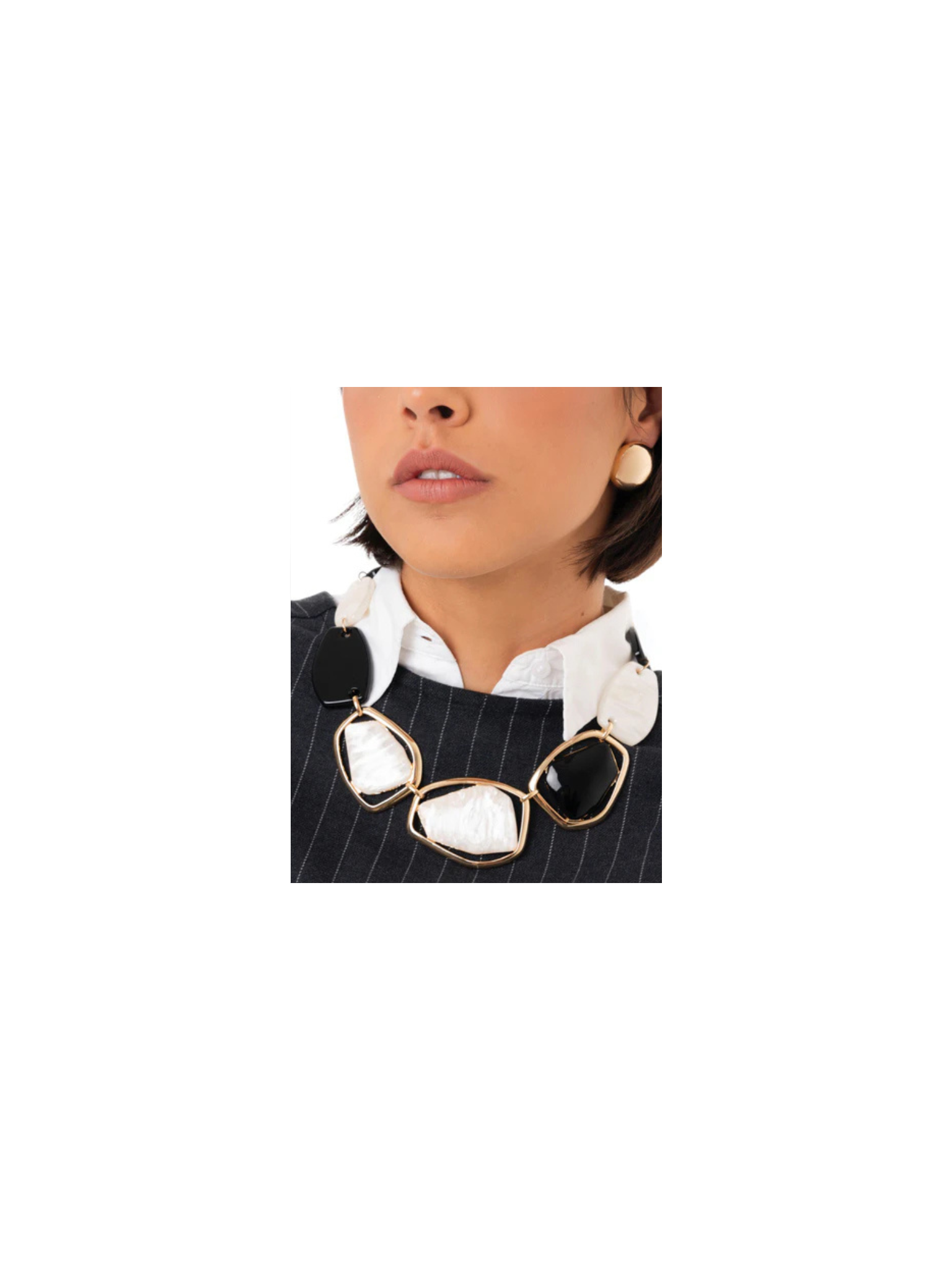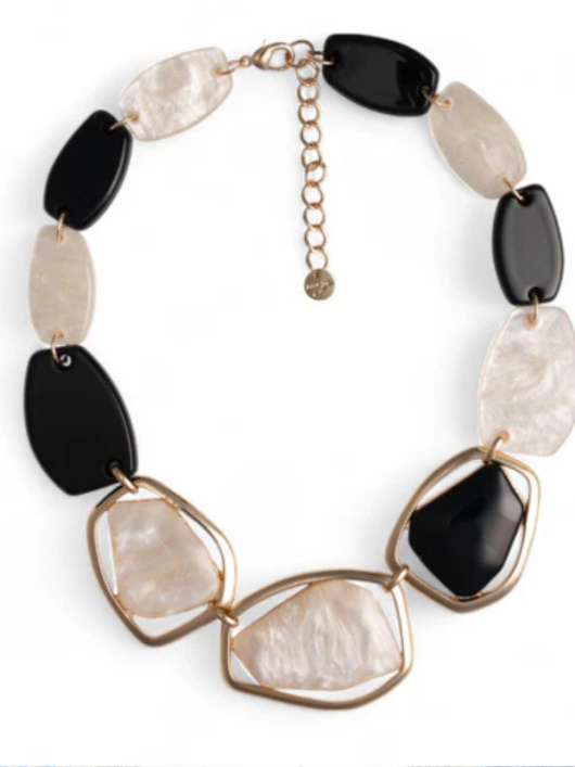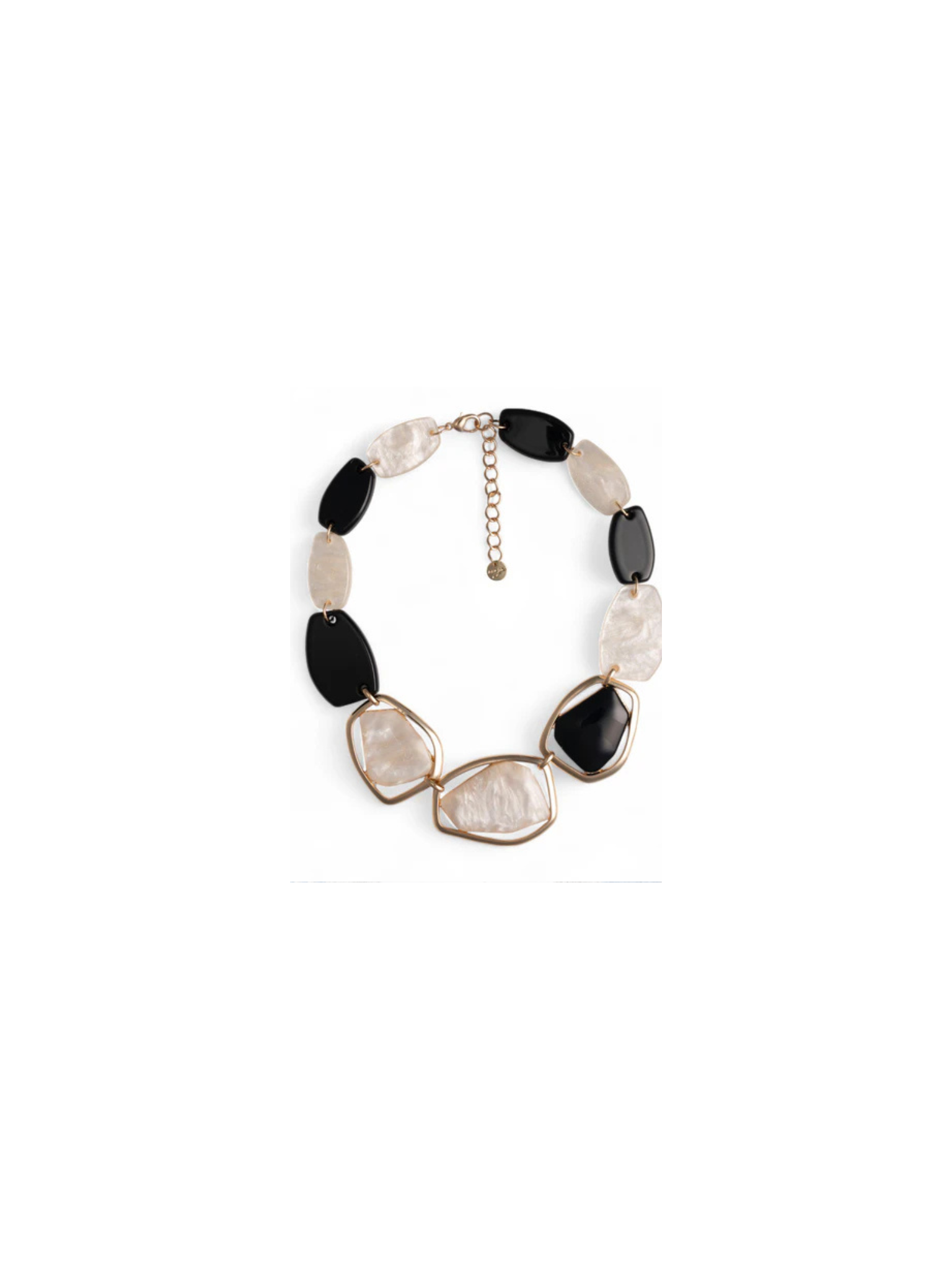 Collana girocollo a catena con inserti in acrilico animalier tono blu e nero.