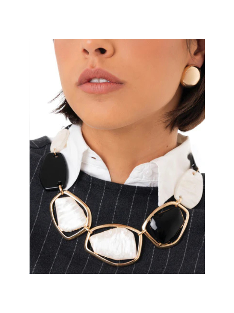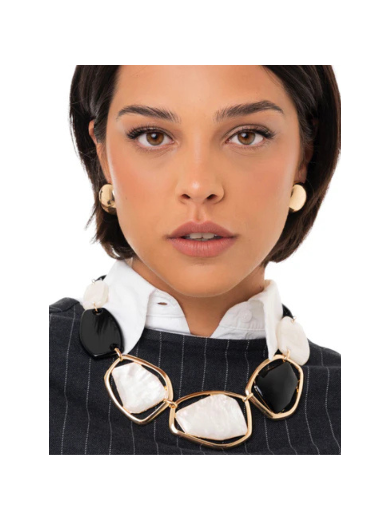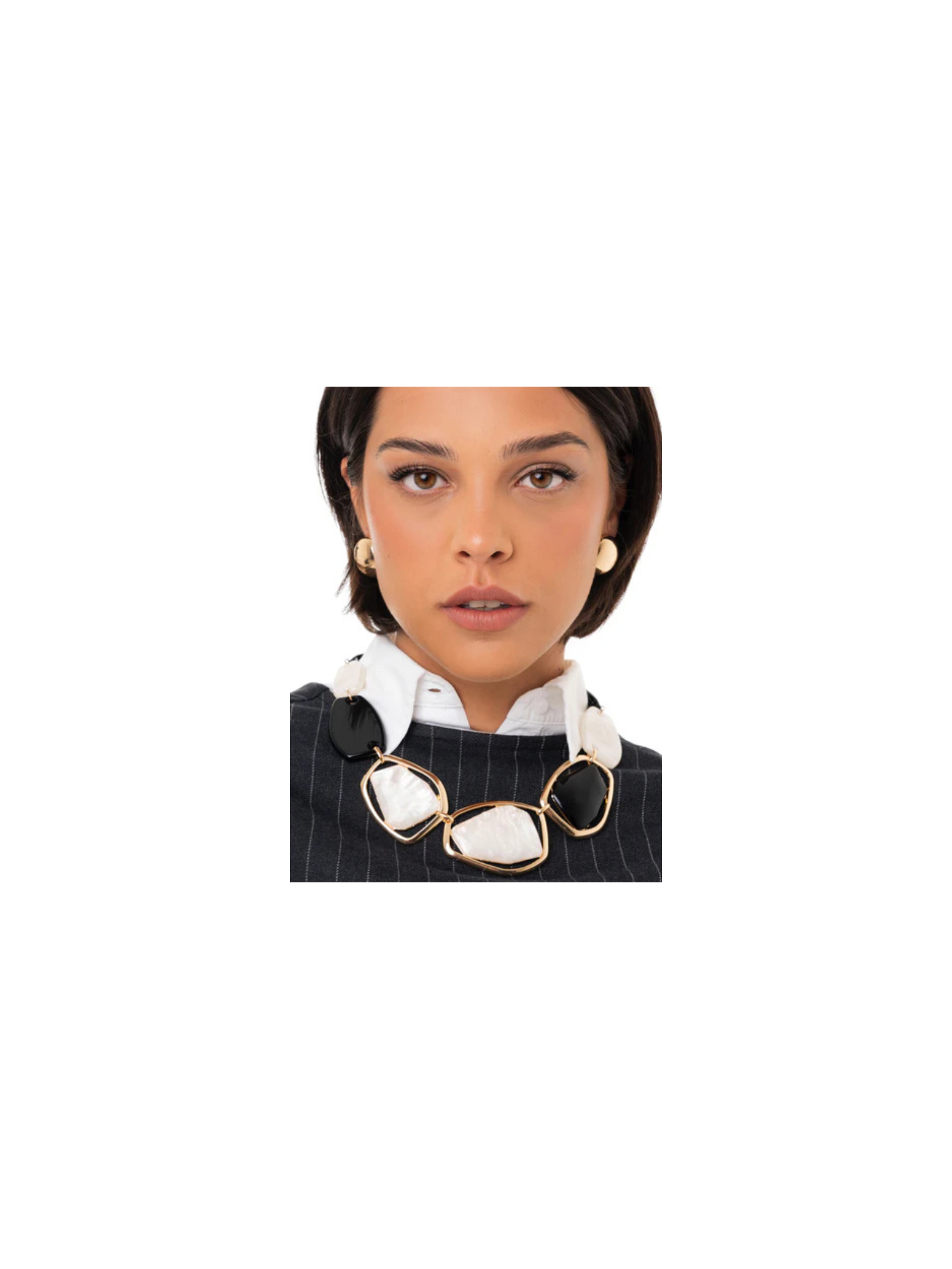 Collana girocollo a catena con inserti in acrilico animalier tono blu e nero.