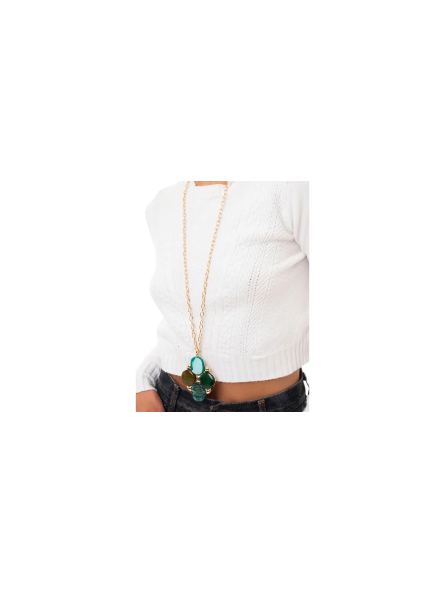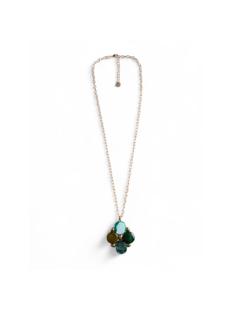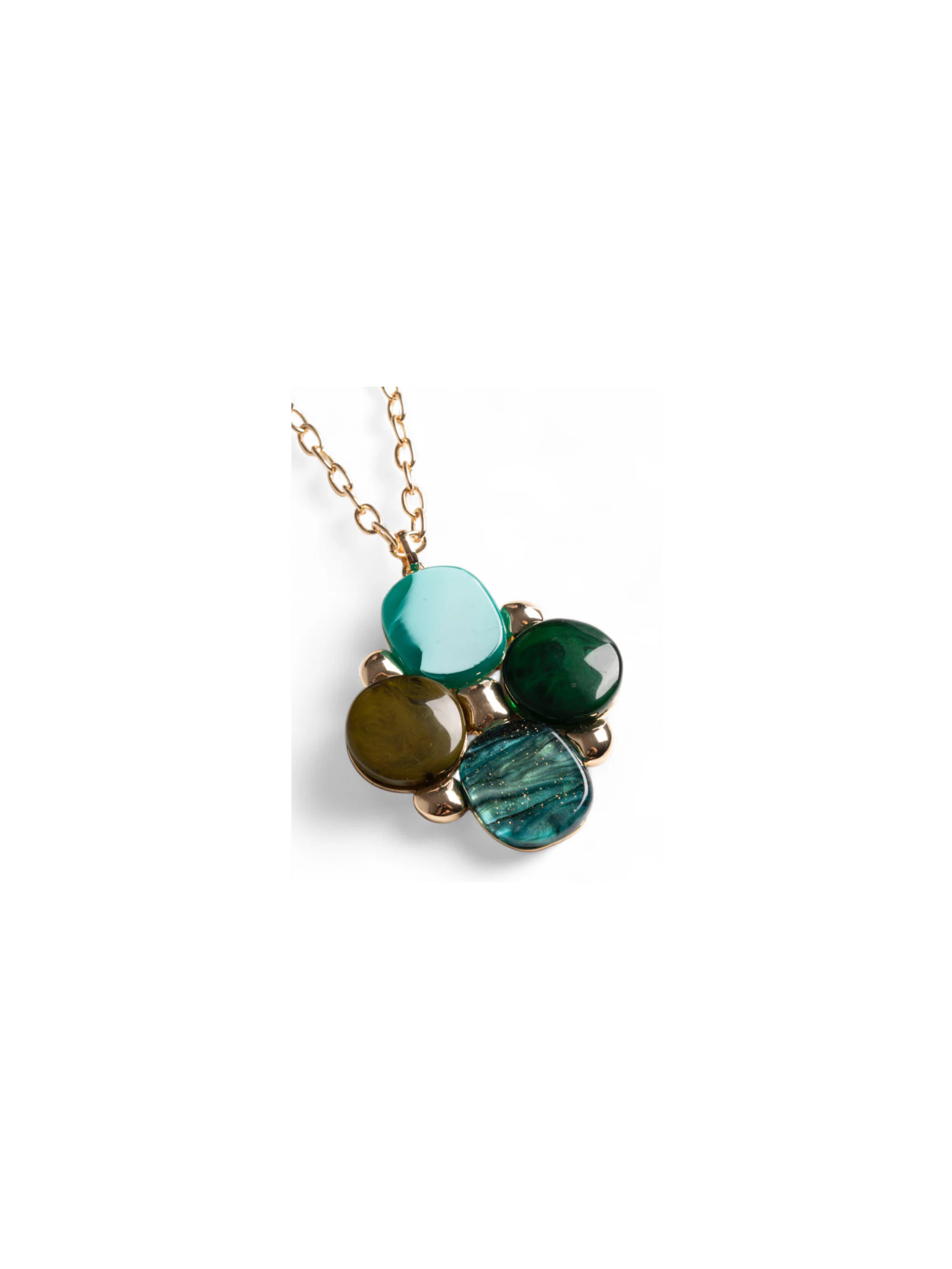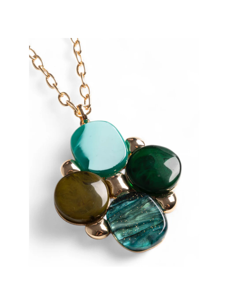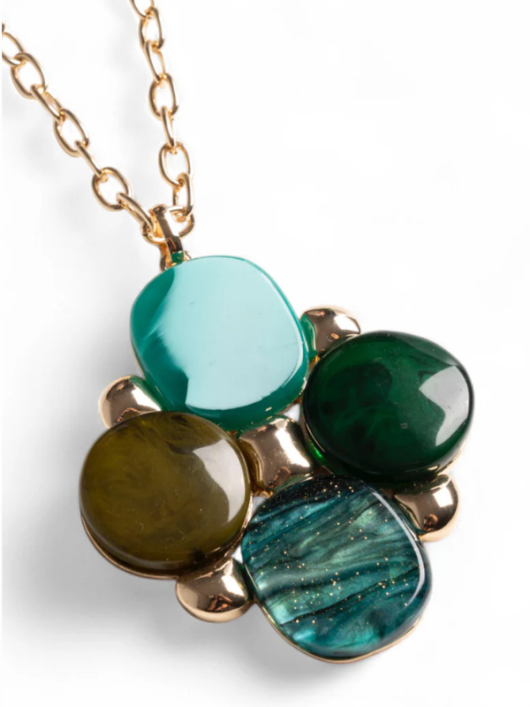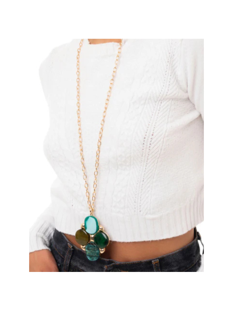 Collana lunga a catena con pendentein acrilico e resina verde.
