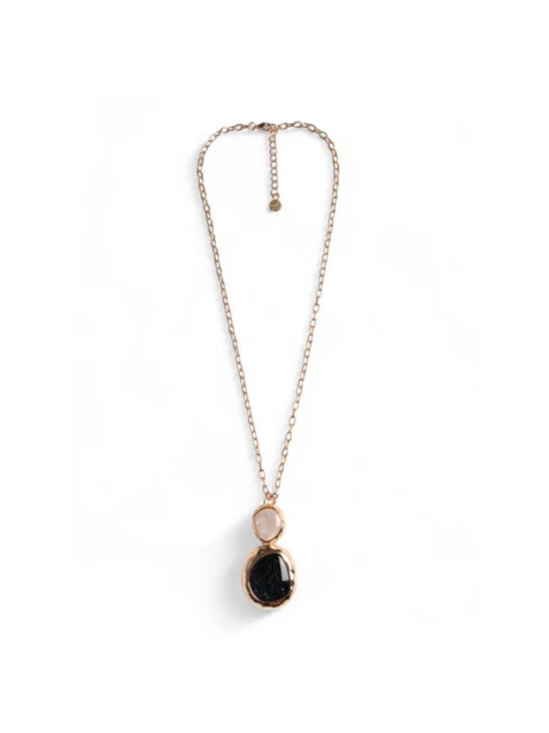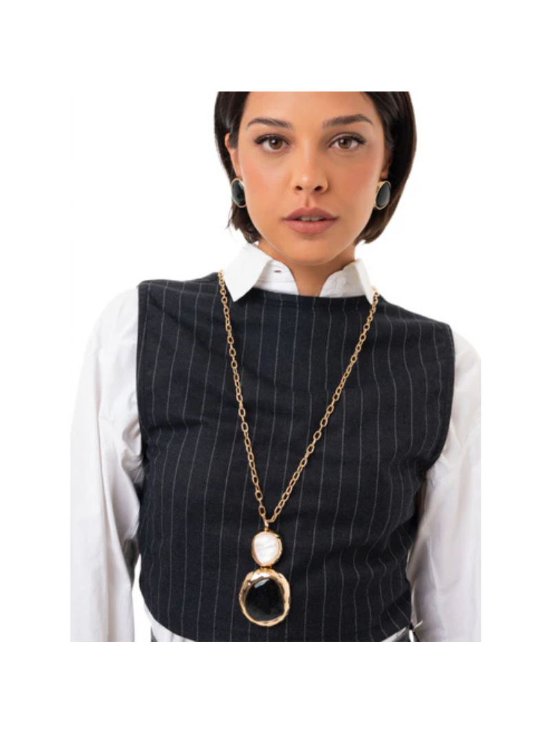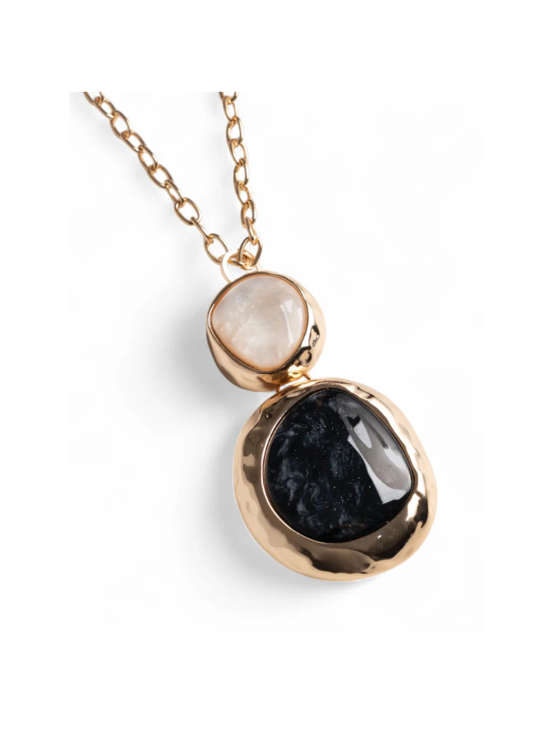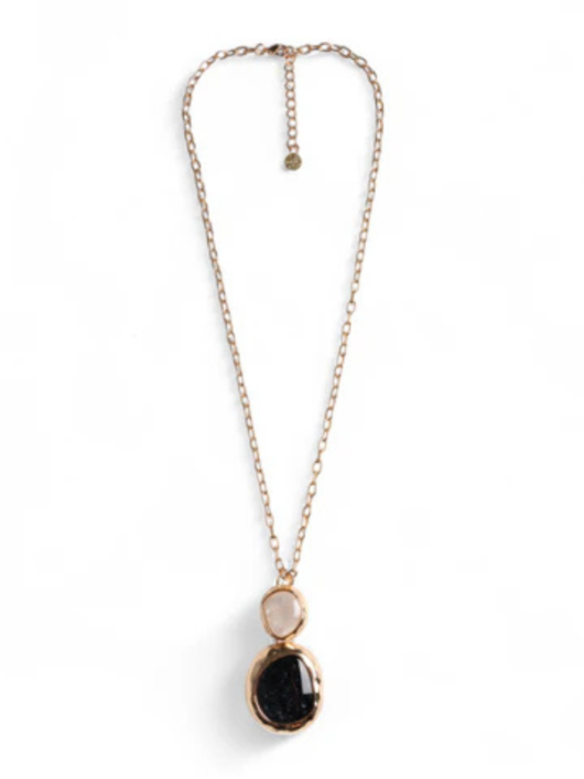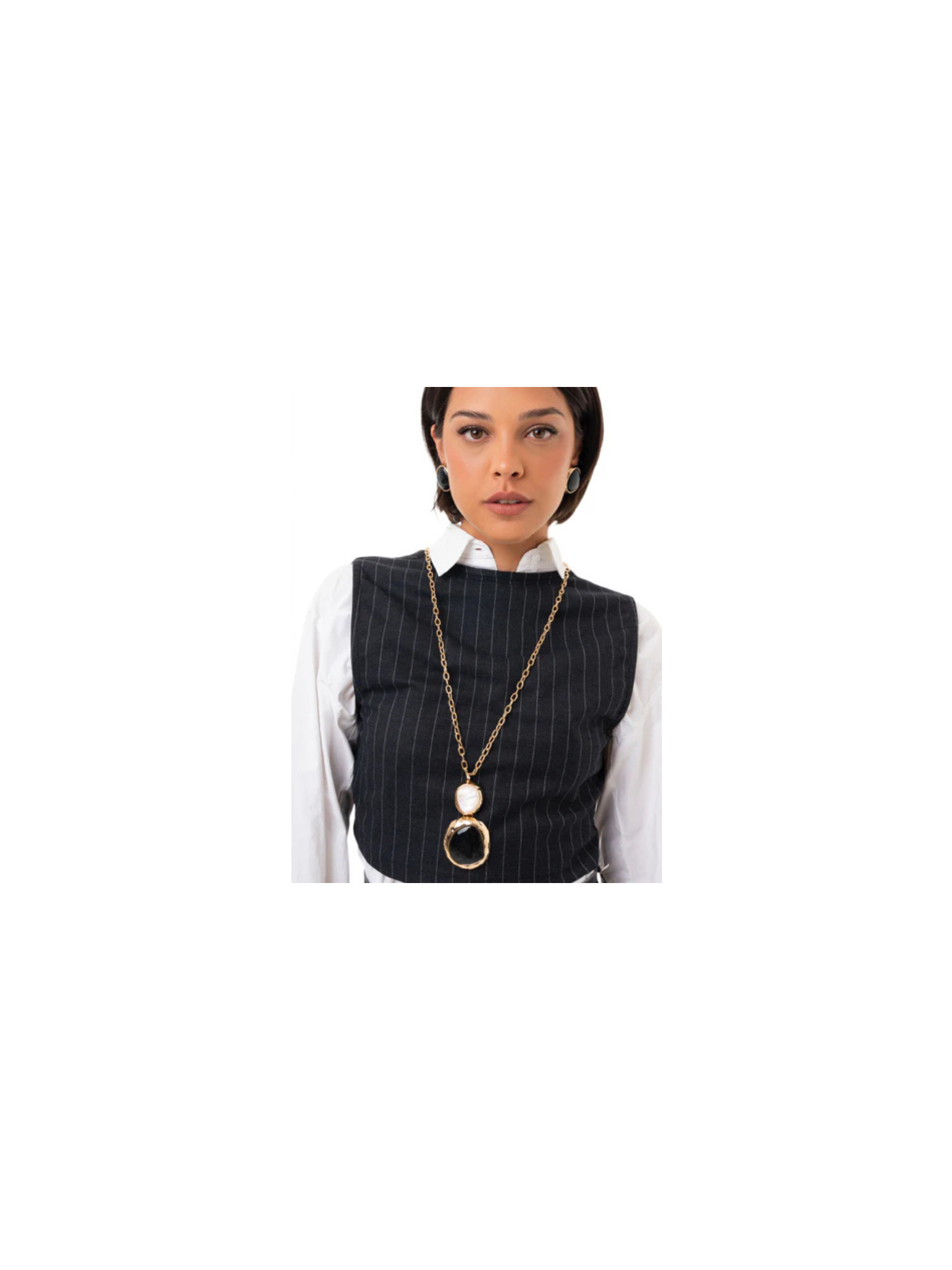 Collana lunga a catena con pendente con doppia pietra in acrilico.