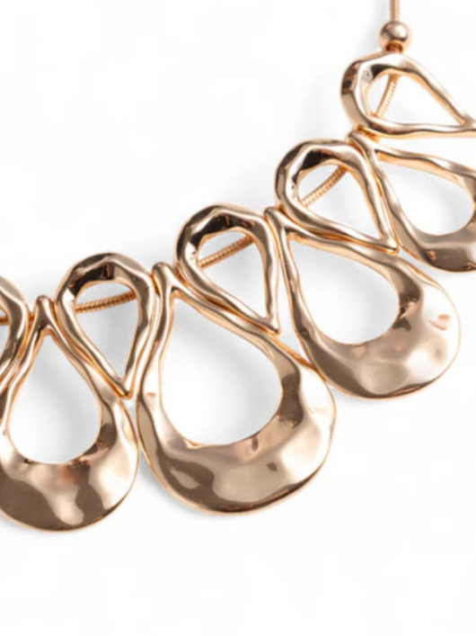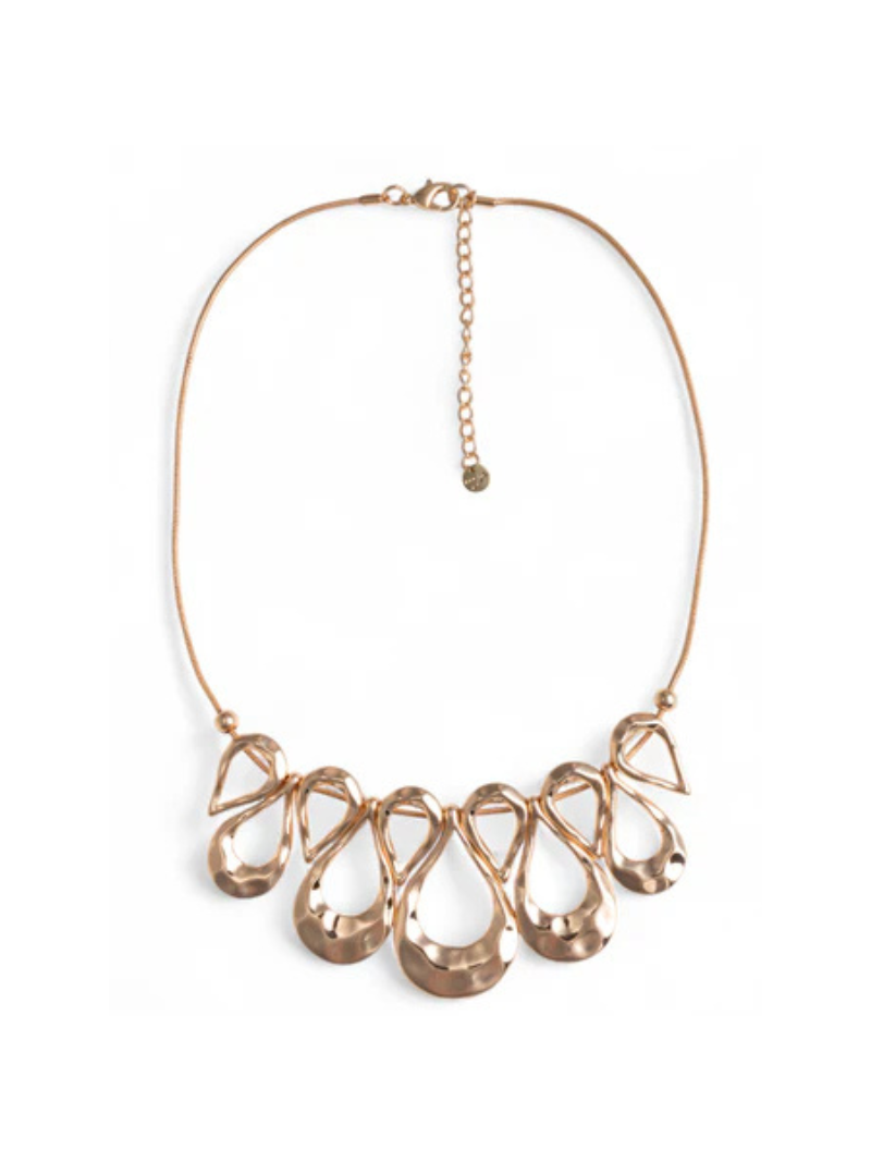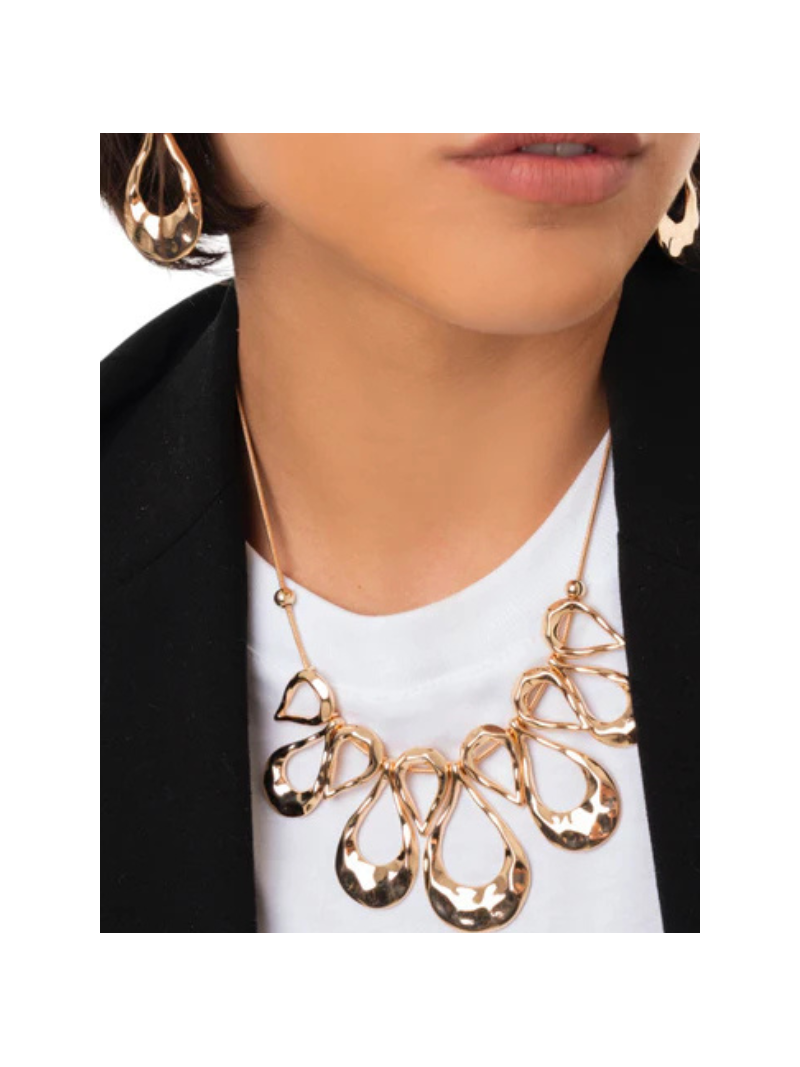 Collana girocollo con catena sottile e pendente in metallo martellato.