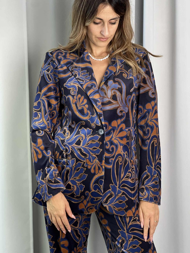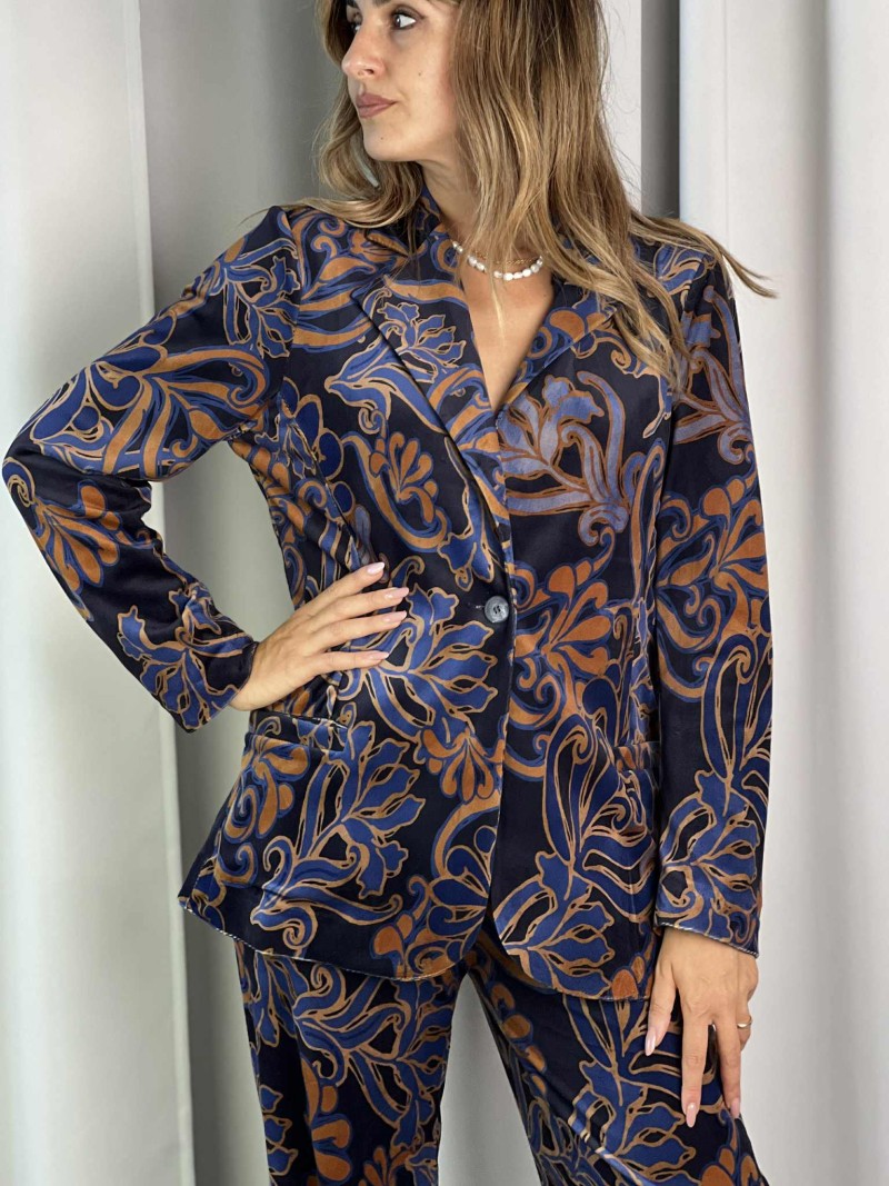 Completo 2 pezzi Club Voltaire con stampa floreale composto da giacca e pantalone.