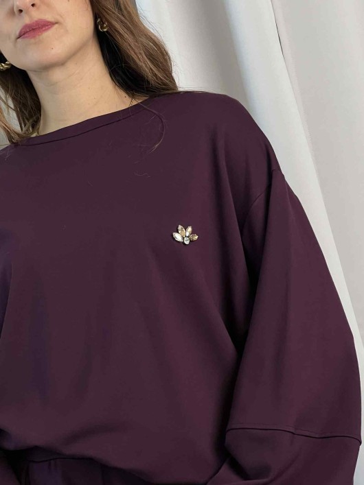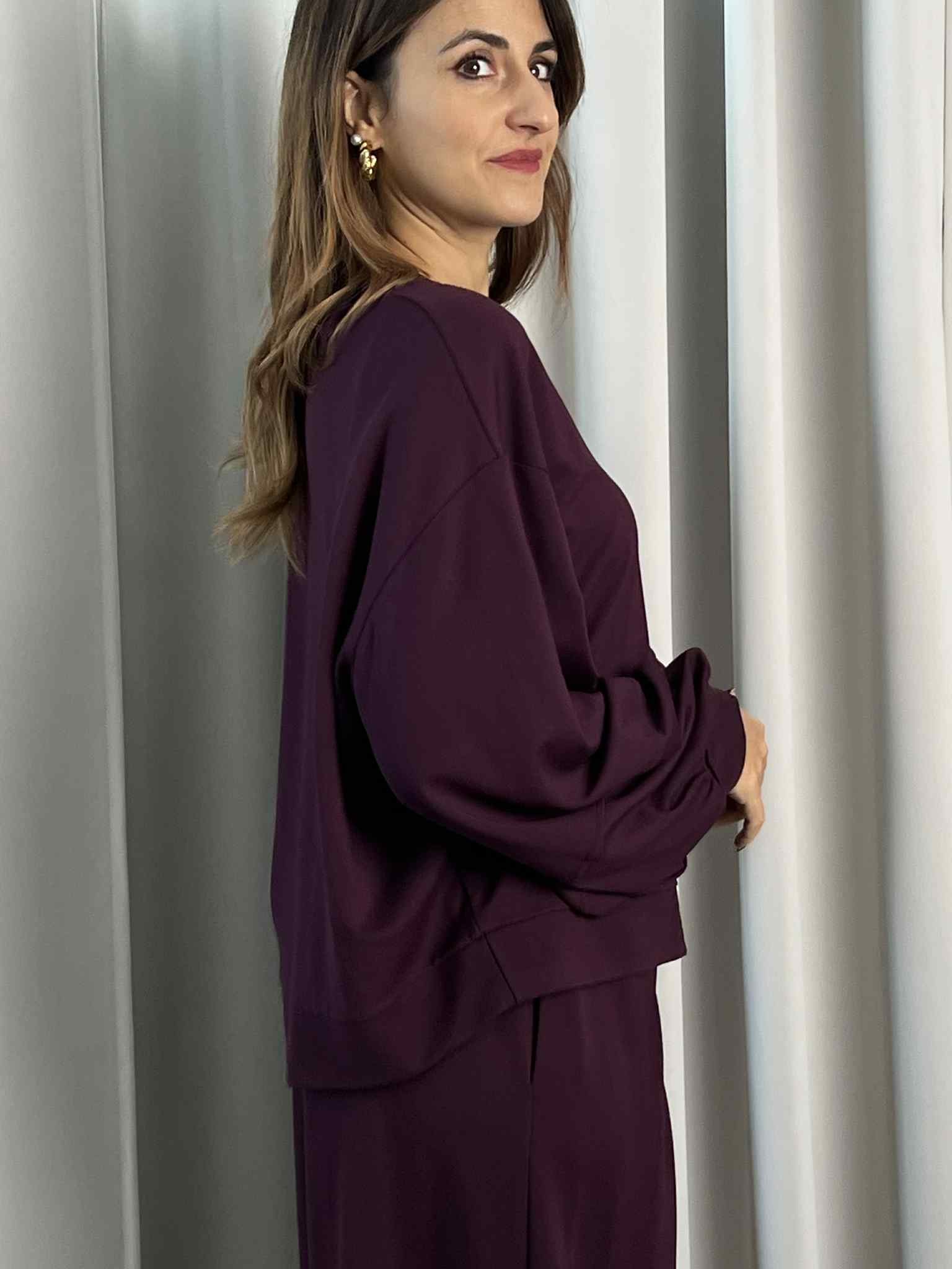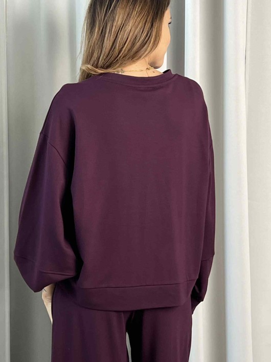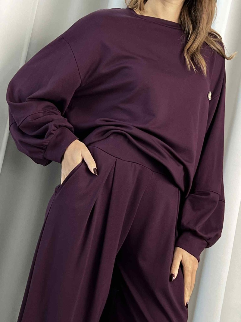 Tuta Saiph color Melanzana composto da maglia e pantalone.
