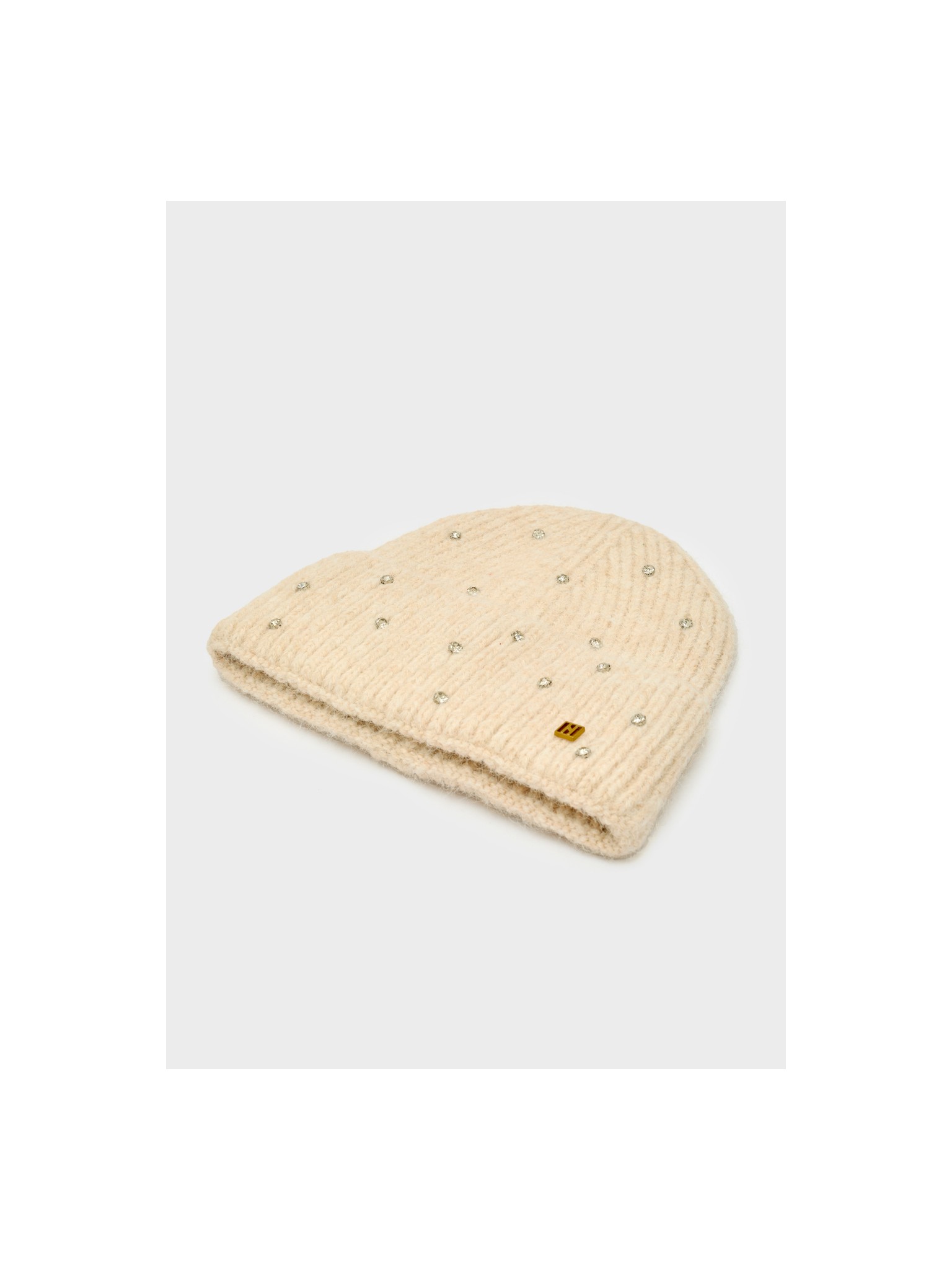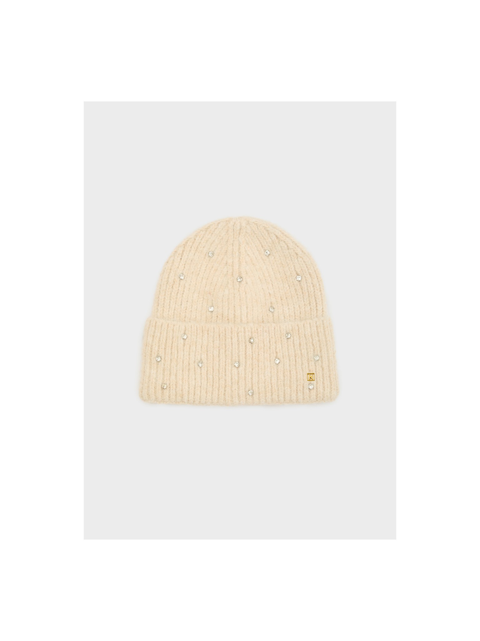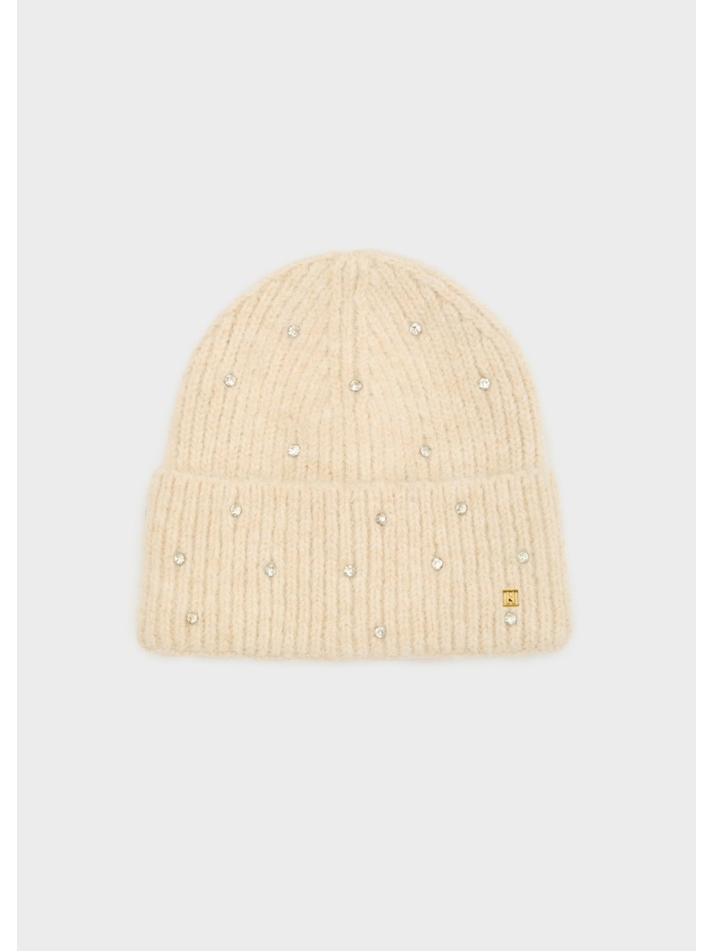 Cuffia Yves Beanie beige con pietre.