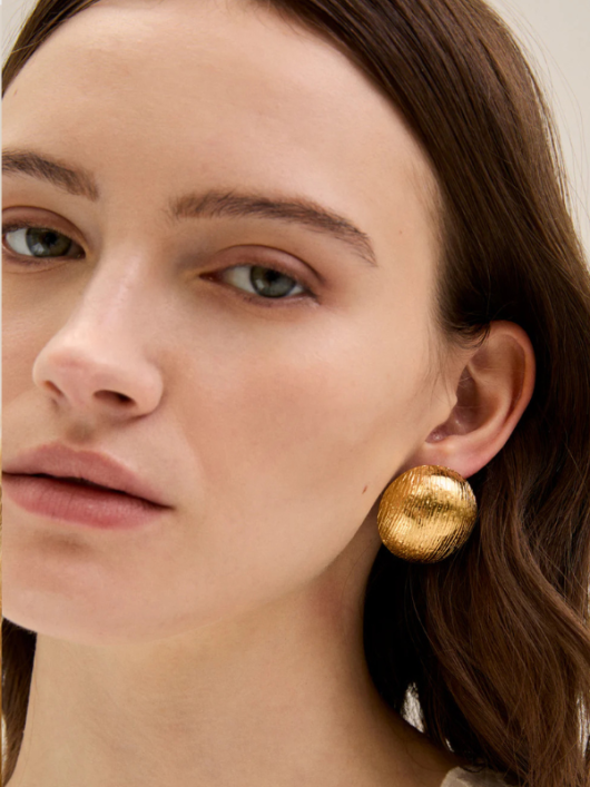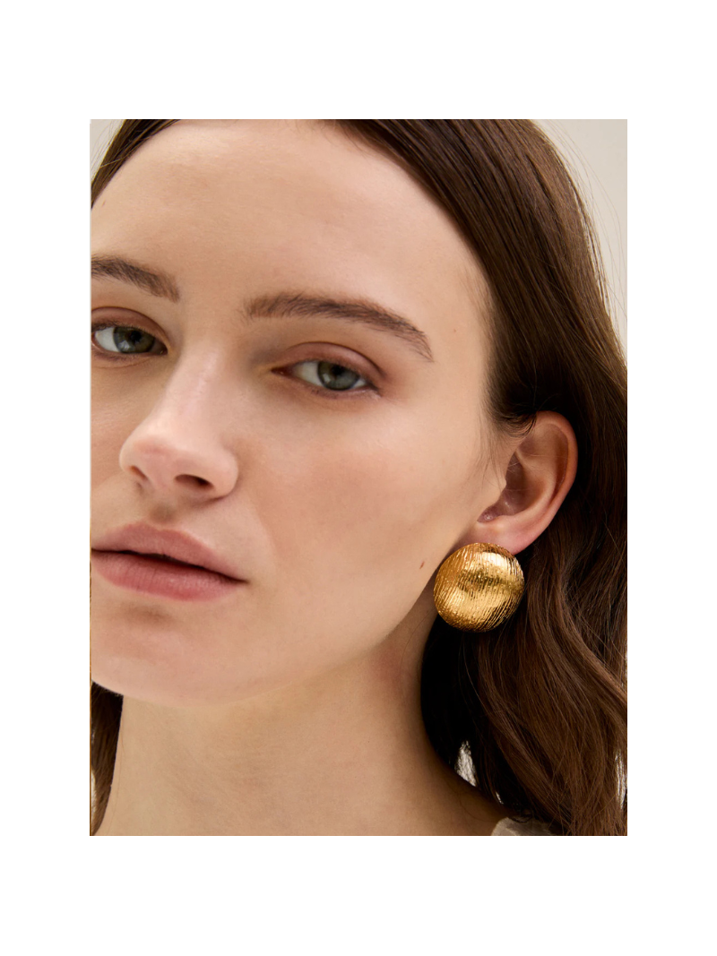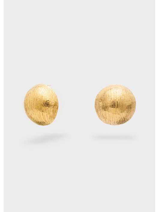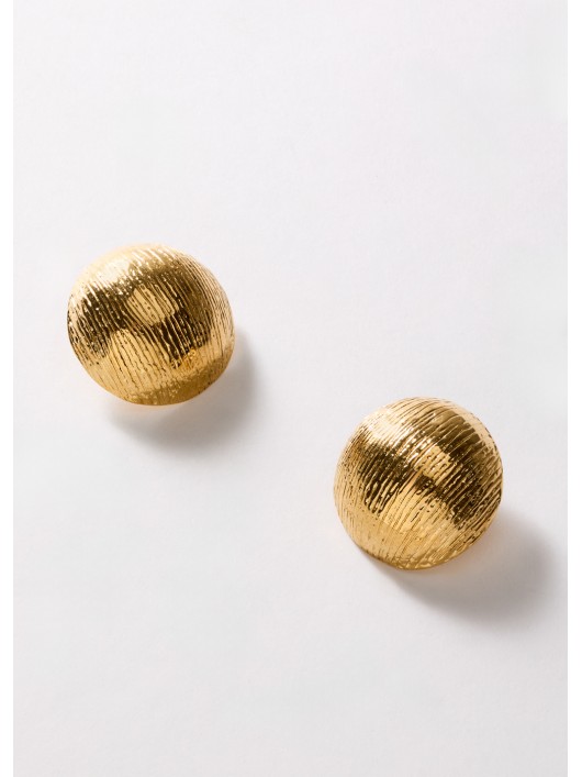 Orecchino tondi bombati rigati oro.