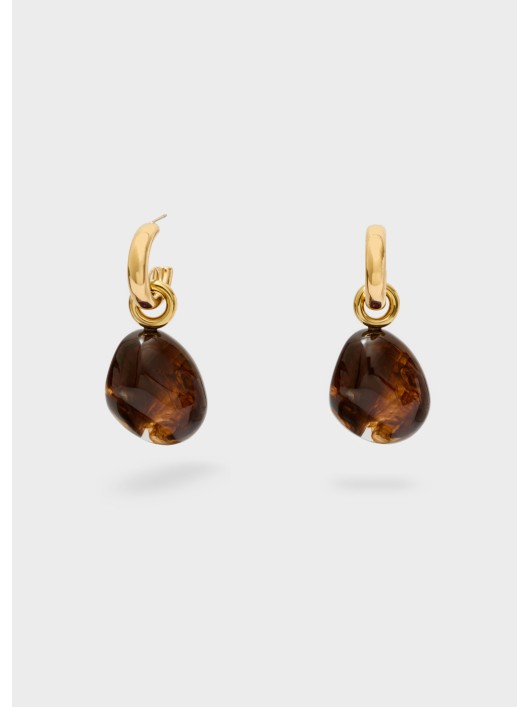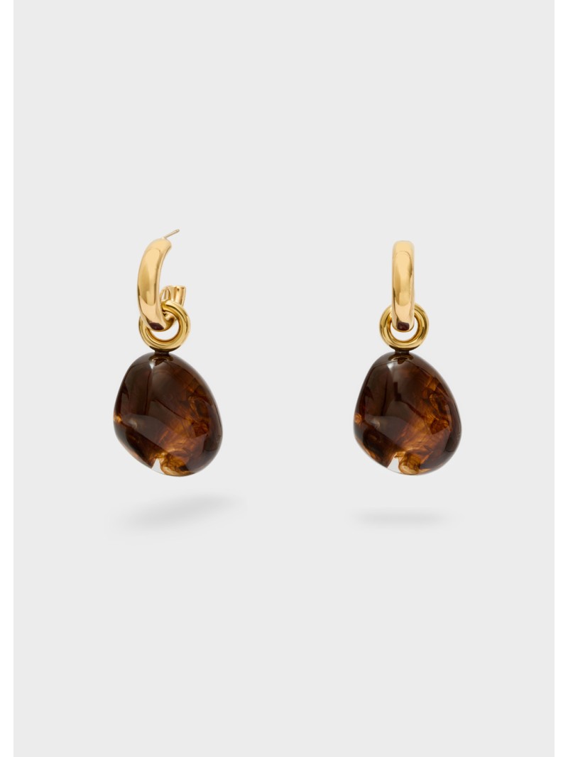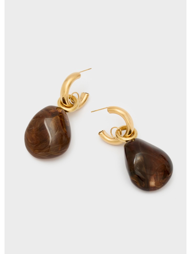 Orecchino ZOE acciaio inoss. resina marrone/oro.