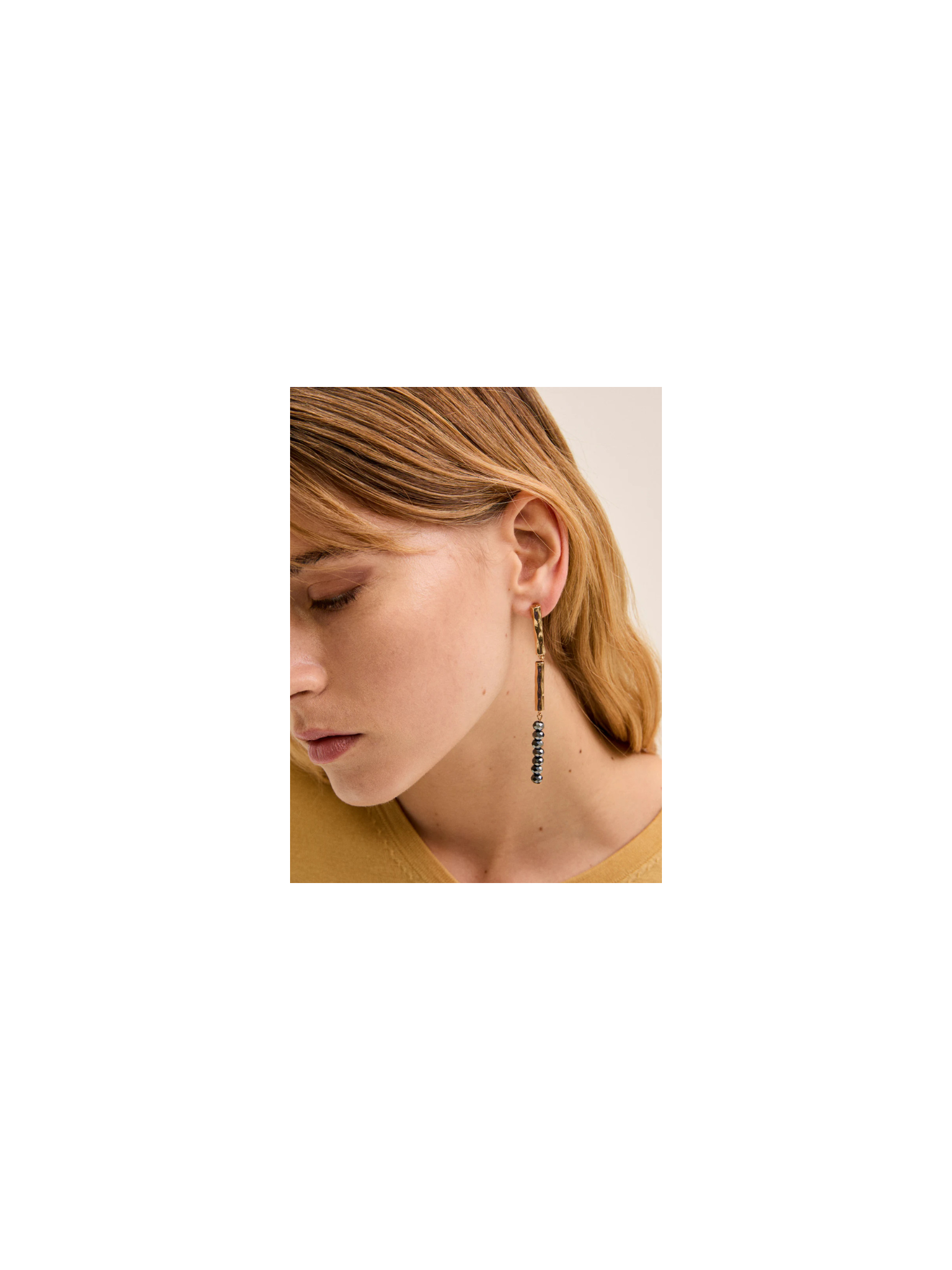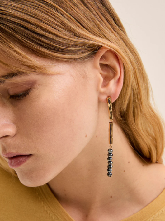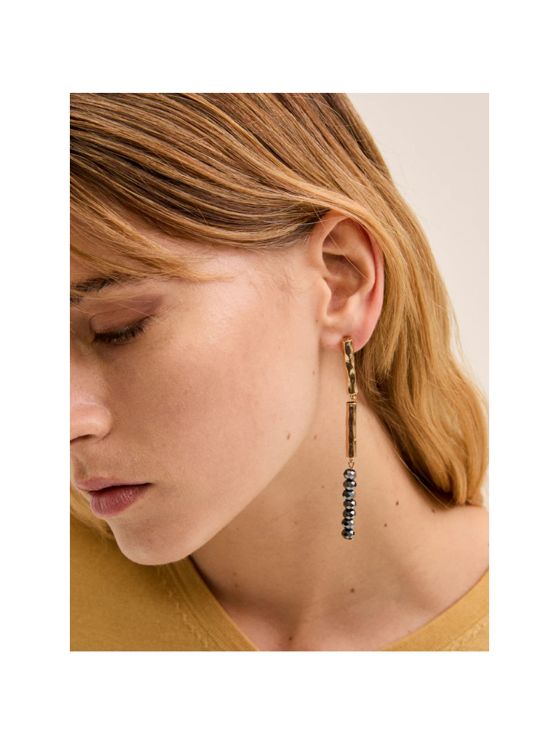 Orecchino ALMA lungho perline grigio scuro.
