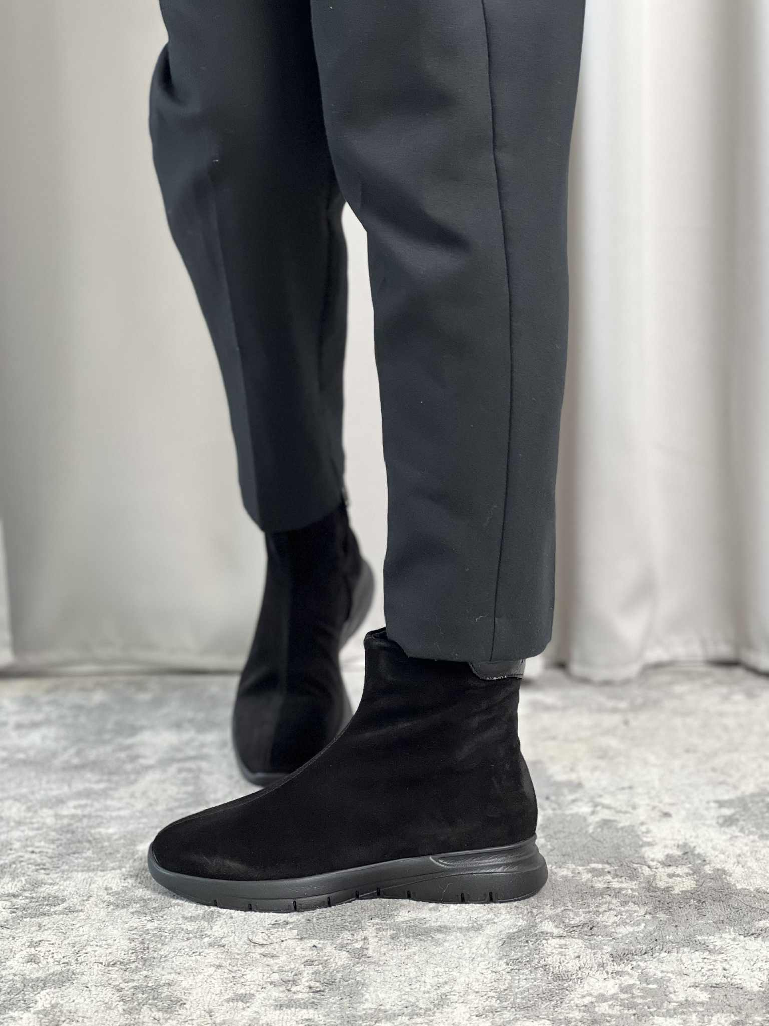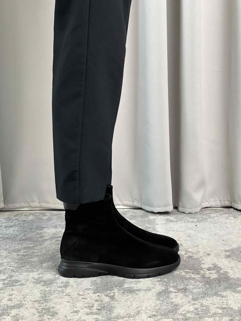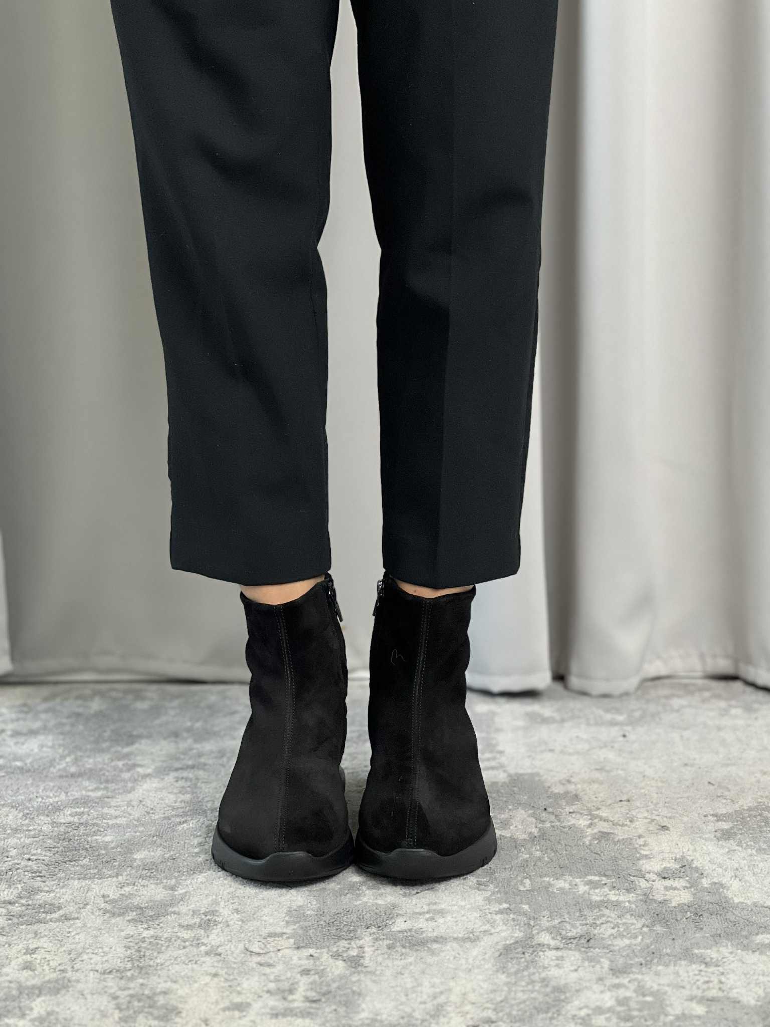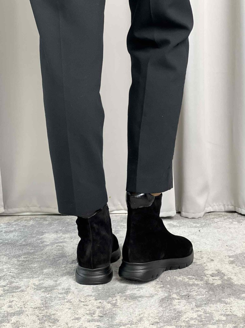 Tomaia in morbidissima pelle scamosciata che avvolge il piede come un guanto. Pratica Zip interna per migliorare la calzata